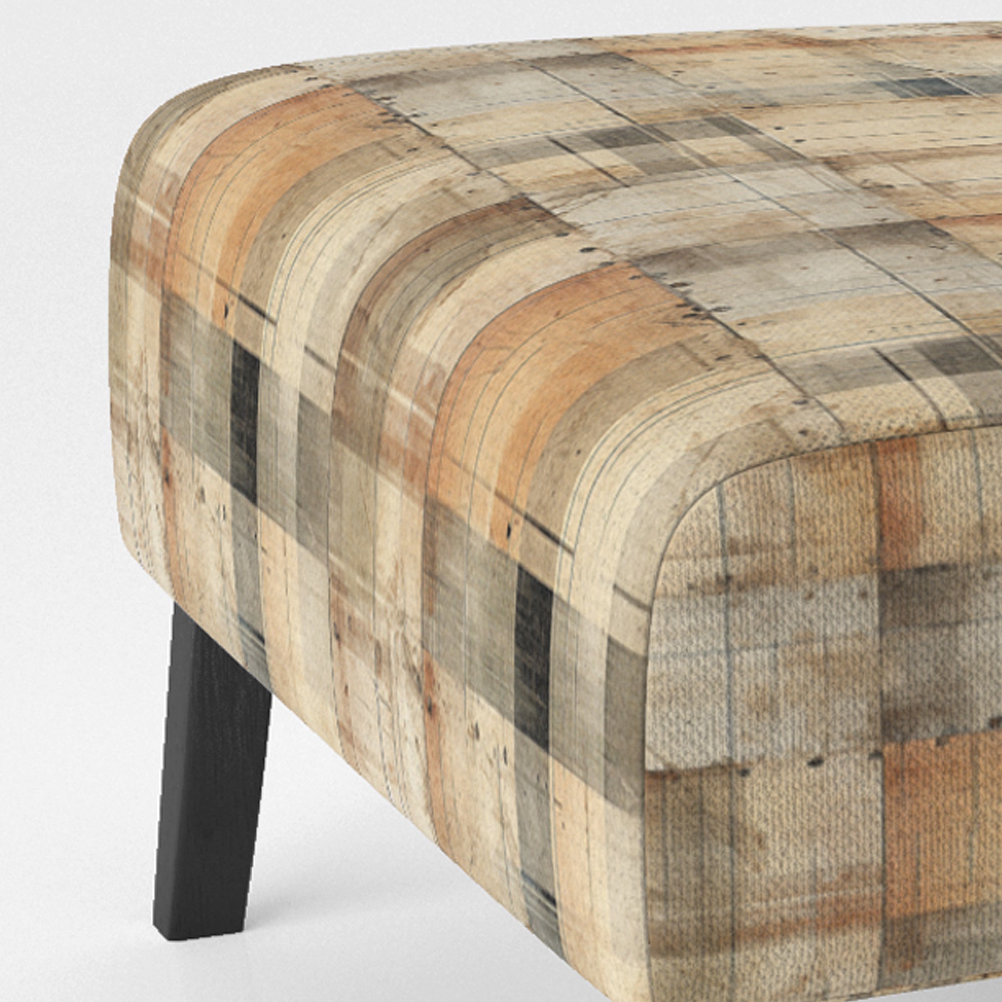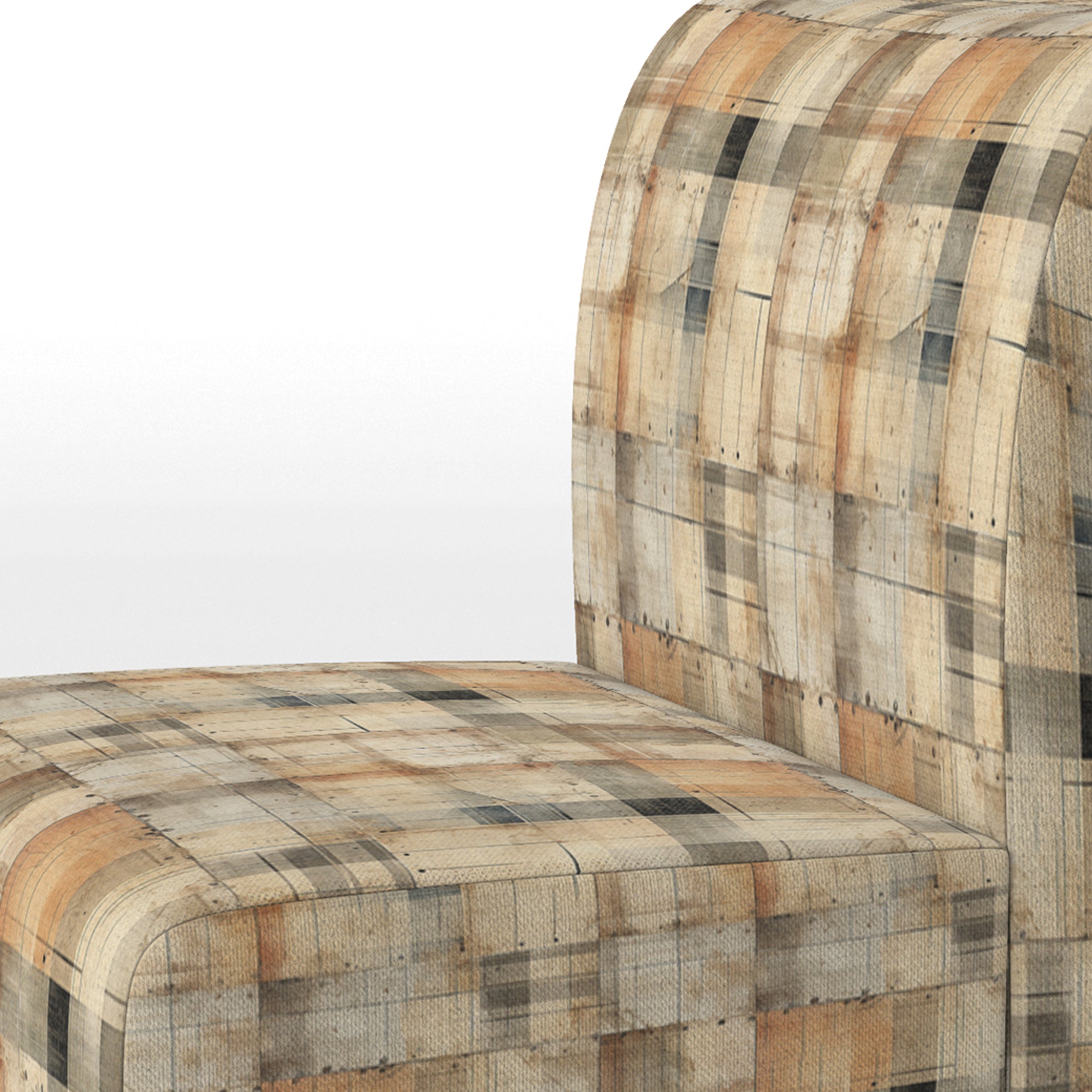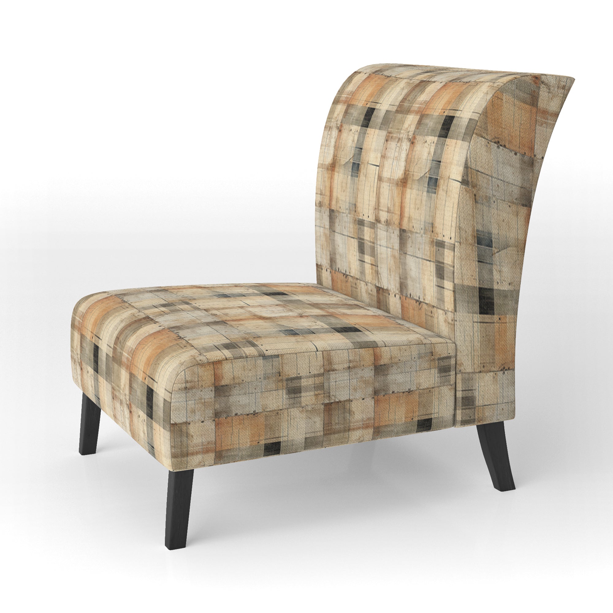 Beige Rustic Plaid Country House Plank - Upholstered Vintage Accent Chairs