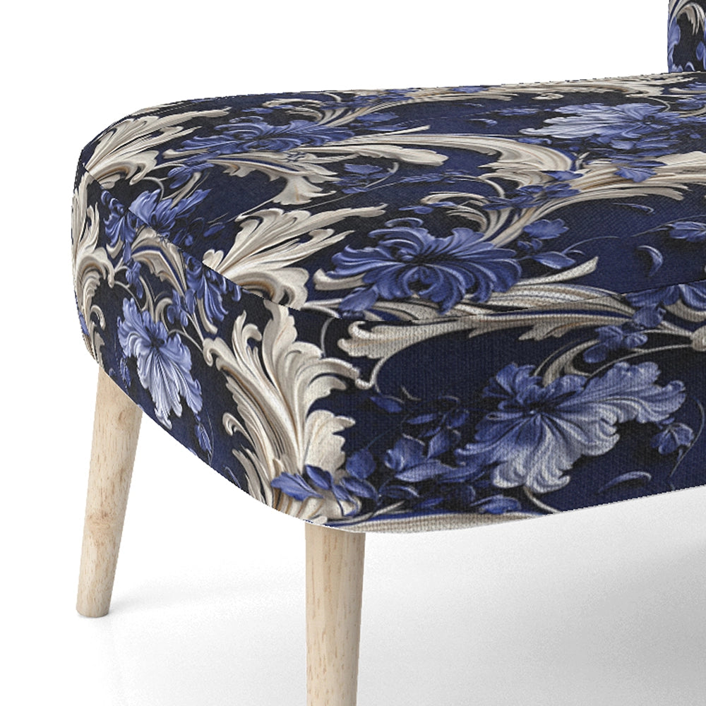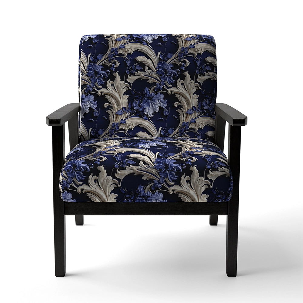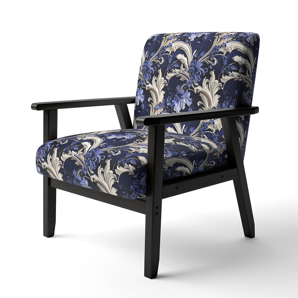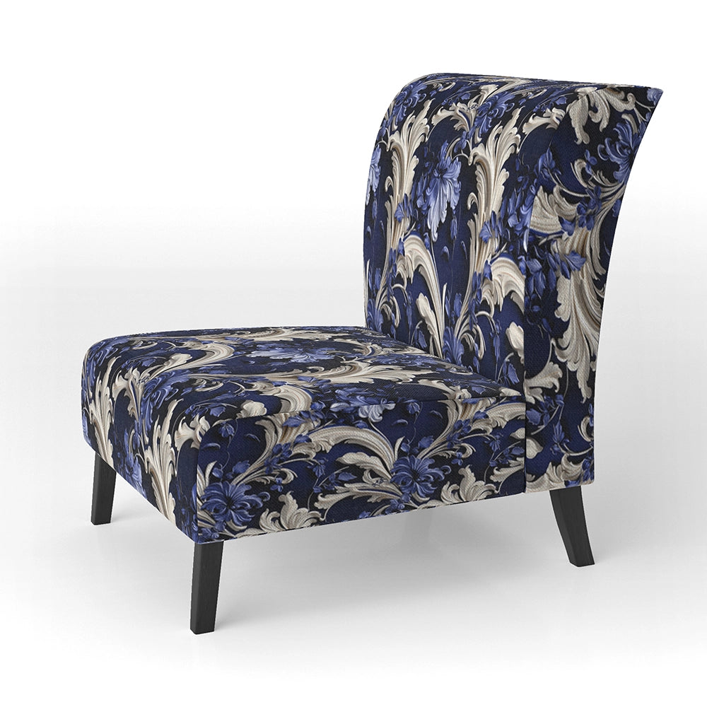 Cobalt Blue Baroque Scrolls Victorian Pattern- Upholstered Accent Chair