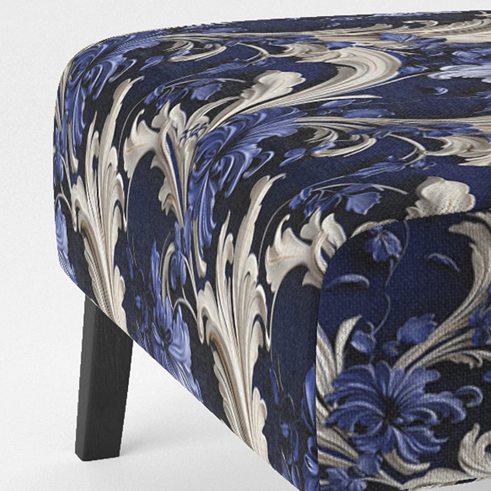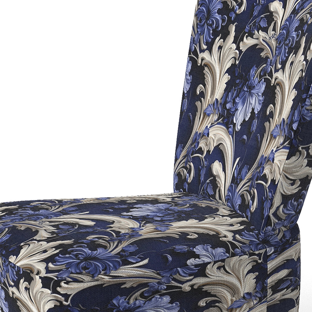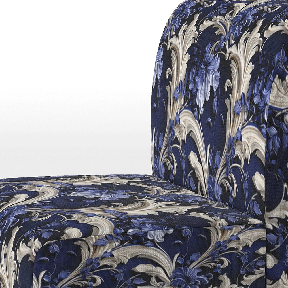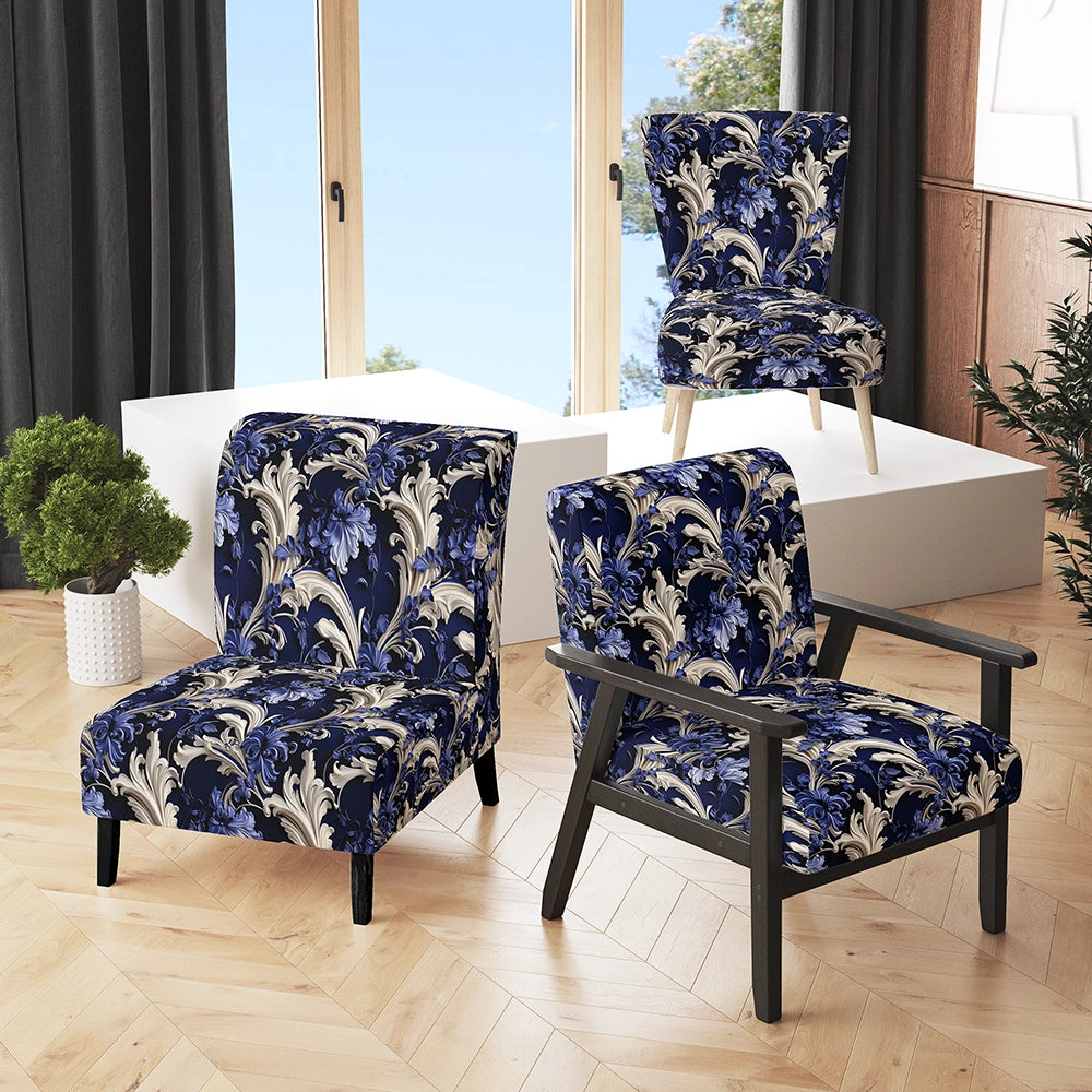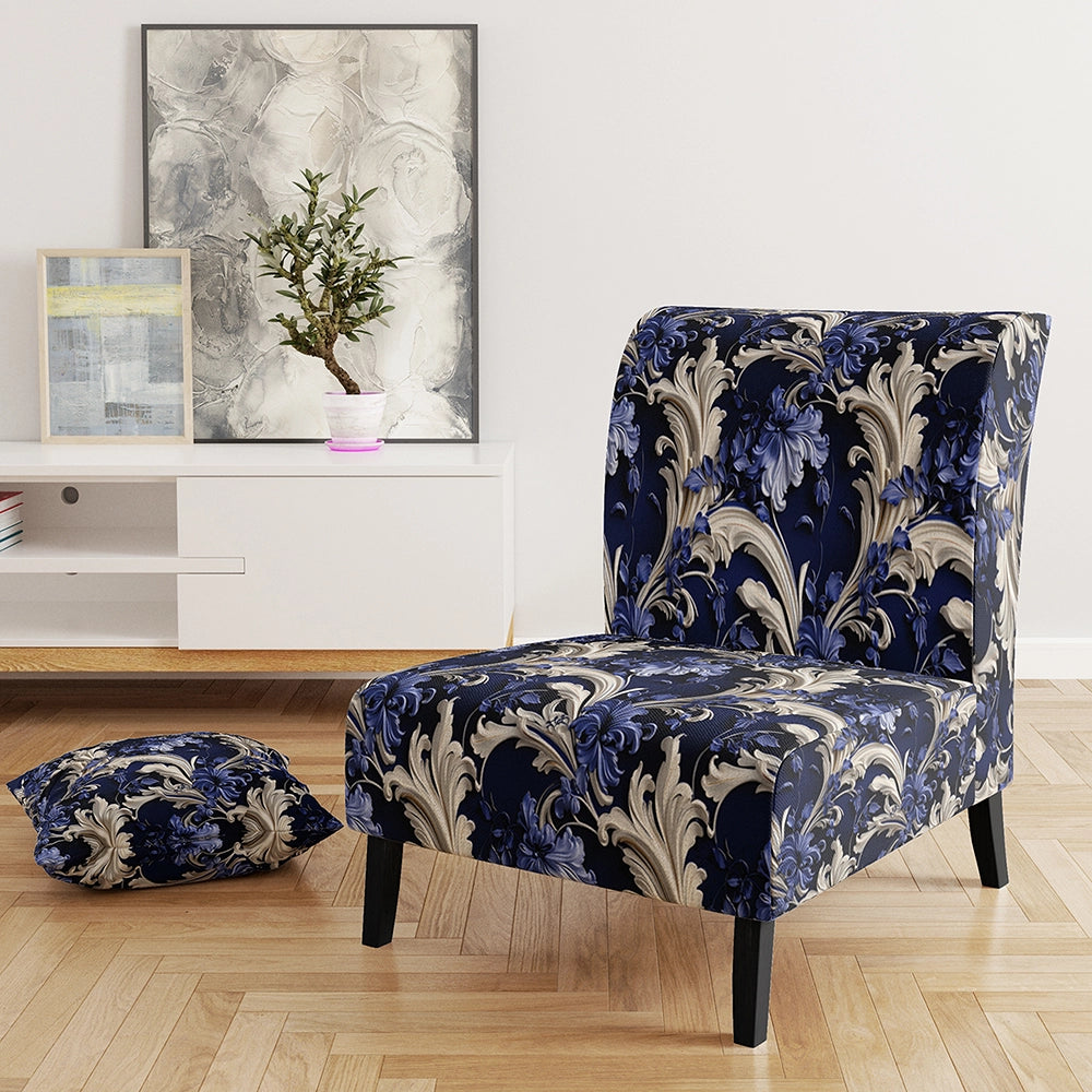 Cobalt Blue Baroque Scrolls Victorian Pattern- Upholstered Accent Chair