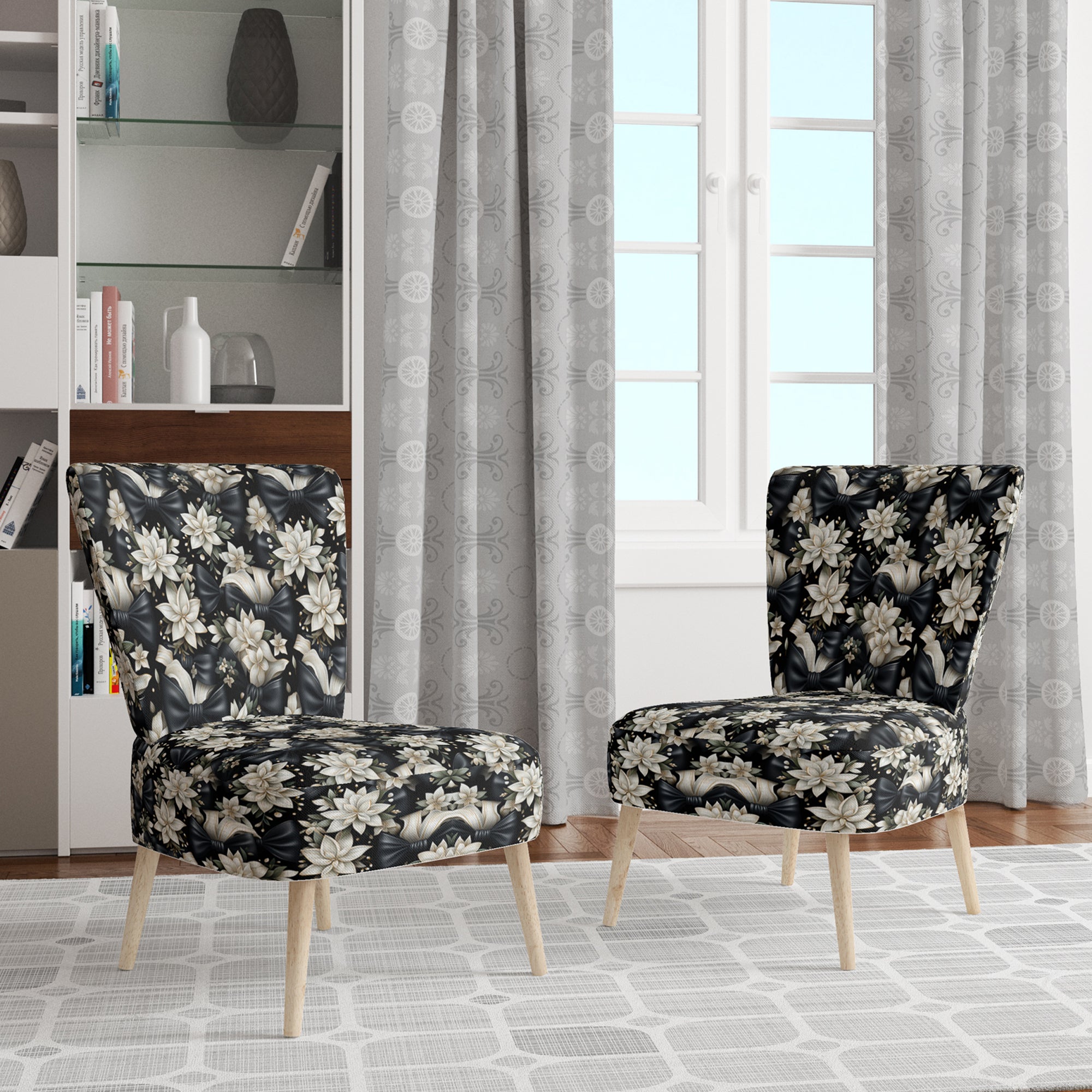 Black & White Crossing Paths II - Mid-Century Modern Accent Chair