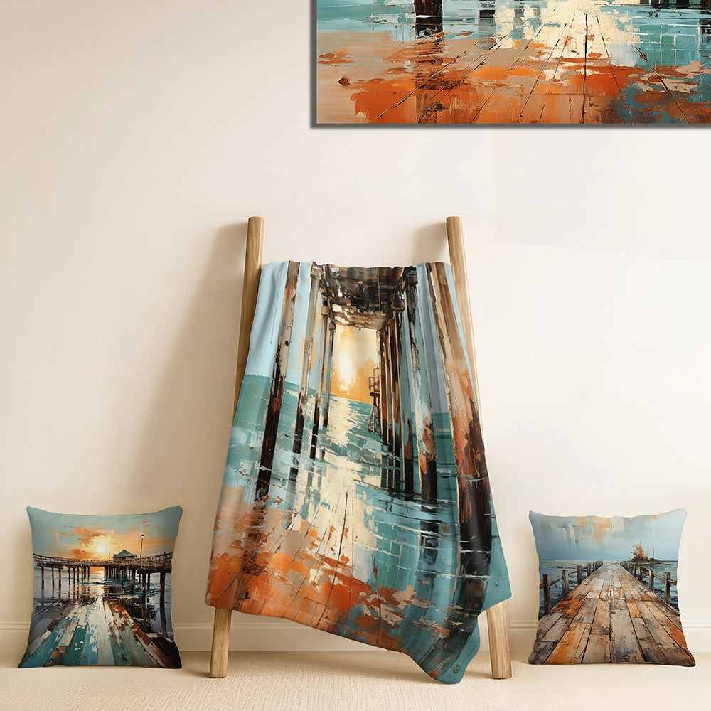 Coastal Pier Throw Blanket - Coastal Pier Perspective Pointillism I