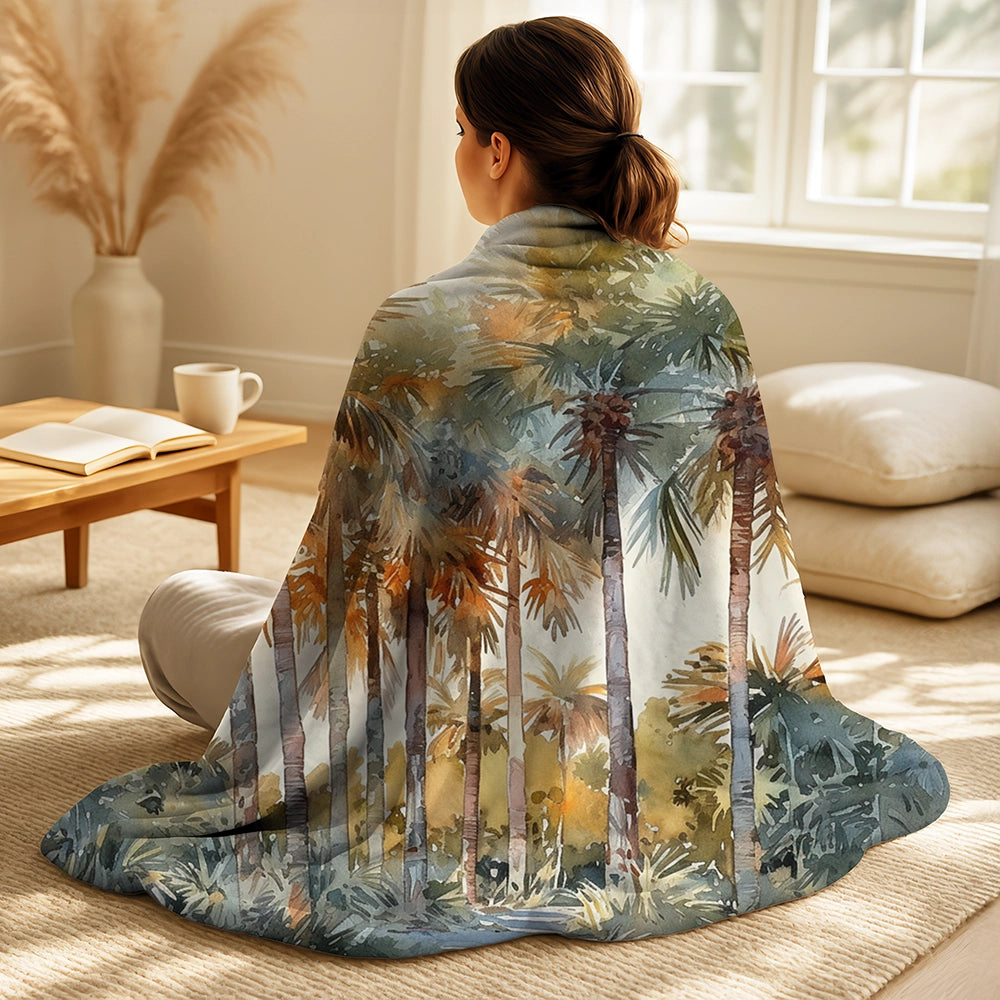 Palms & Palm Trees Throw Blanket - Green Palm Tree Paradise III