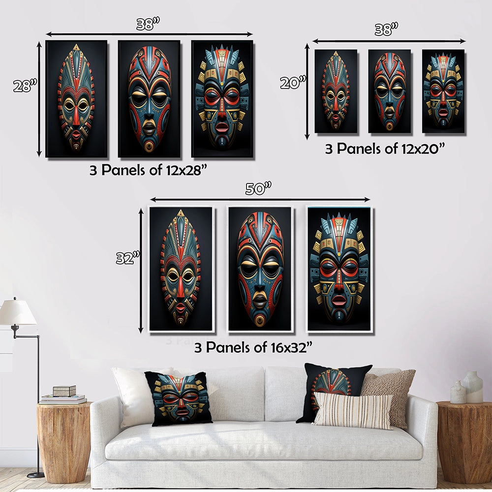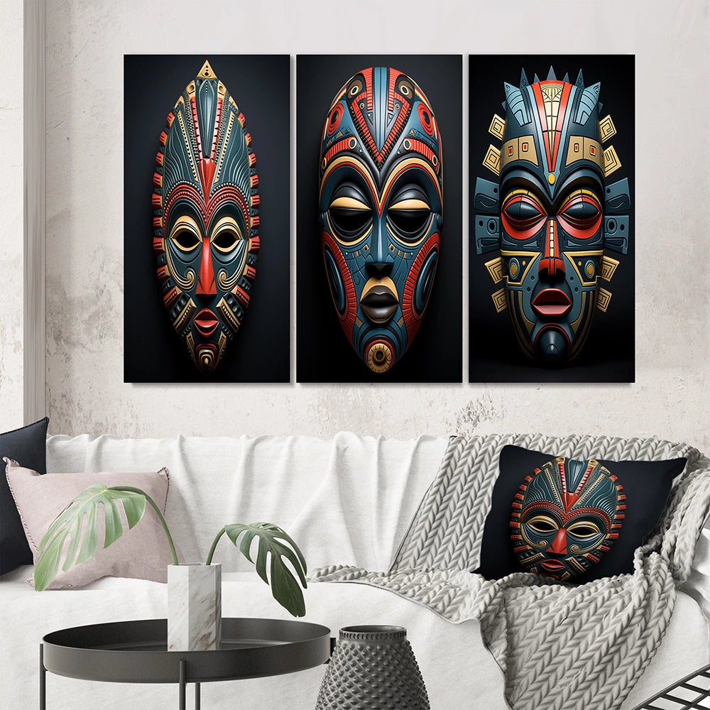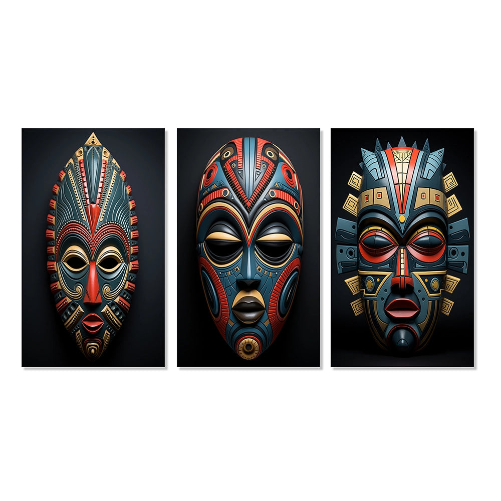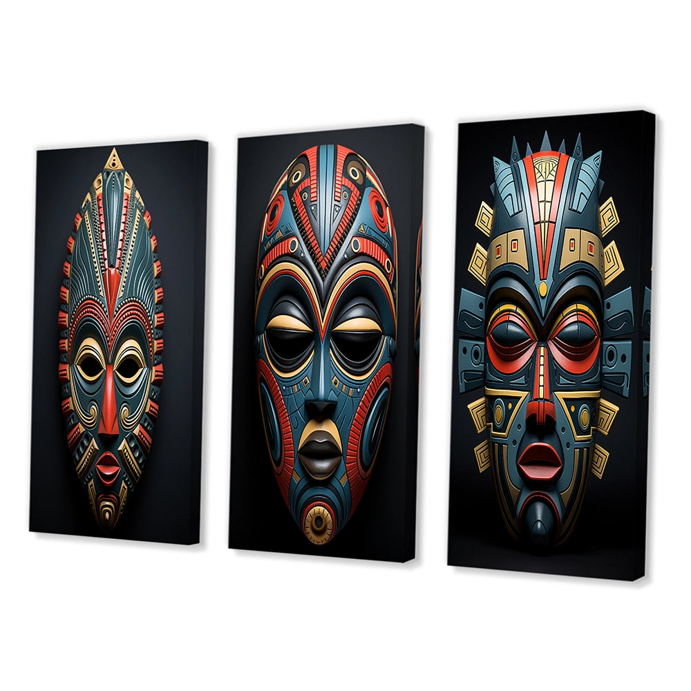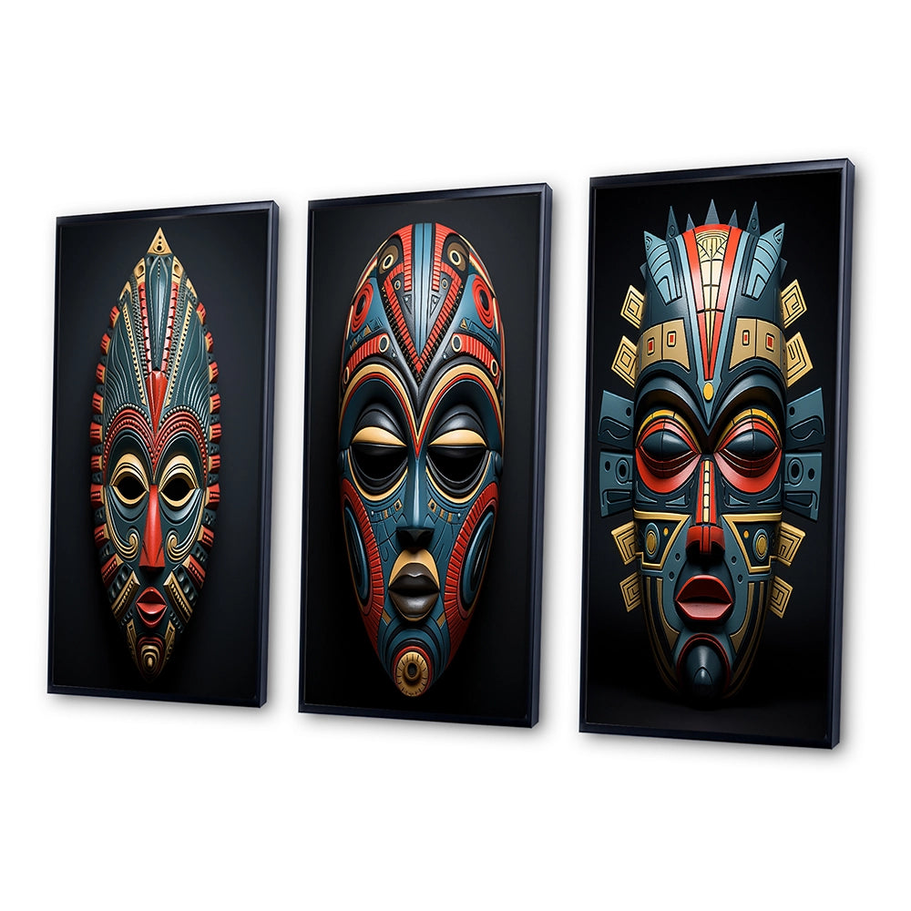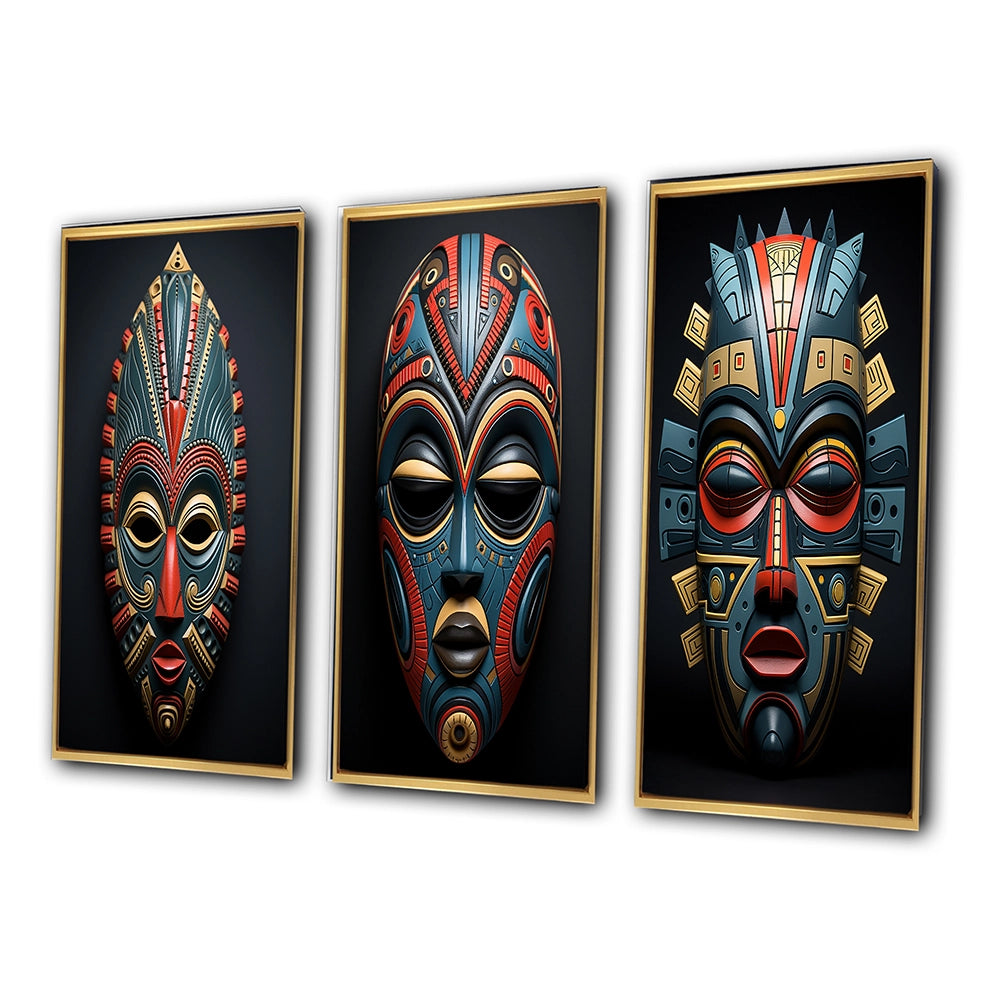 This beautiful African Tribal Pende Mask Collage Set of 3 Wall art is printed on premium quality cotton canvas using the finest fade-resistant ink. With options like Wrapped Canvas and Floater Framed Wall Decor, we offer a versatile range to cater to your unique aesthetic preferences. The Wrapped Canvas Art is stretched tautly over a sturdy wooden frame, giving your artwork a sleek, borderless appearance. For those who desire a touch of elegance and depth, our floater-framed canvas art is the ideal choice. The Canvas set is delicately mounted within a floating frame, creating a striking visual contrast between the artwork and the frame. Our collection offers an array of frame colors to complement your interior design, Ensuring that your wall art set seamlessly integrates with your home or office decor.