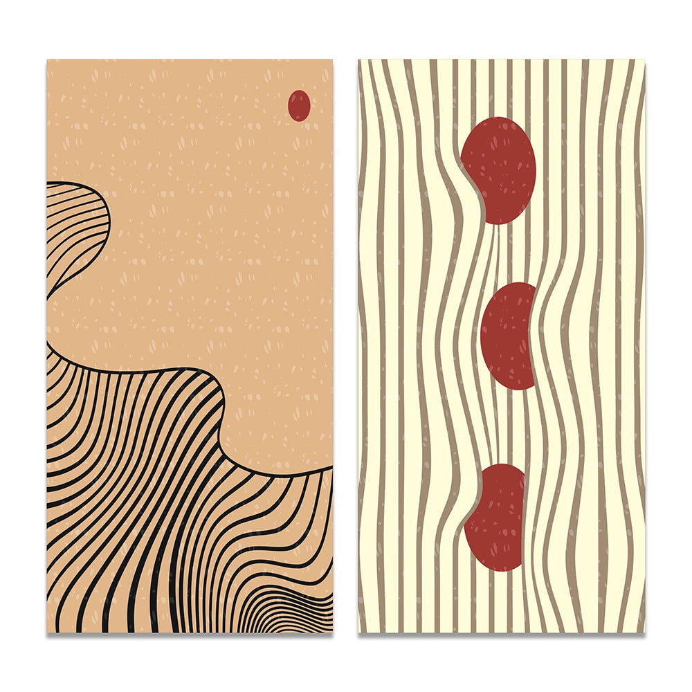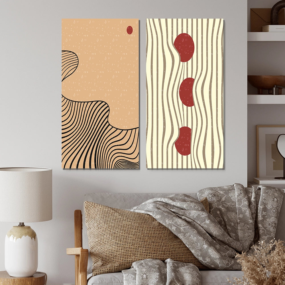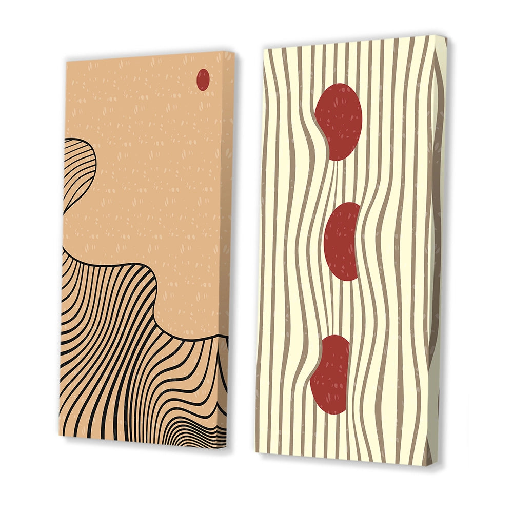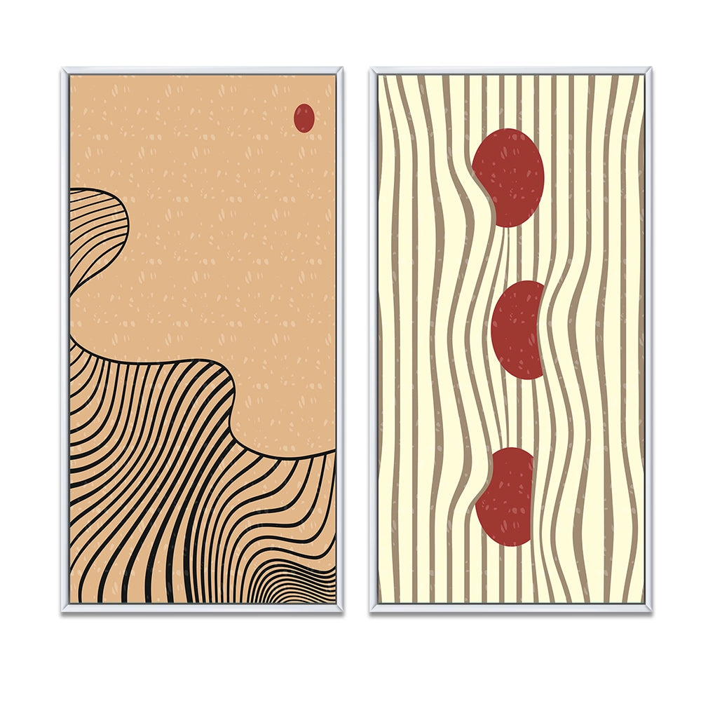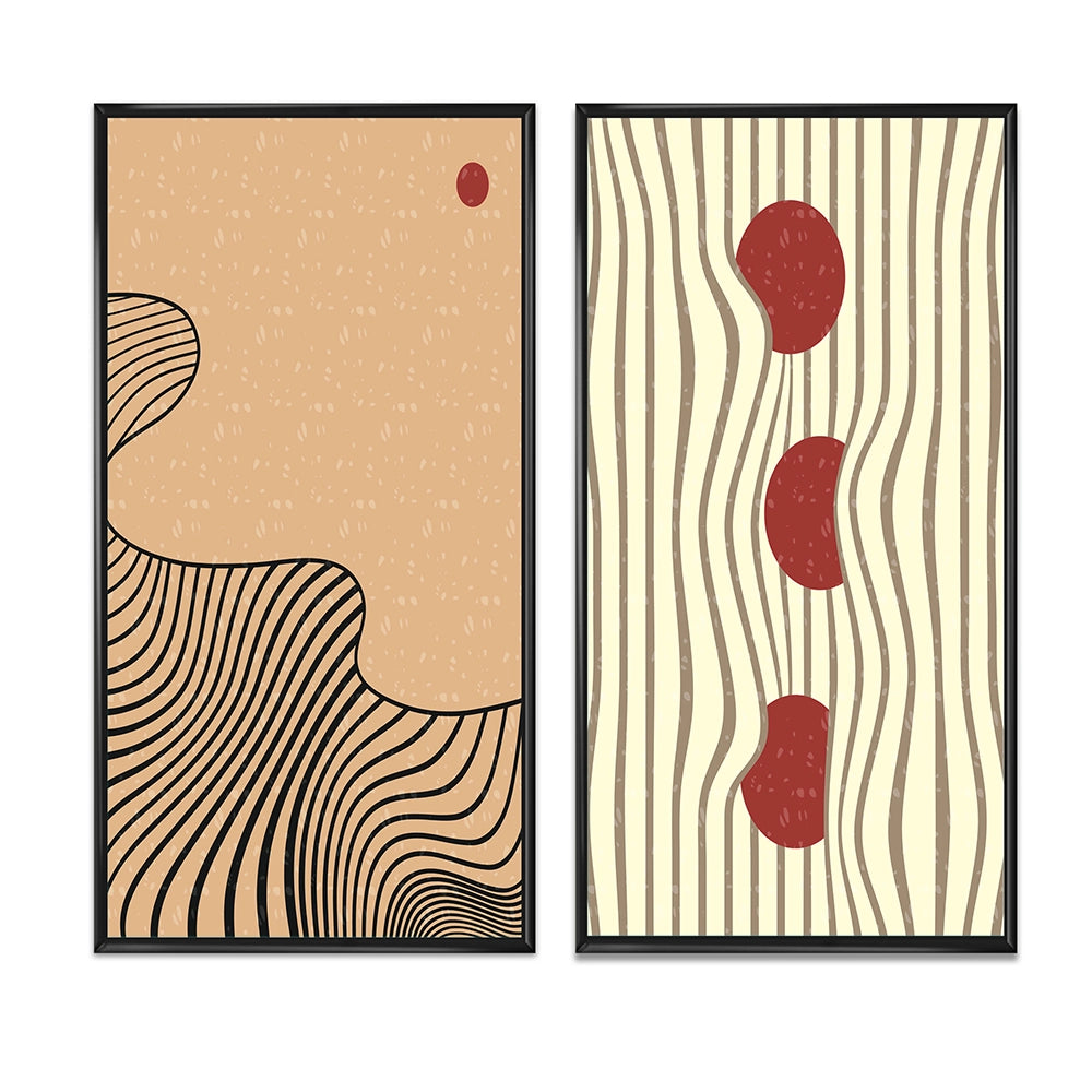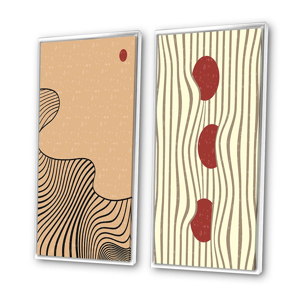 This beautiful Retro Japanese Minimal Geometric Typography II Collage Set of 2 Wall art is printed on premium quality cotton canvas using the finest fade-resistant ink. With options like Wrapped Canvas and Floater Framed Wall Decor, we offer a versatile range to cater to your unique aesthetic preferences. The Wrapped Canvas Art is stretched tautly over a sturdy wooden frame, giving your artwork a sleek, borderless appearance. For those who desire a touch of elegance and depth, our floater-framed canvas art is the ideal choice. The Canvas set is delicately mounted within a floating frame, creating a striking visual contrast between the artwork and the frame. Our collection offers an array of frame colors to complement your interior design, Ensuring that your wall art set seamlessly integrates with your home or office decor.