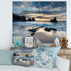 Teal Orange Ocean Coastal Essence Collage - Coastal Canvas Wall Art