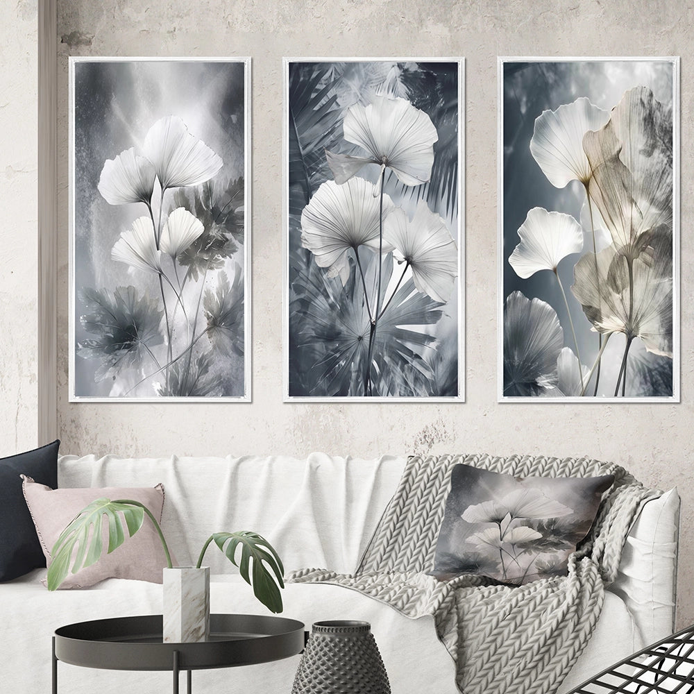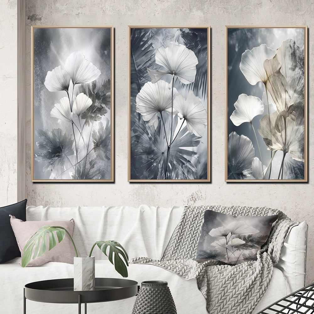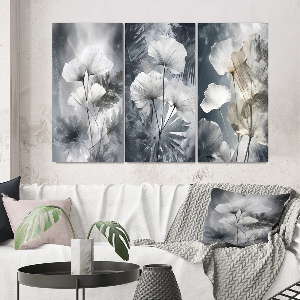 Floral Leaves Wall Art Canvas Set - Tropical_Palm_Art_For_Ginkgo Art - 3 Pieces