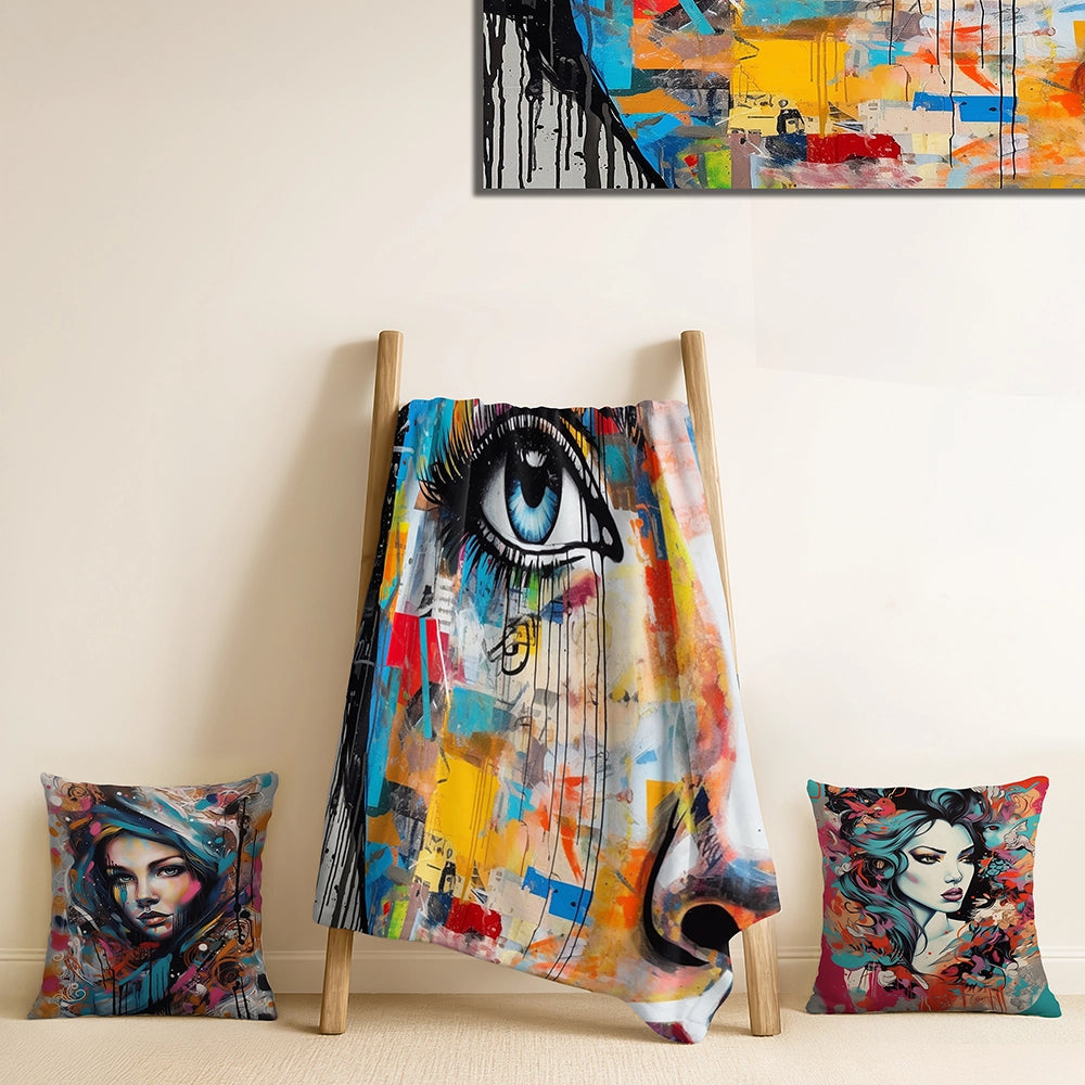 Fashion Throw Blanket Set - Female Pop Art Portrait I