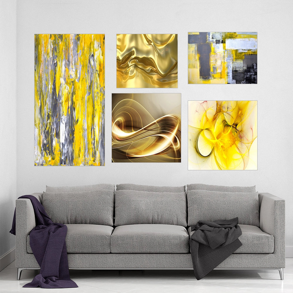 Modern Wall Art Canvas Set - Yellow and Gold Collection Abstract - 5 Pieces