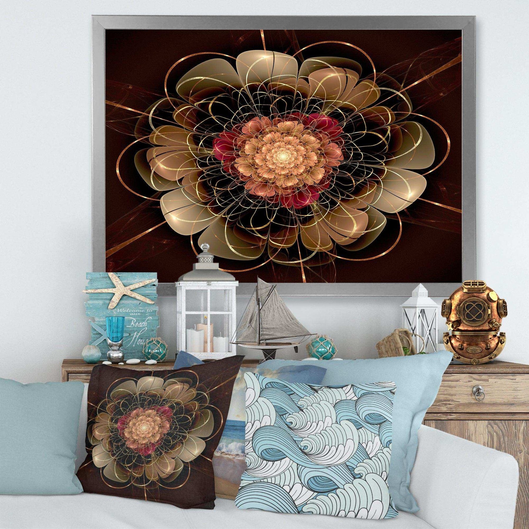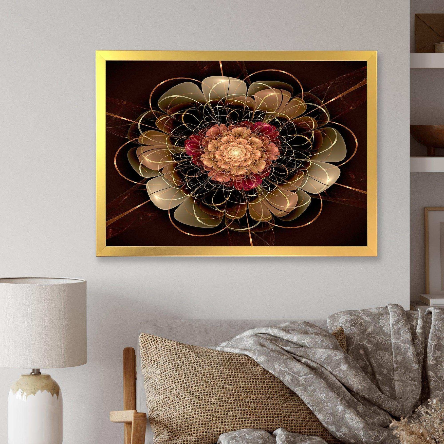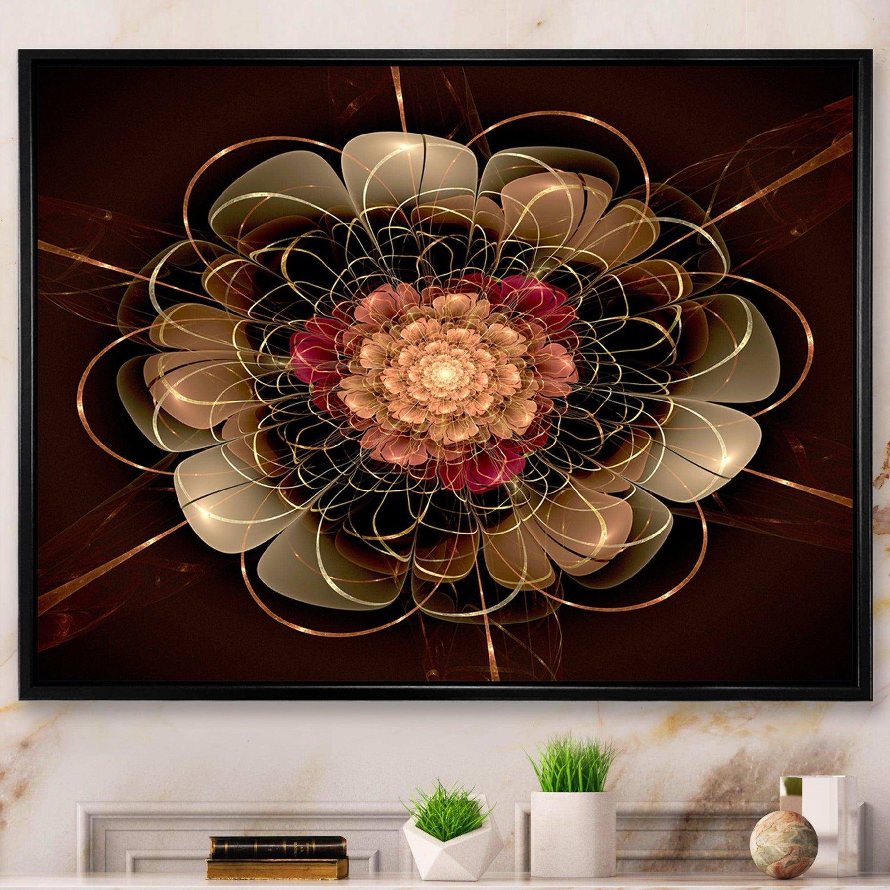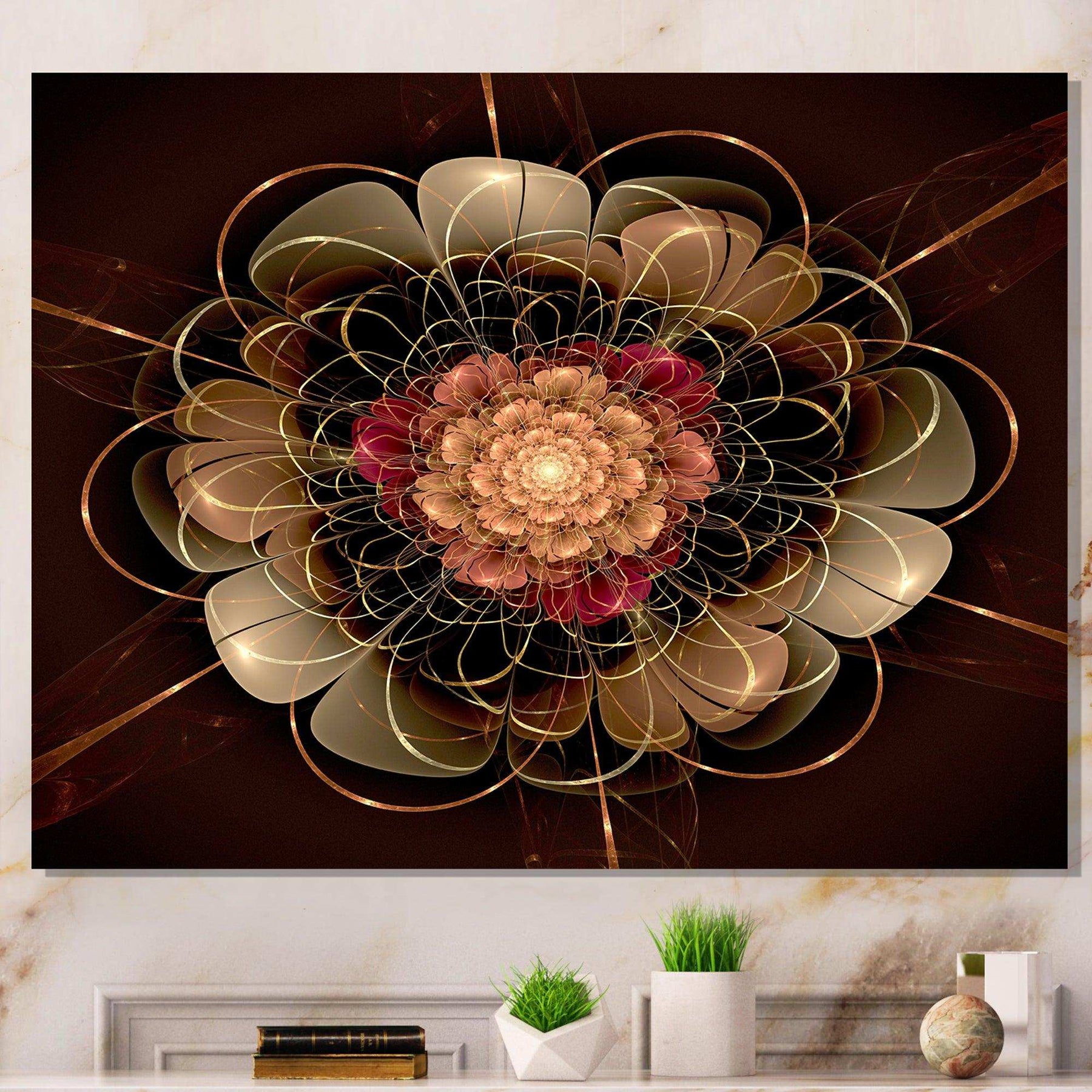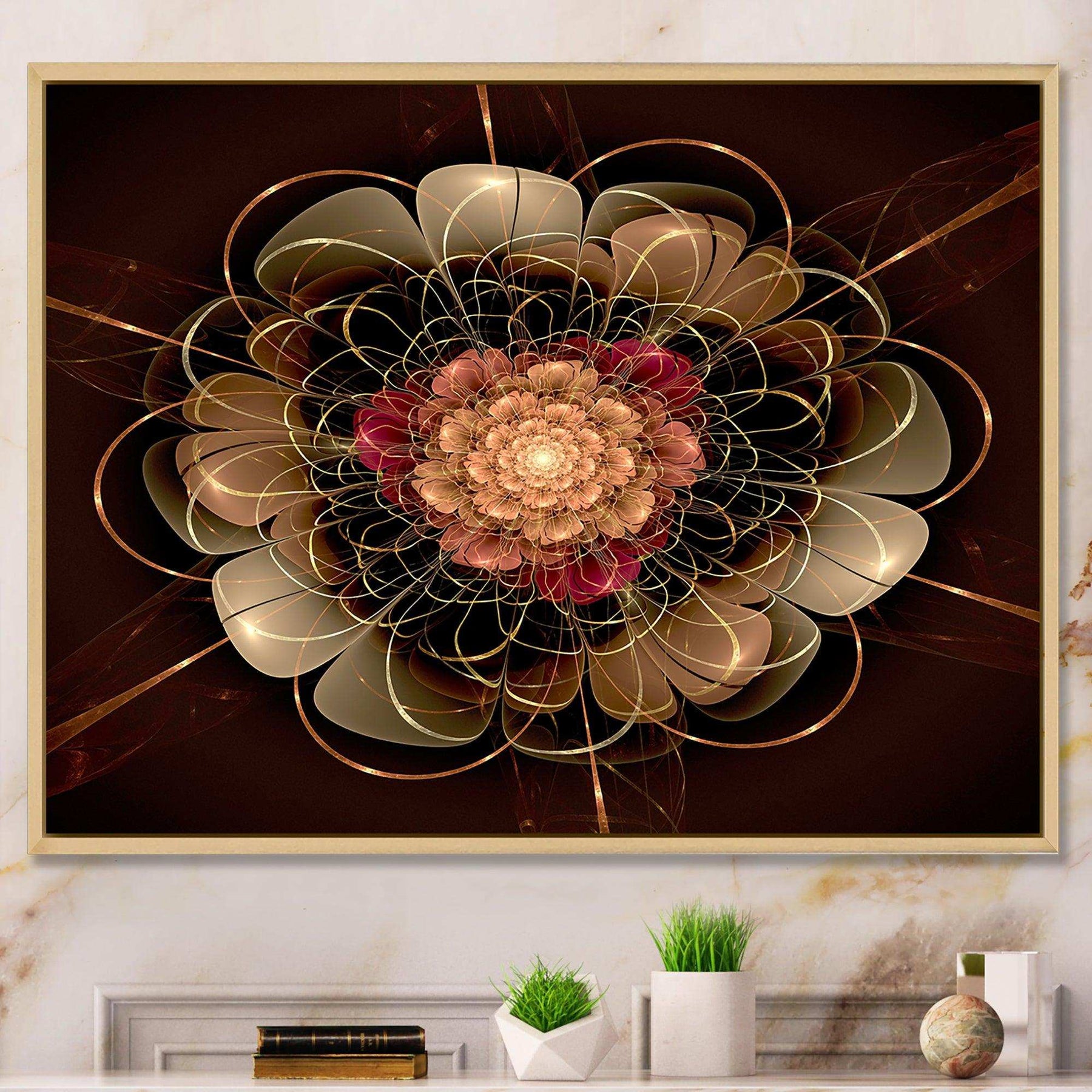 This beautiful Dark Gold Red Fractal Flower Pattern Canvas Art is printed using the highest quality fade-resistant ink on canvas. Every one of our fine art giclee canvas prints is printed on premium quality cotton canvas, using the finest quality inks which will not fade over time. Each giclee print is stretched tightly over a 1-inch wood sub frame for small size prints or a 1.5-inch wood subframe for large size prints ensuring the canvas is taught and does not buckle. This canvas art print is gallery-wrapped (the design continues on the sides), giving it a real art gallery feel. All of our canvas prints are carefully packaged with plastic protection, fragile labeling, and sturdy boxes to ensure safe delivery. Every canvas print arrives ready to hang on the wall, with the hanging kits included.