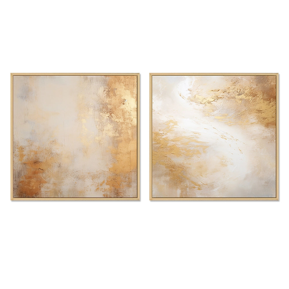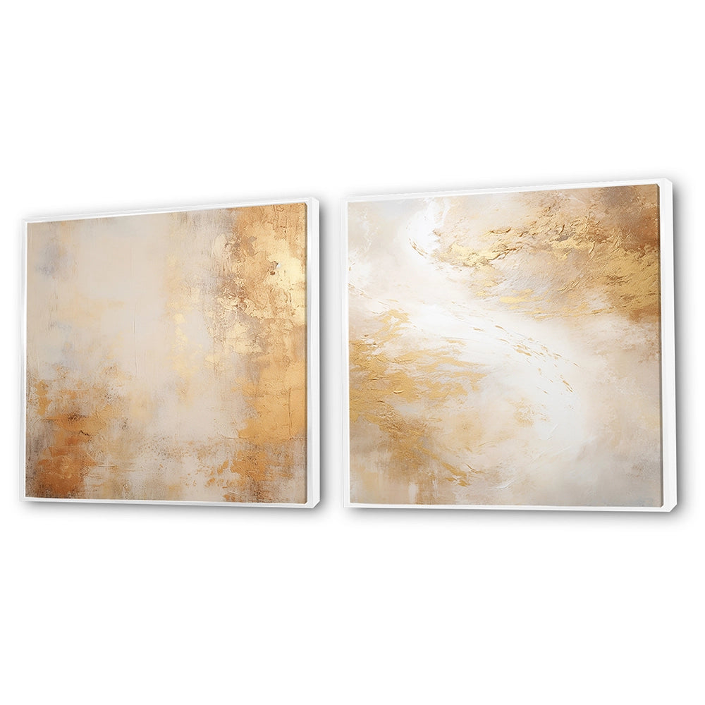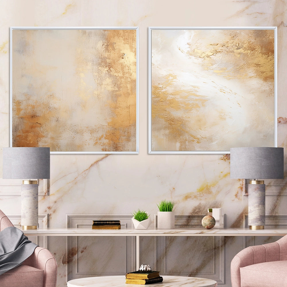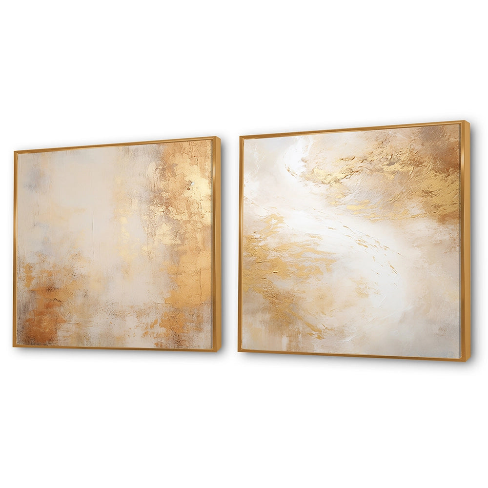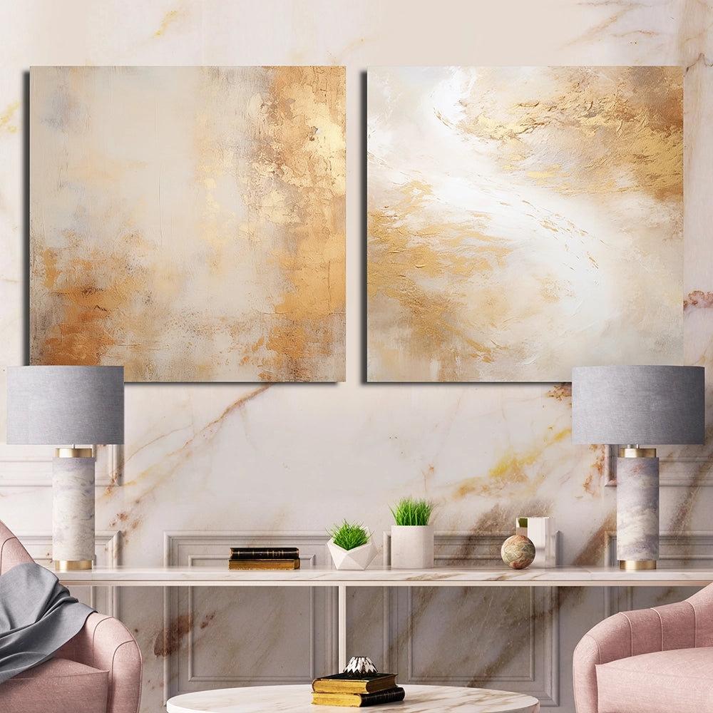 Abstract Collages Canvas Wall Art - Beige And Gold Minimalism Storms III - 2 Pieces