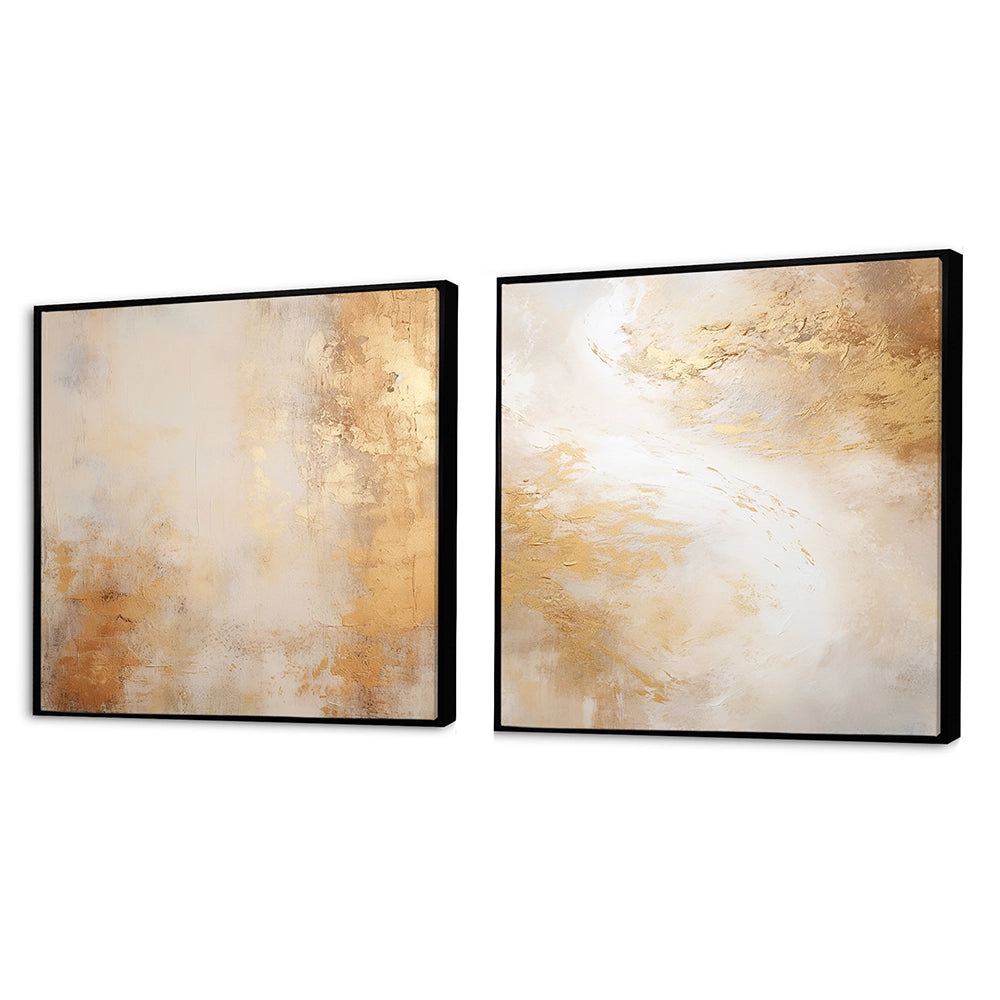 This beautiful Beige And Gold Minimalism Storms III Collage Set of 2 Wall art is printed on premium quality cotton canvas using the finest fade-resistant ink. With options like Wrapped Canvas and Floater Framed Wall Decor, we offer a versatile range to cater to your unique aesthetic preferences. The Wrapped Canvas Art is stretched tautly over a sturdy wooden frame, giving your artwork a sleek, borderless appearance. For those who desire a touch of elegance and depth, our floater-framed canvas art is the ideal choice. The Canvas set is delicately mounted within a floating frame, creating a striking visual contrast between the artwork and the frame. Our collection offers an array of frame colors to complement your interior design, Ensuring that your wall art set seamlessly integrates with your home or office decor.