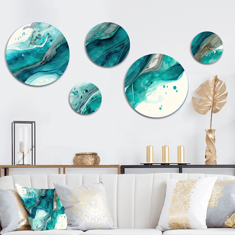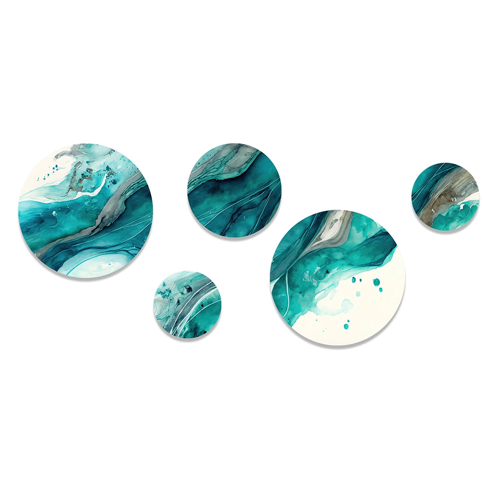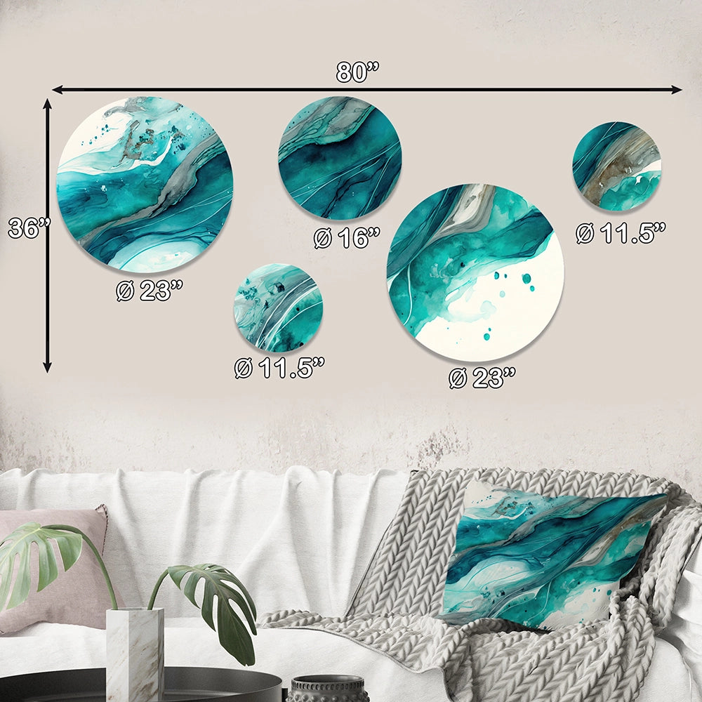 Modern Metal Wall Art - 5 Turquoise Waves In Paradise V - 5 Pieces