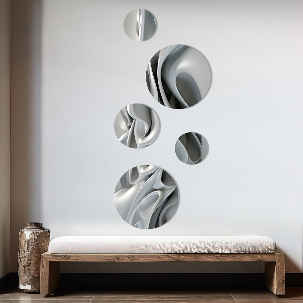 Modern Metal Wall Art Set - Grey Infinite Ripples - 5 Pieces