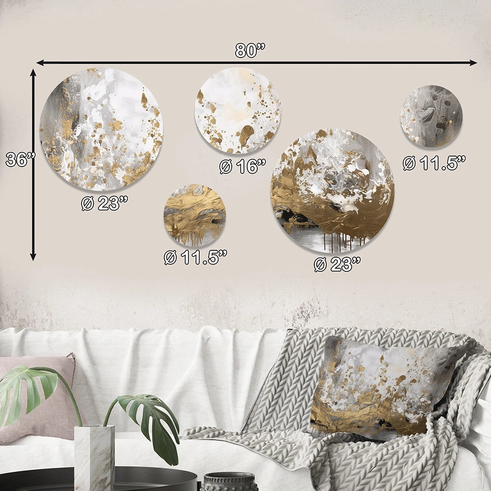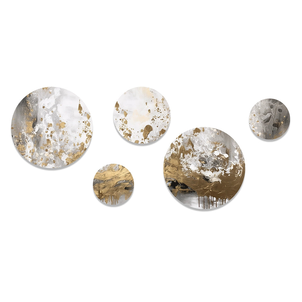 Modern Metal Wall Art Set of 5 - Modern White and Gold Abstract
