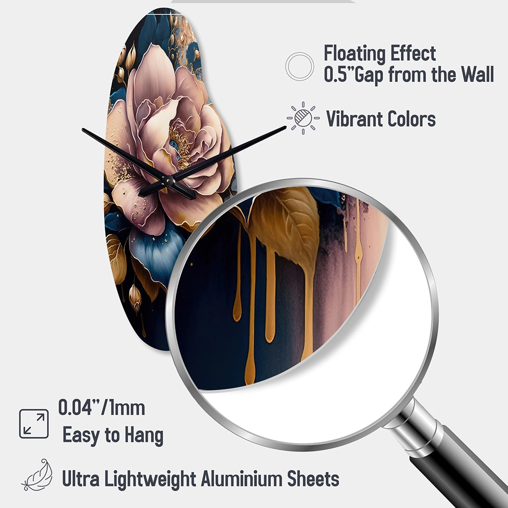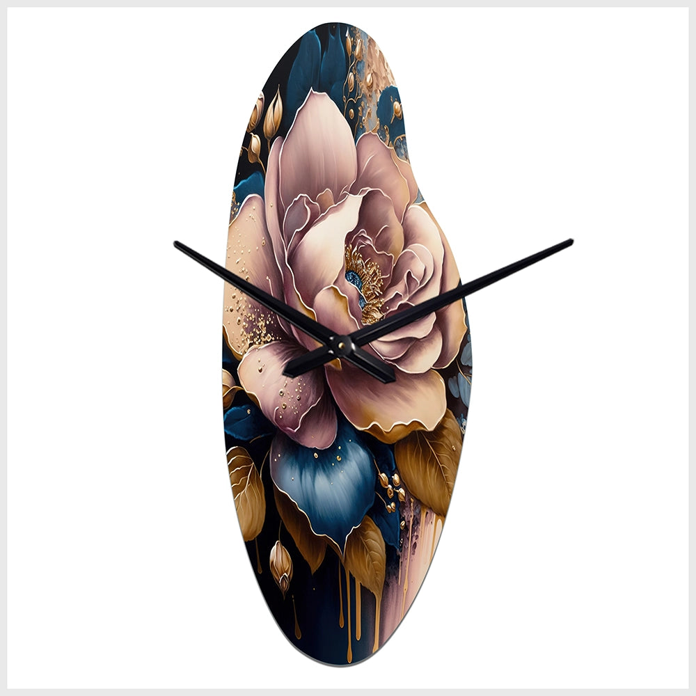 Decadent Pink And Blue Roses I - Asymmetric Metal Wall Clock
