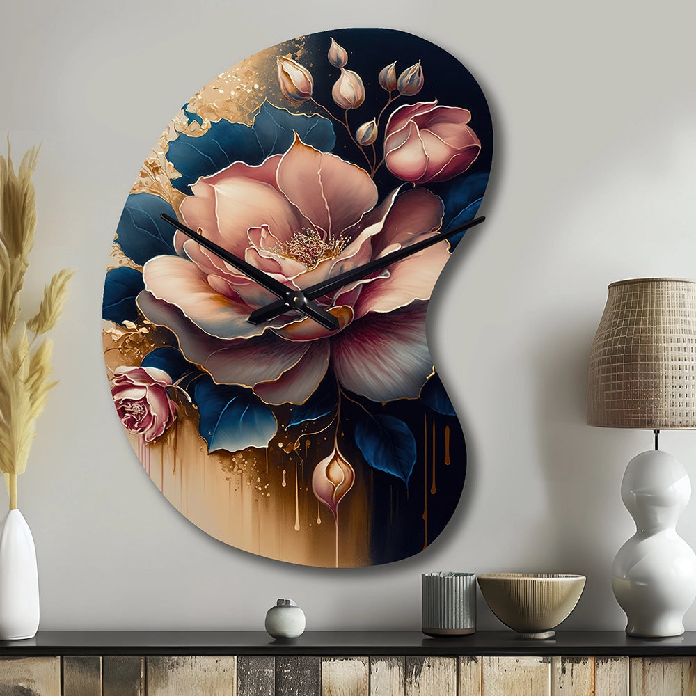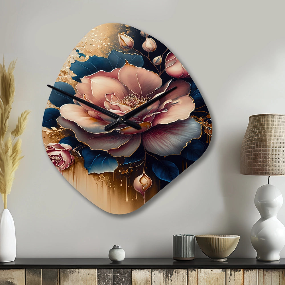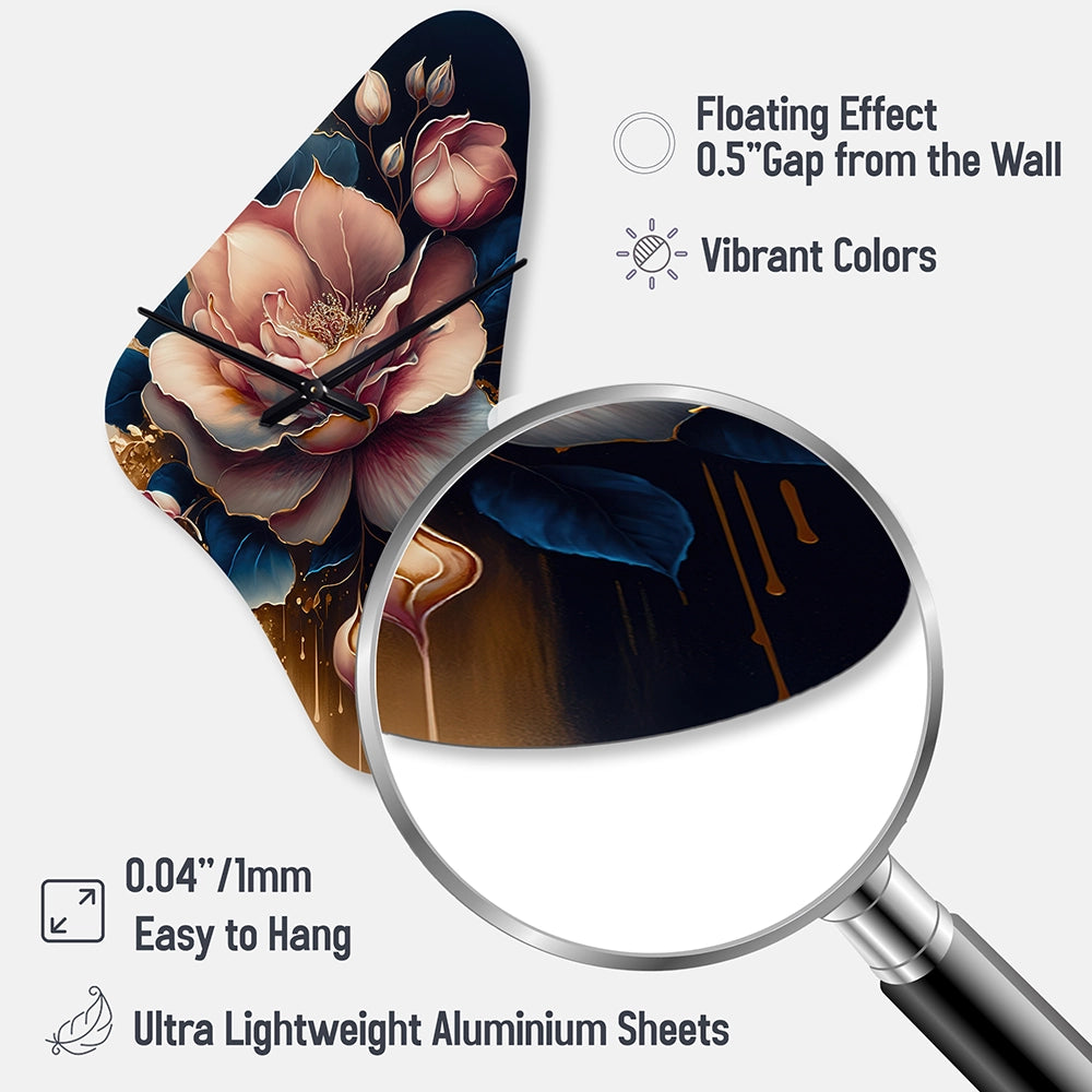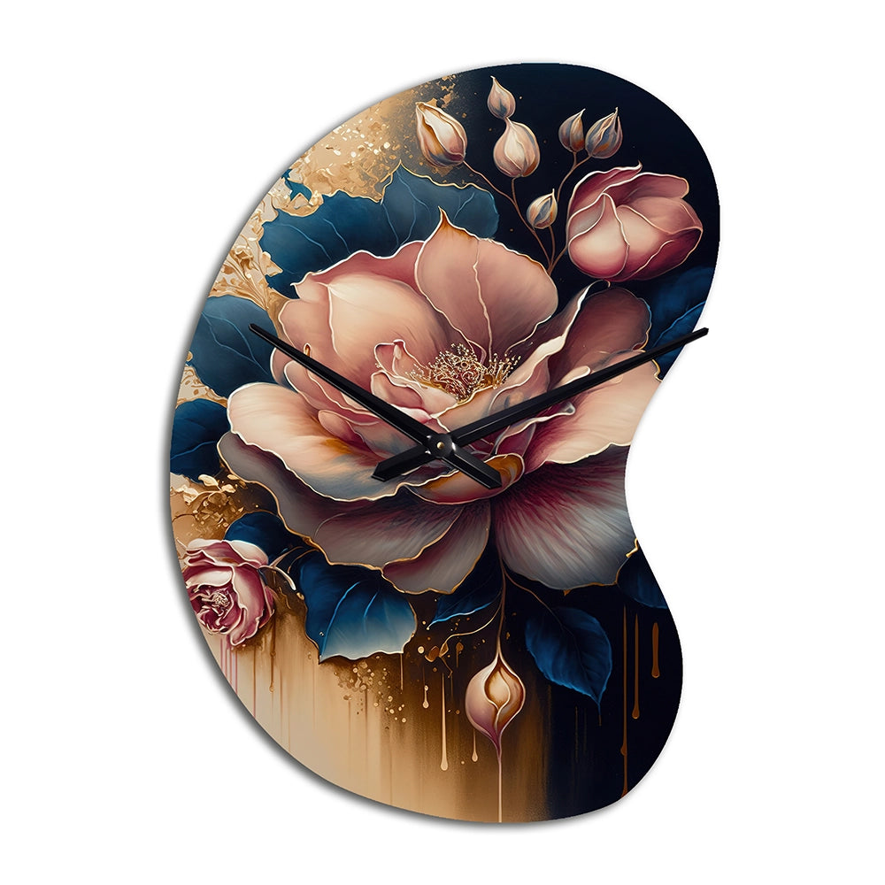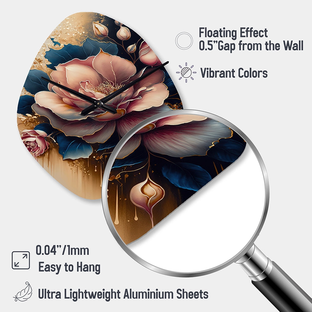 Decadent Pink And Blue Roses III - Asymmetric Metal Wall Clock