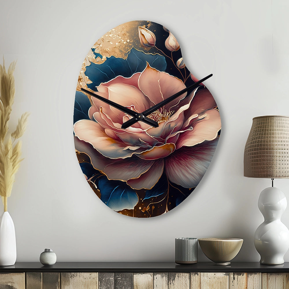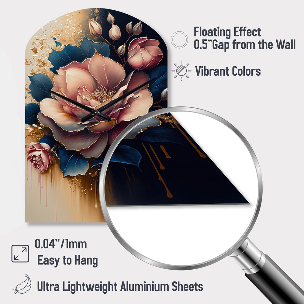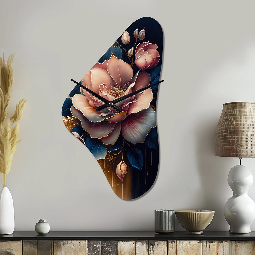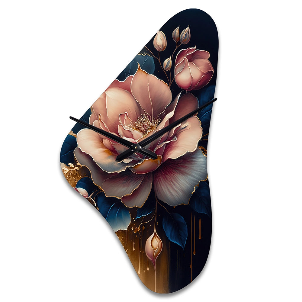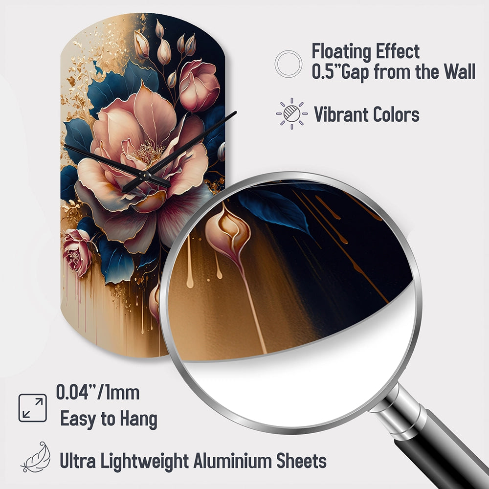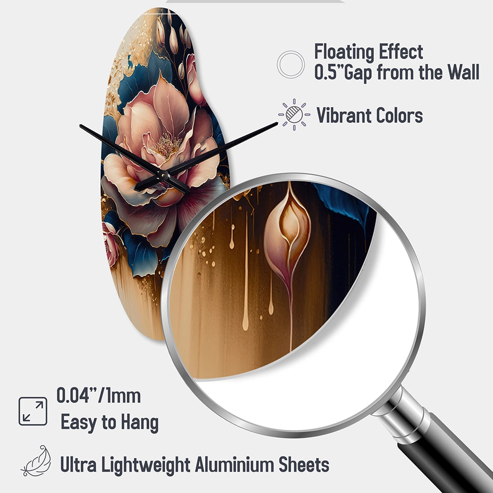 Decadent Pink And Blue Roses III - Asymmetric Metal Wall Clock