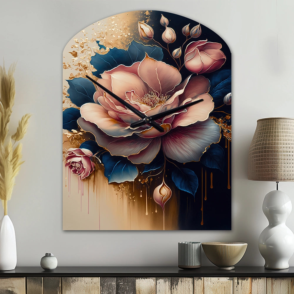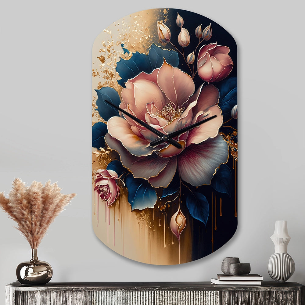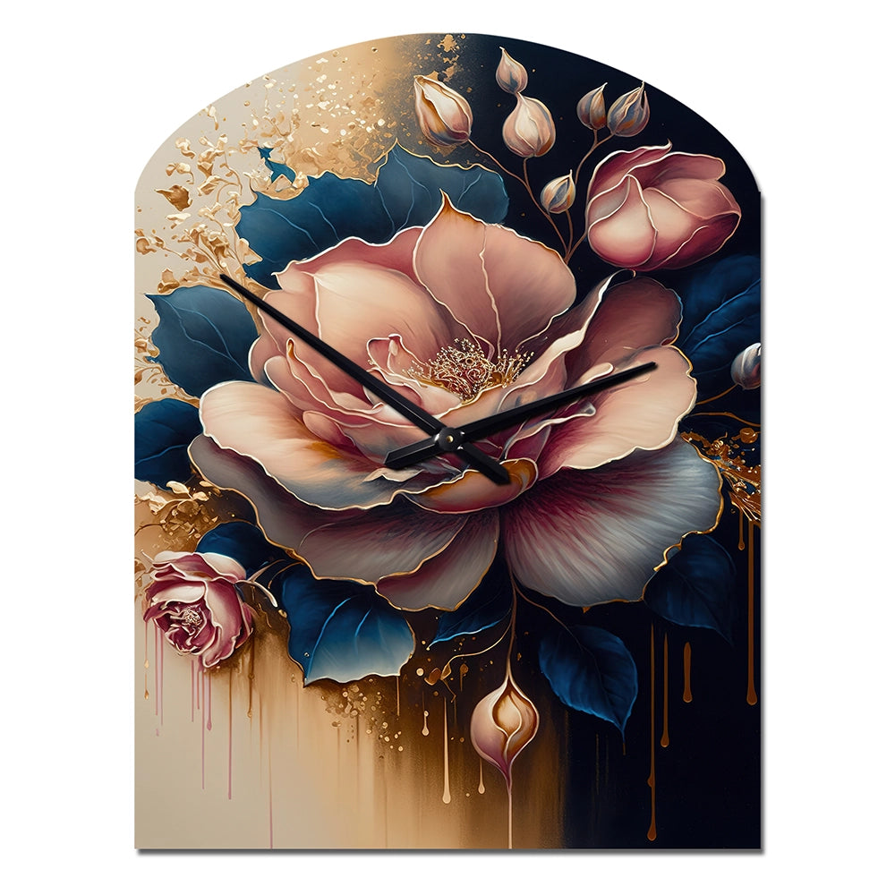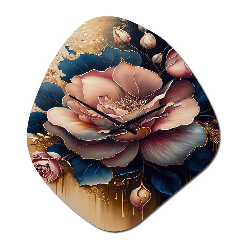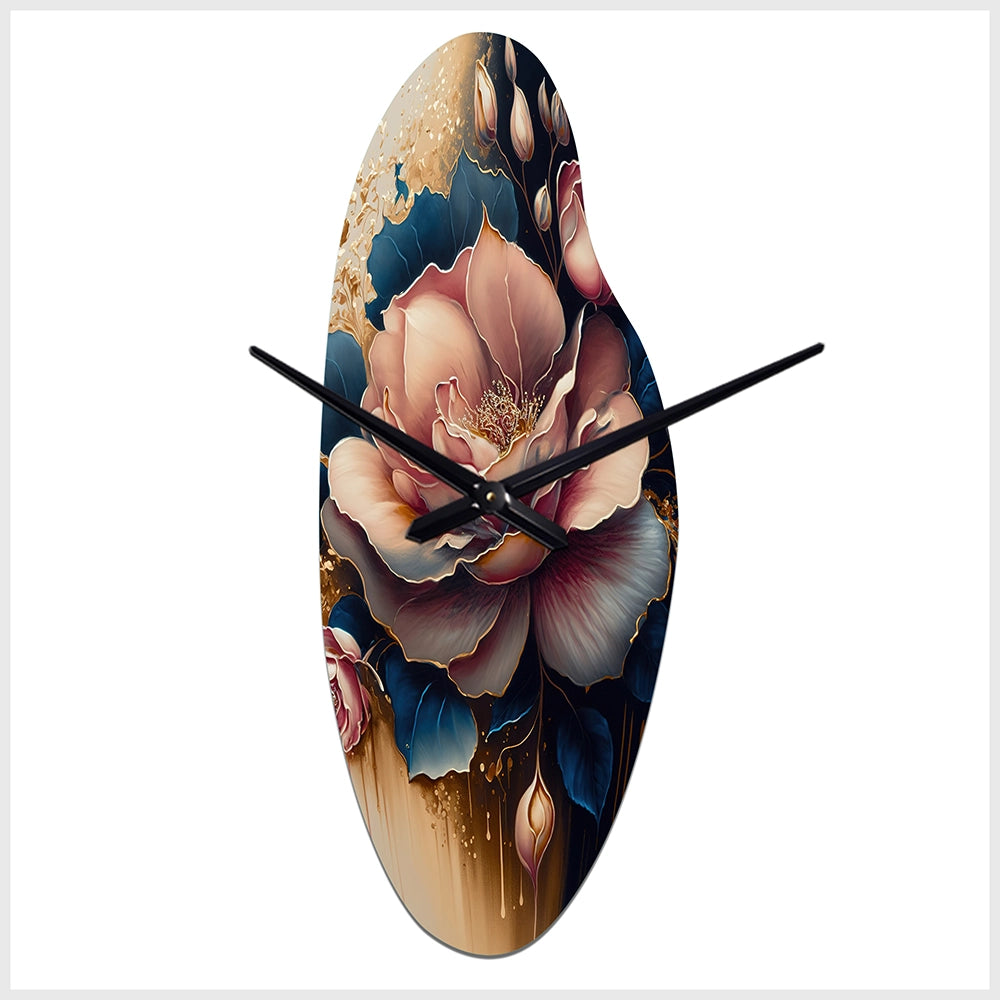 Decadent Pink And Blue Roses III - Asymmetric Metal Wall Clock
