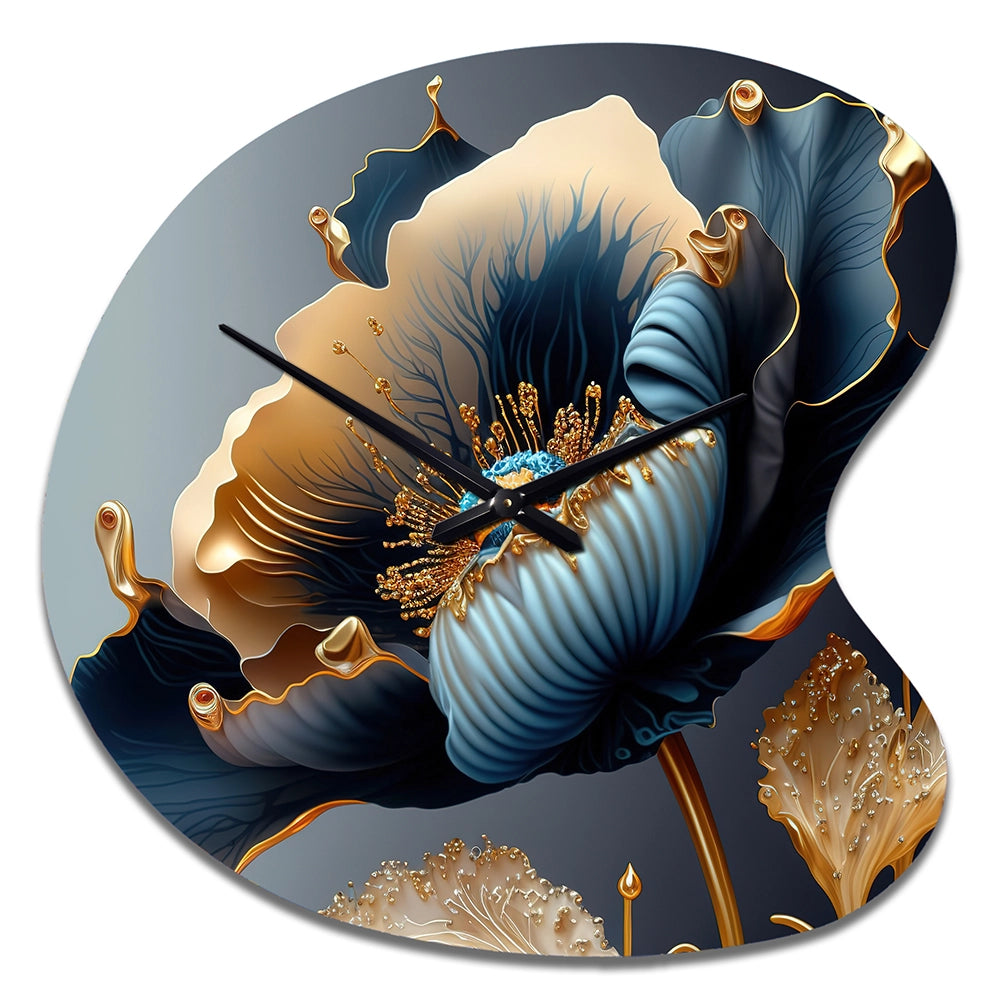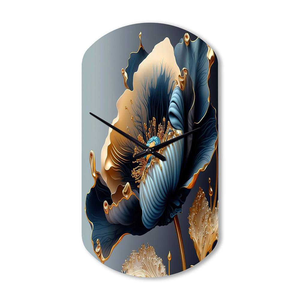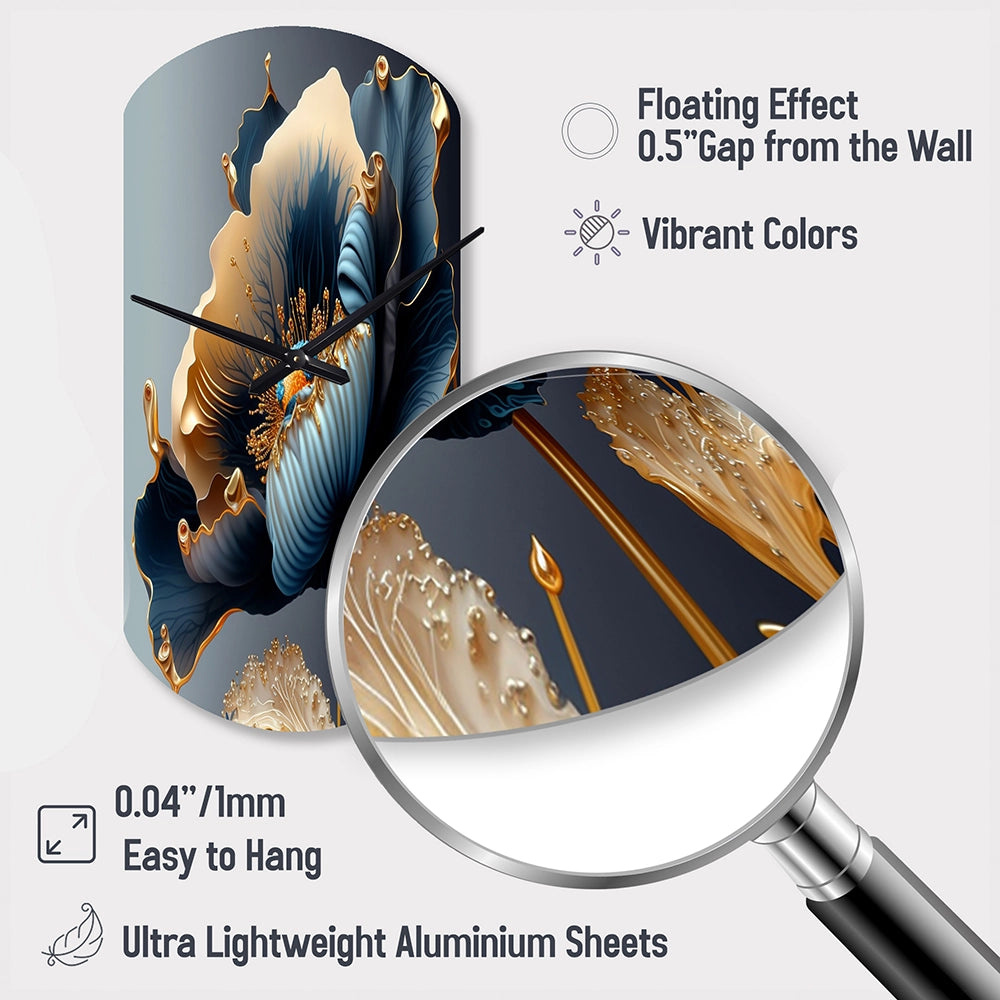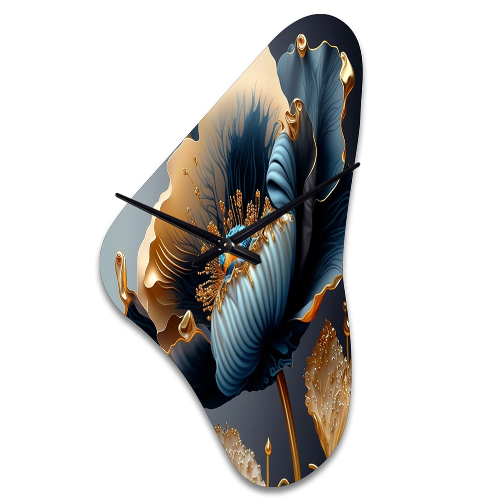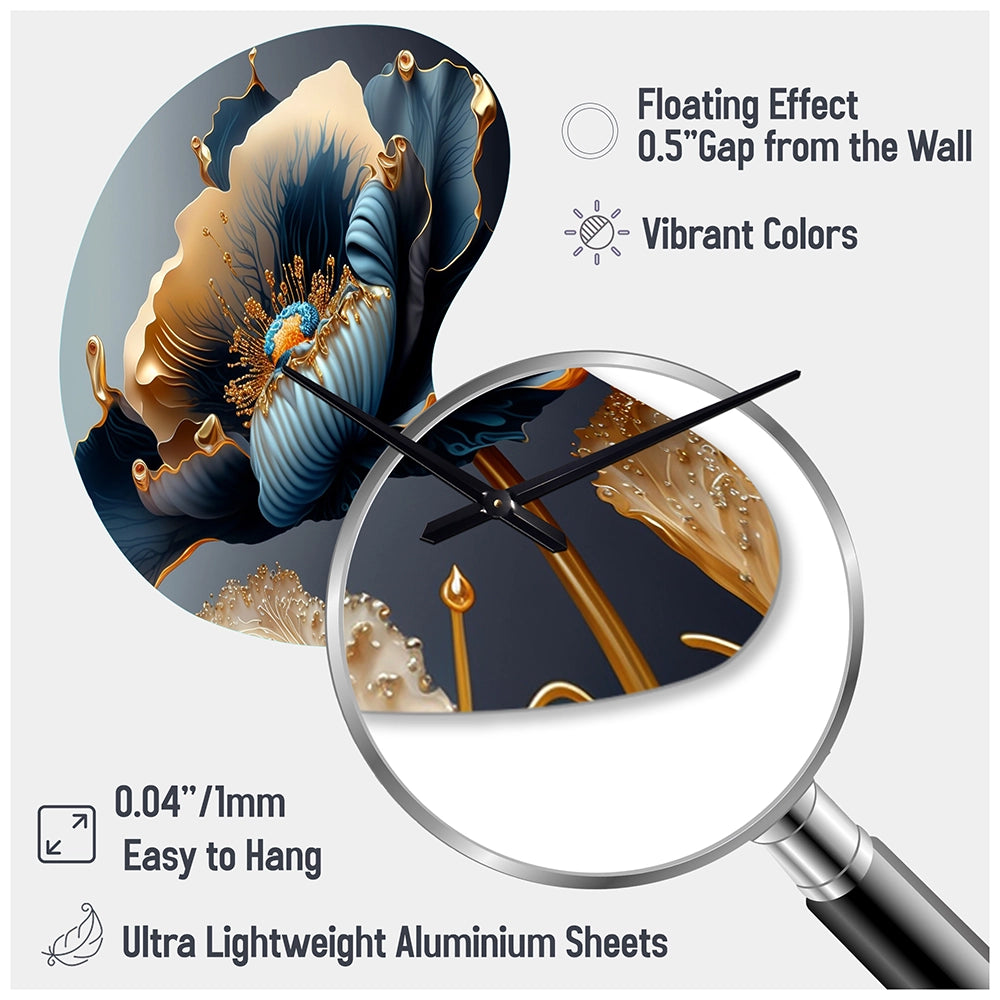 Deep Blue And Gold Single Flower III - Asymmetric Metal Wall Clock