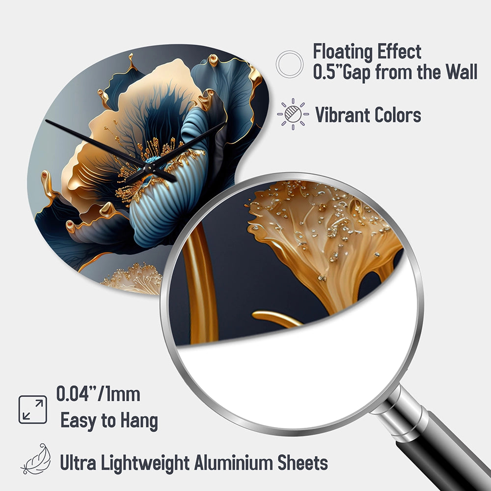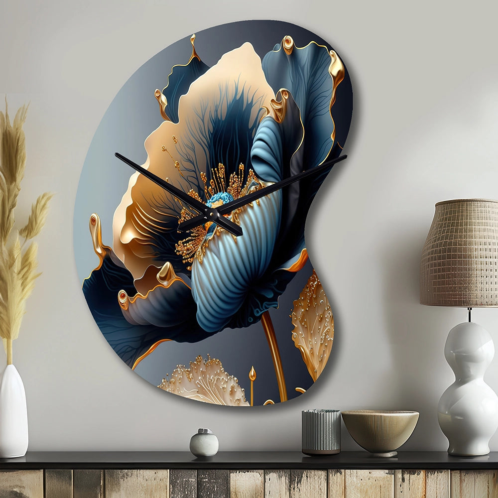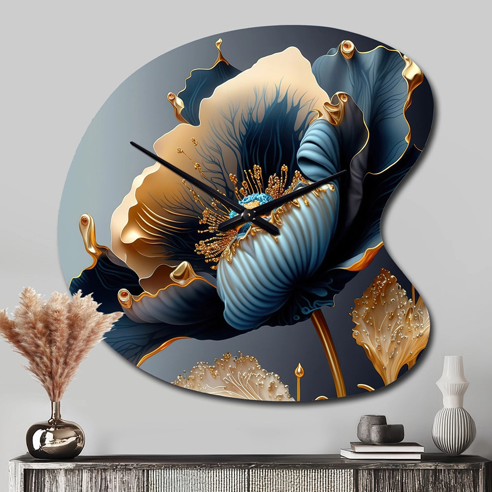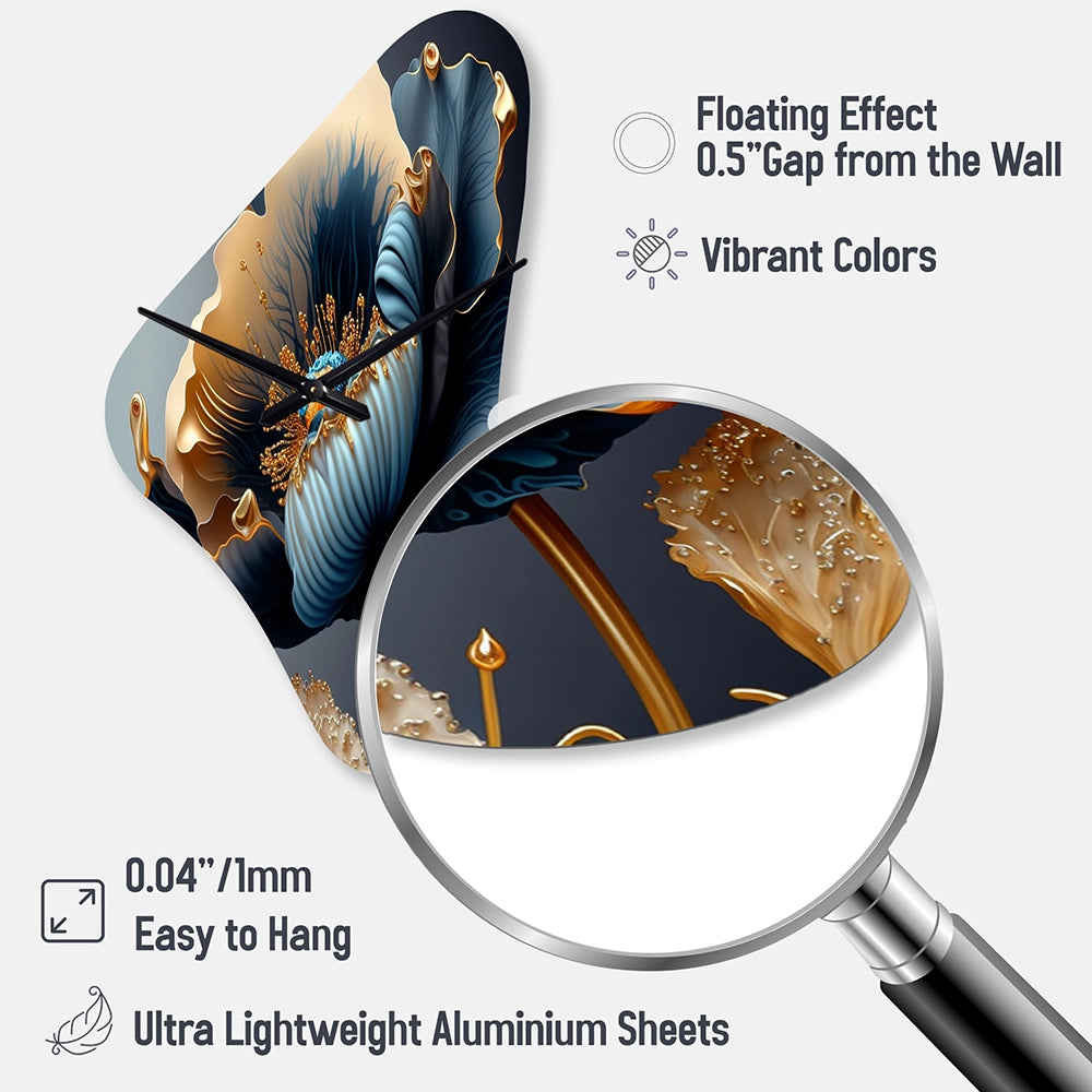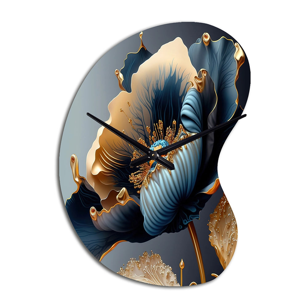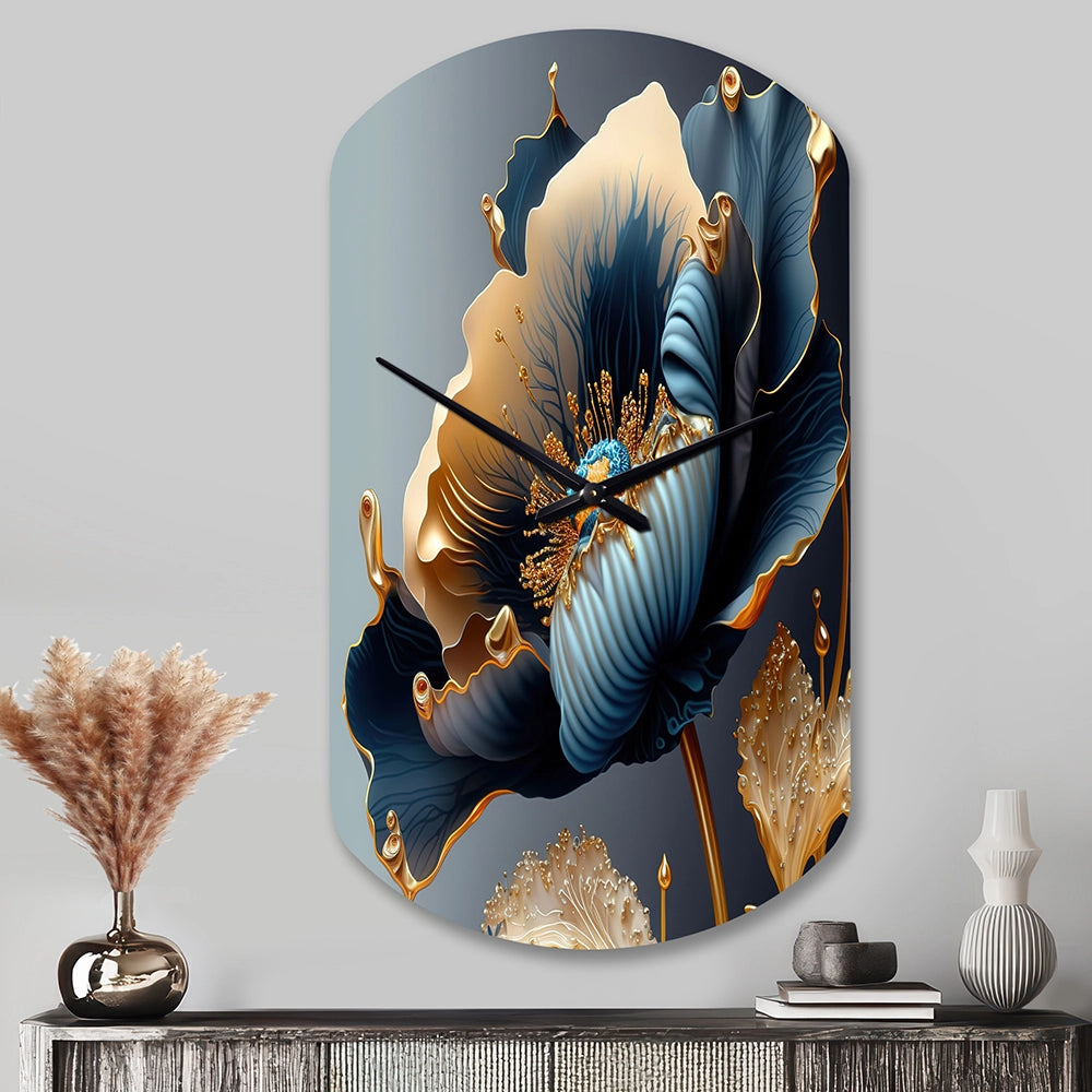 Deep Blue And Gold Single Flower III - Asymmetric Metal Wall Clock