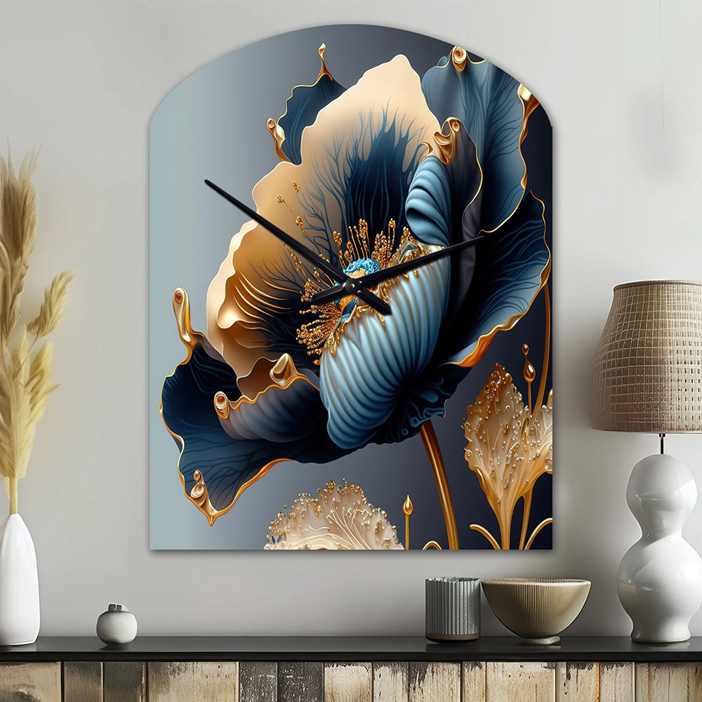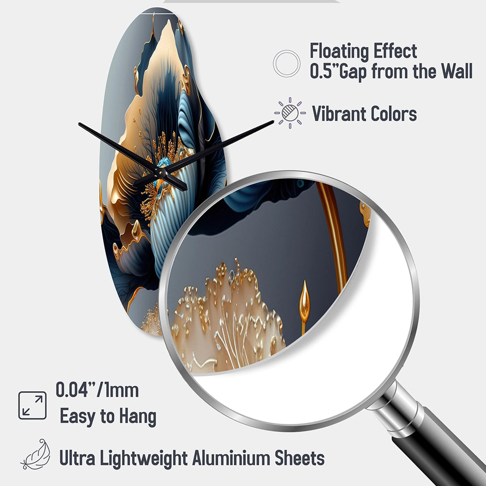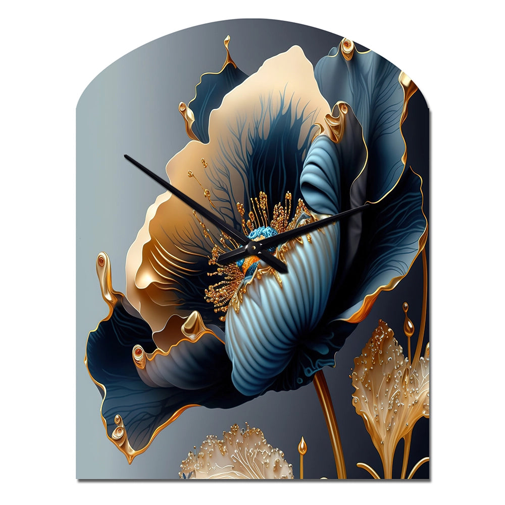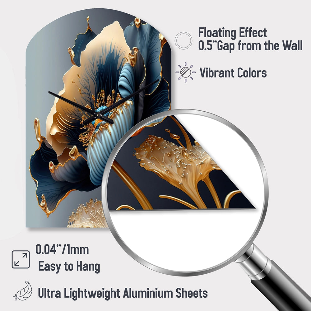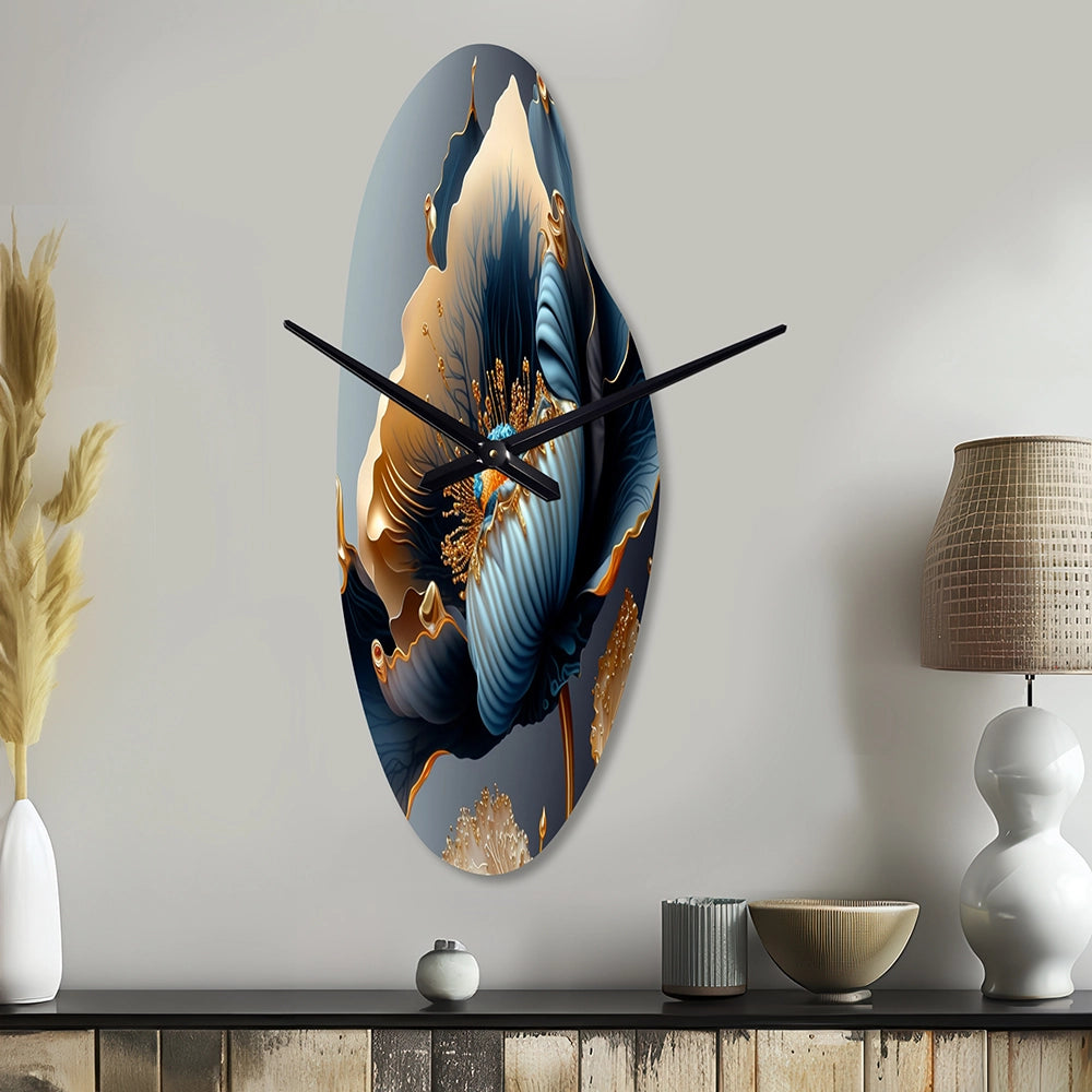 Deep Blue And Gold Single Flower III - Asymmetric Metal Wall Clock
