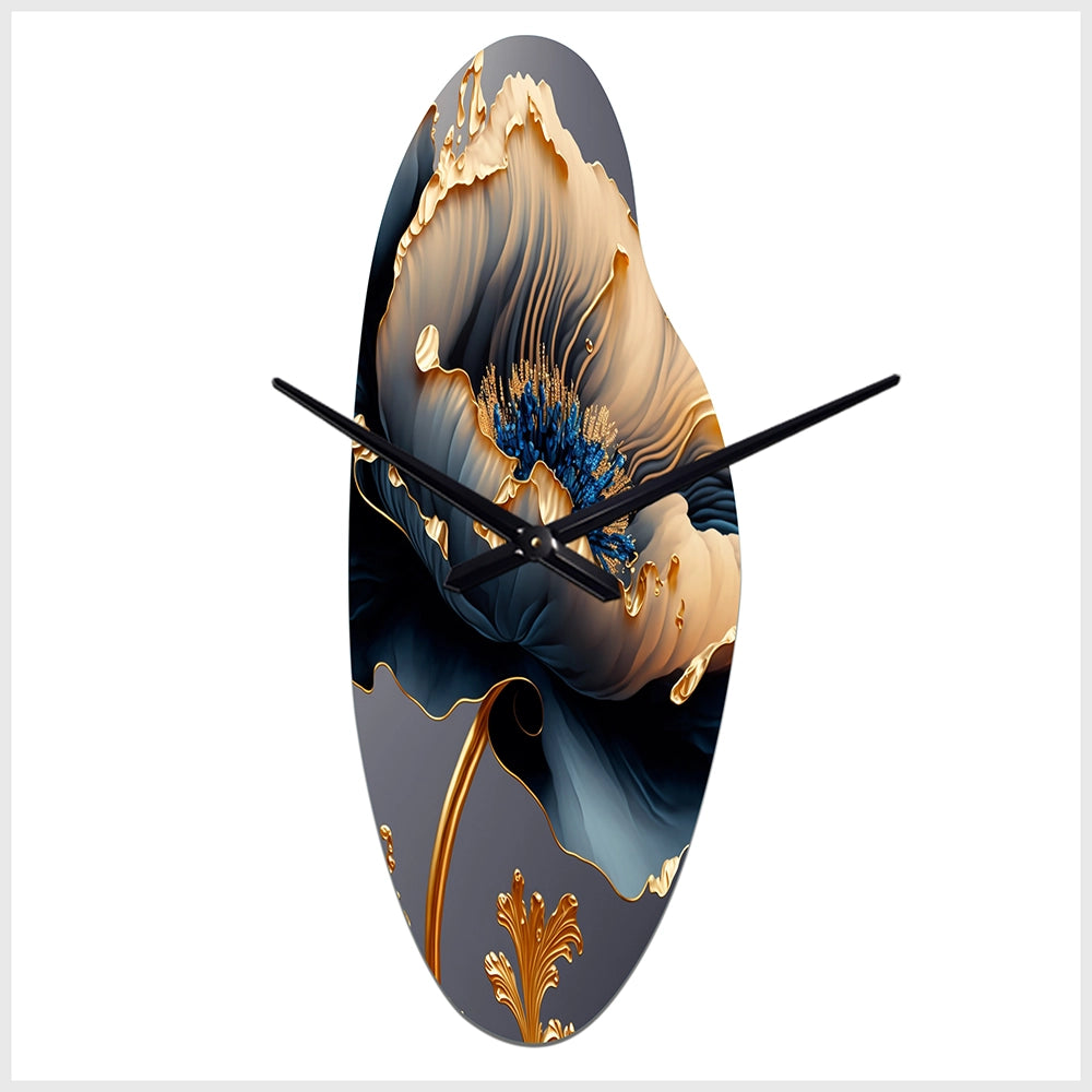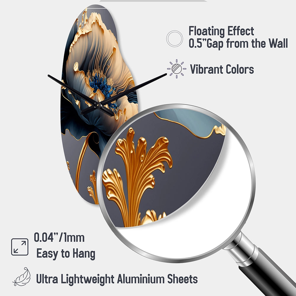 Deep Blue And Gold Single Flower VI - Asymmetric Metal Wall Clock