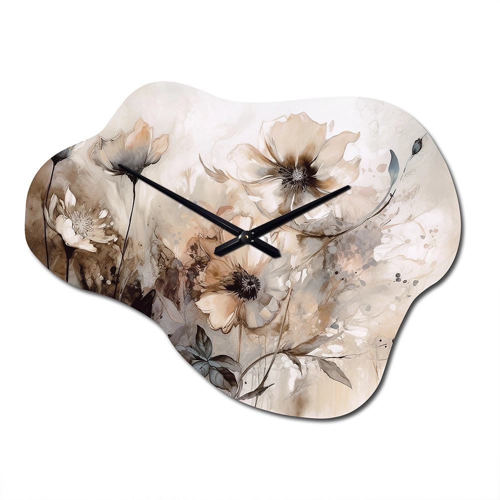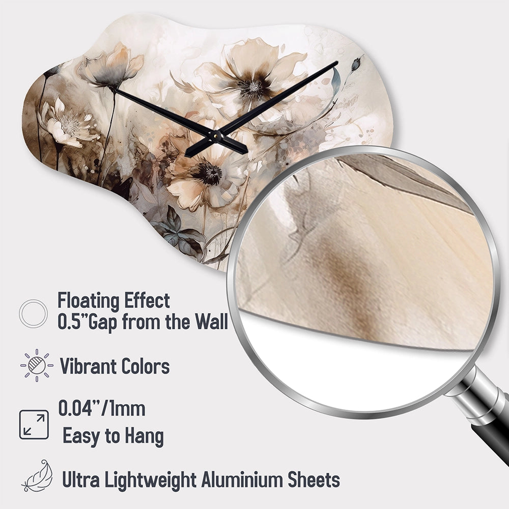 Delicate Warm Floral Impressions - Asymmetric Metal Wall Clock