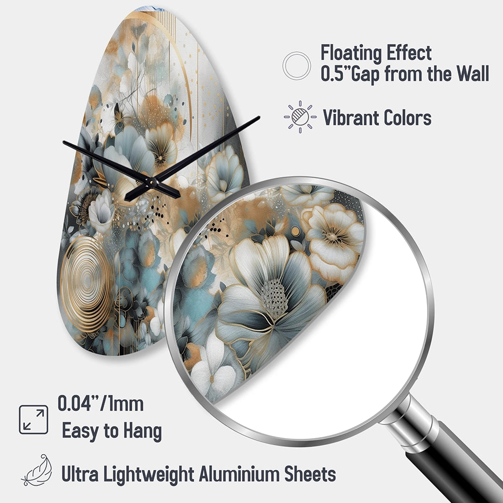 Golden Blue Silky Flower Design II - Asymmetric Metal Wall Clock