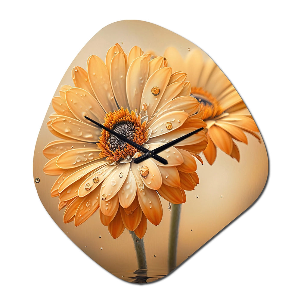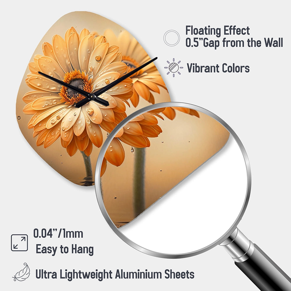 Orange And White Daisy's I - Asymmetric Metal Wall Clock