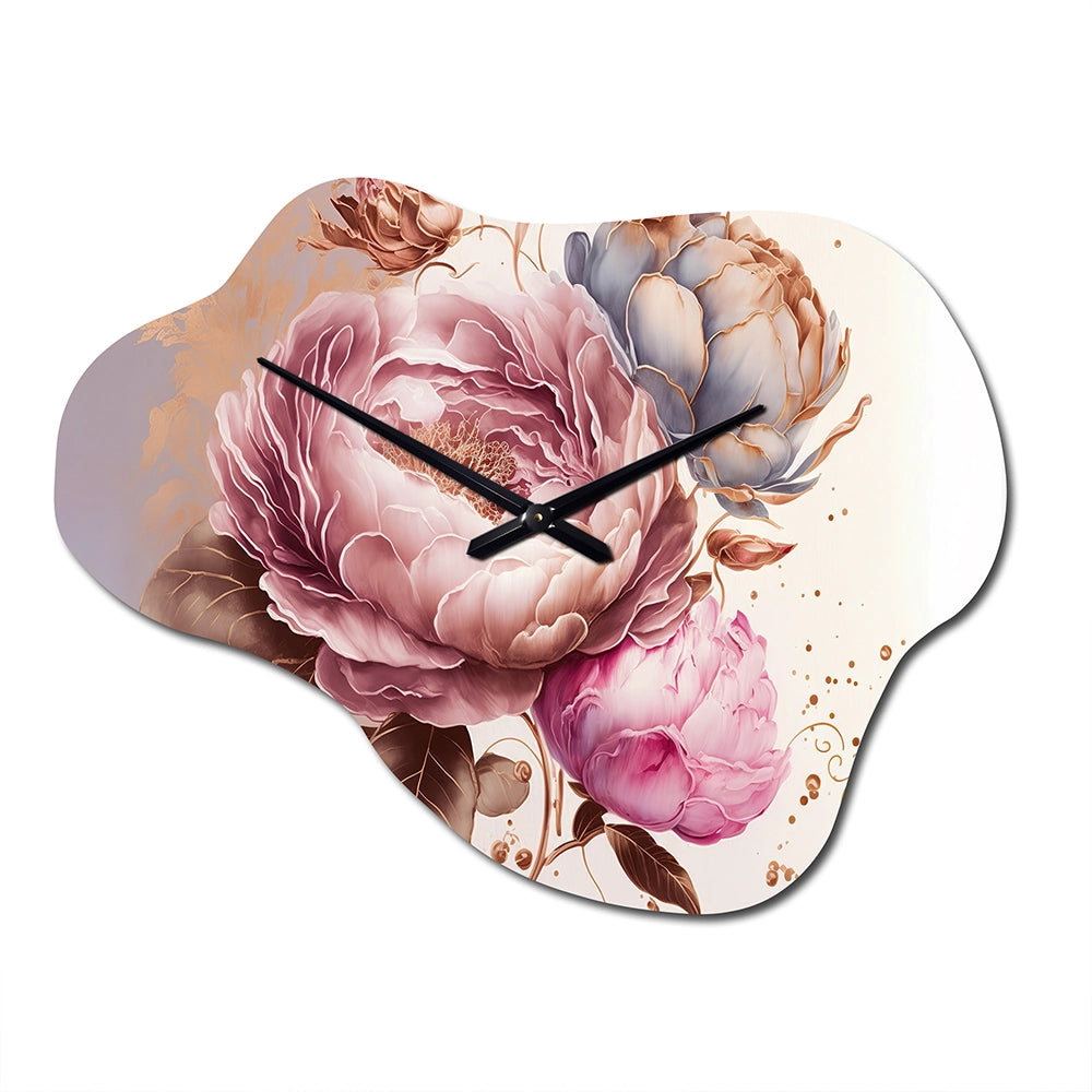 Pink And Gold Rose I - Asymmetric Metal Wall Clock
