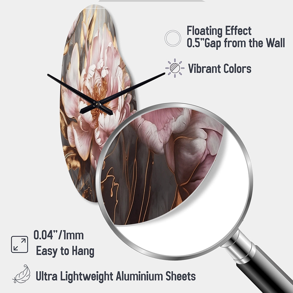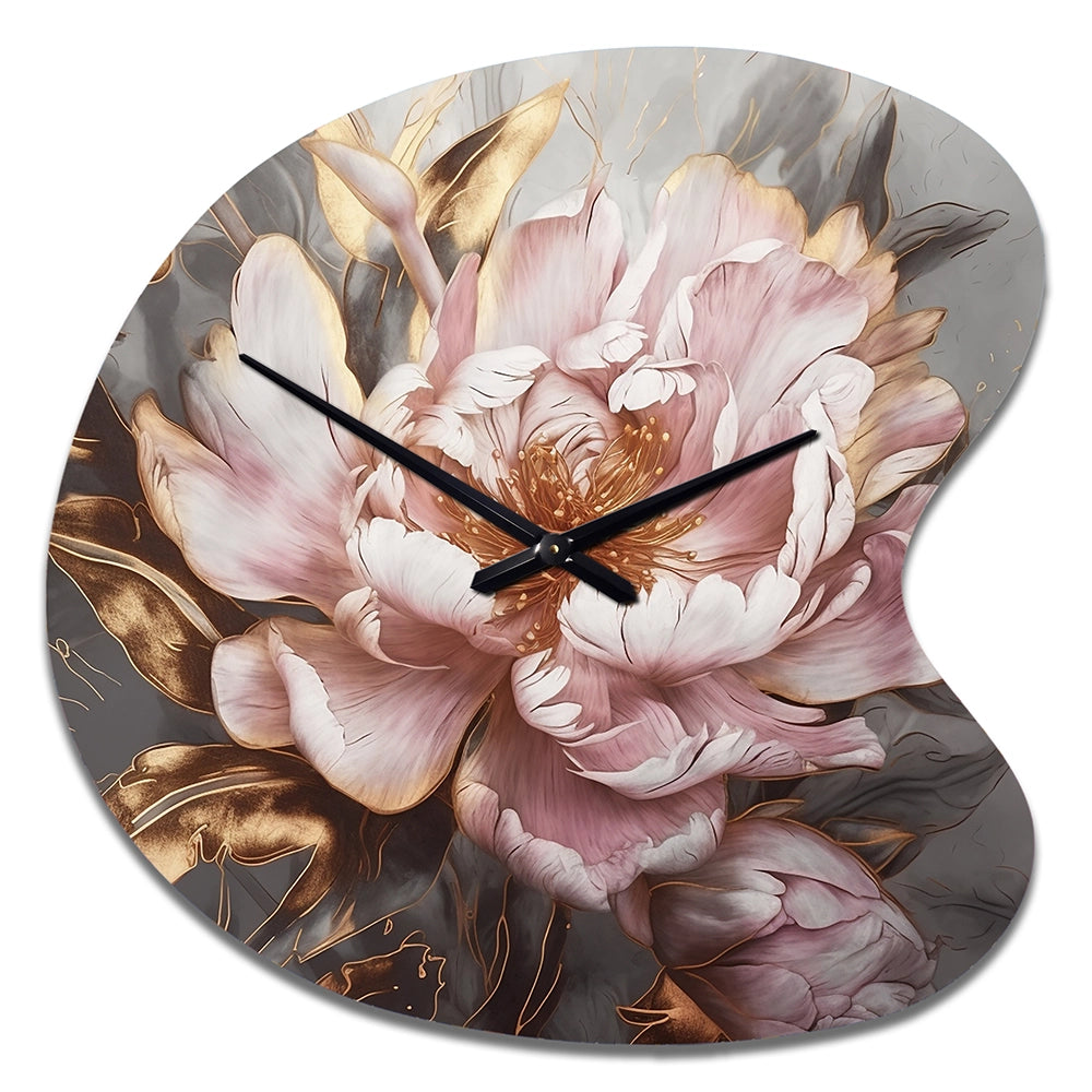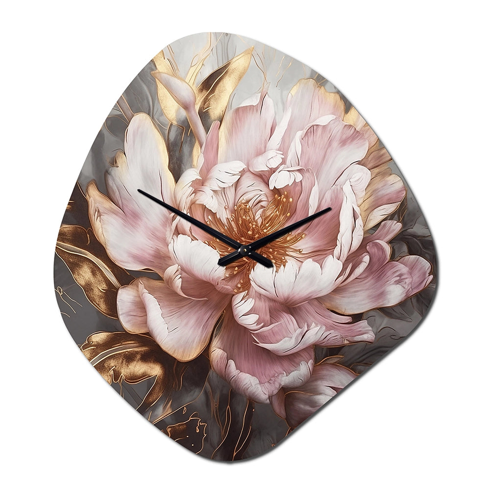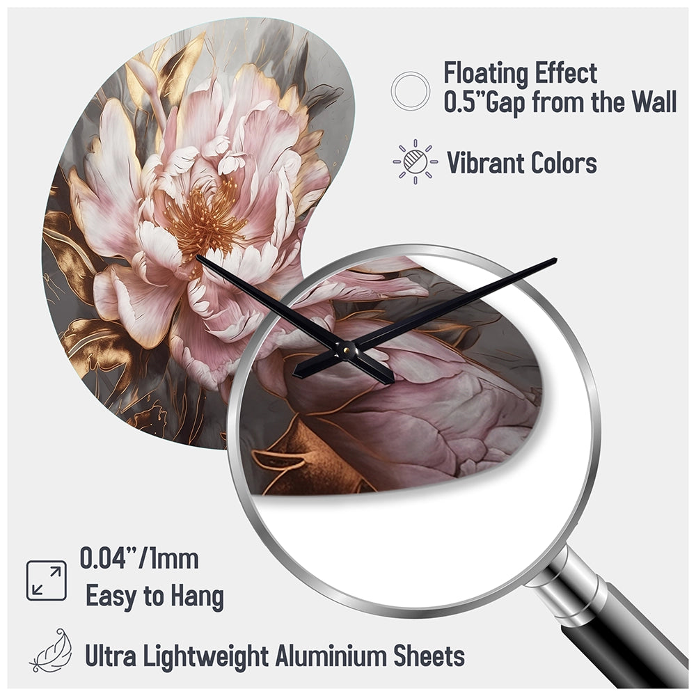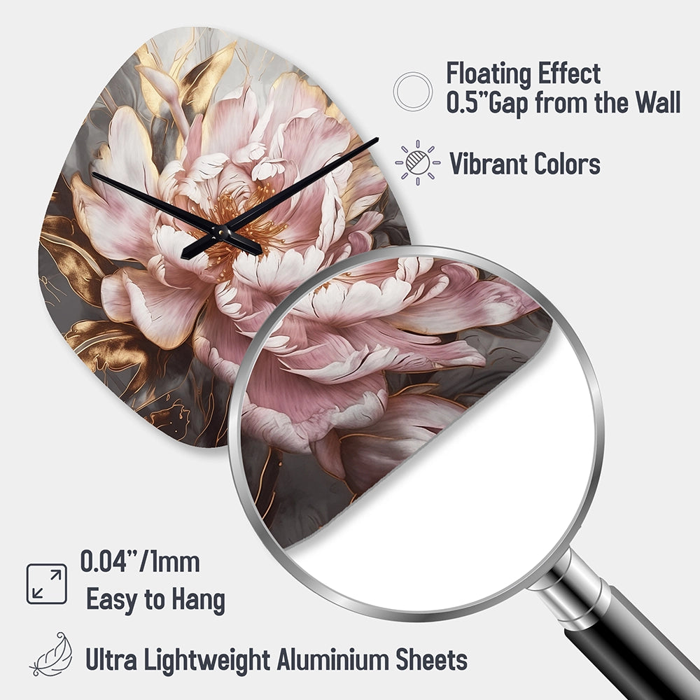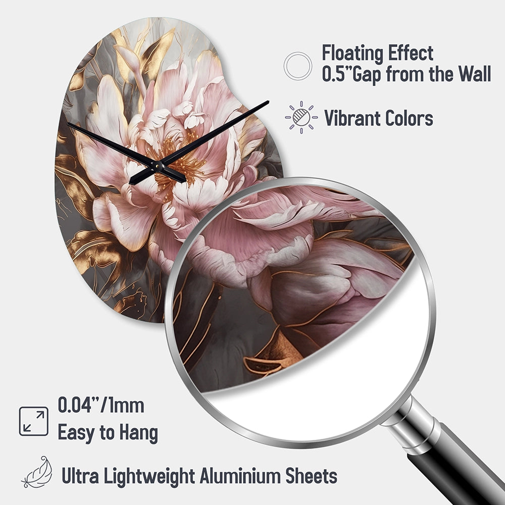 Pink Gold Peonies Petals - Asymmetric Metal Wall Clock
