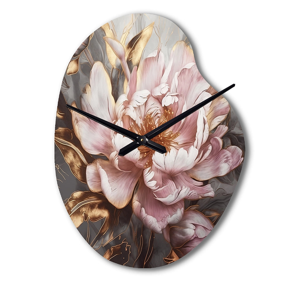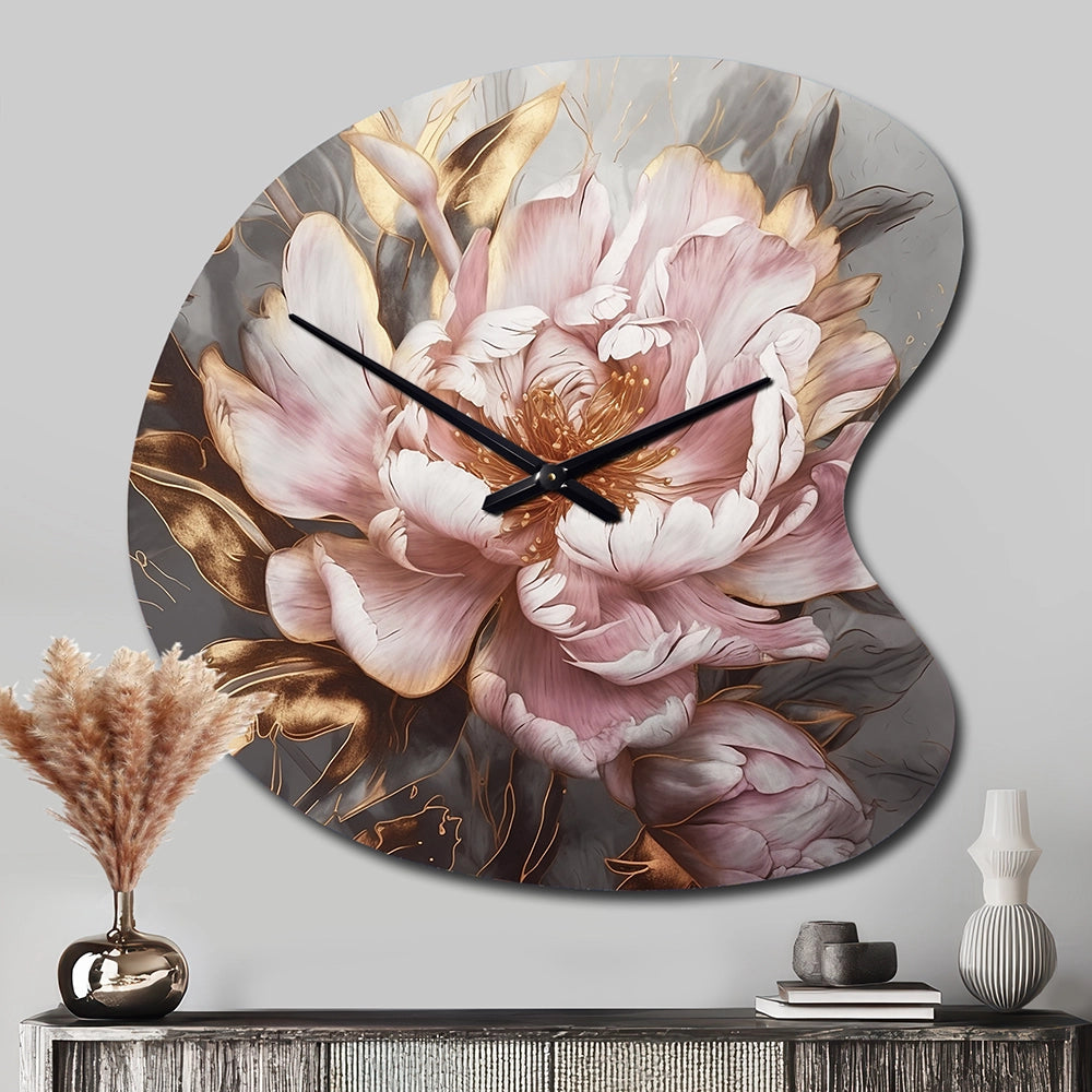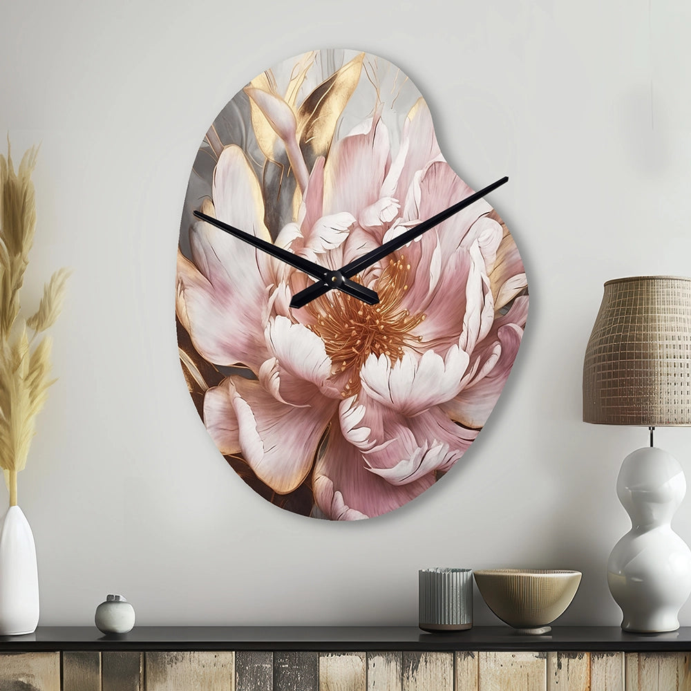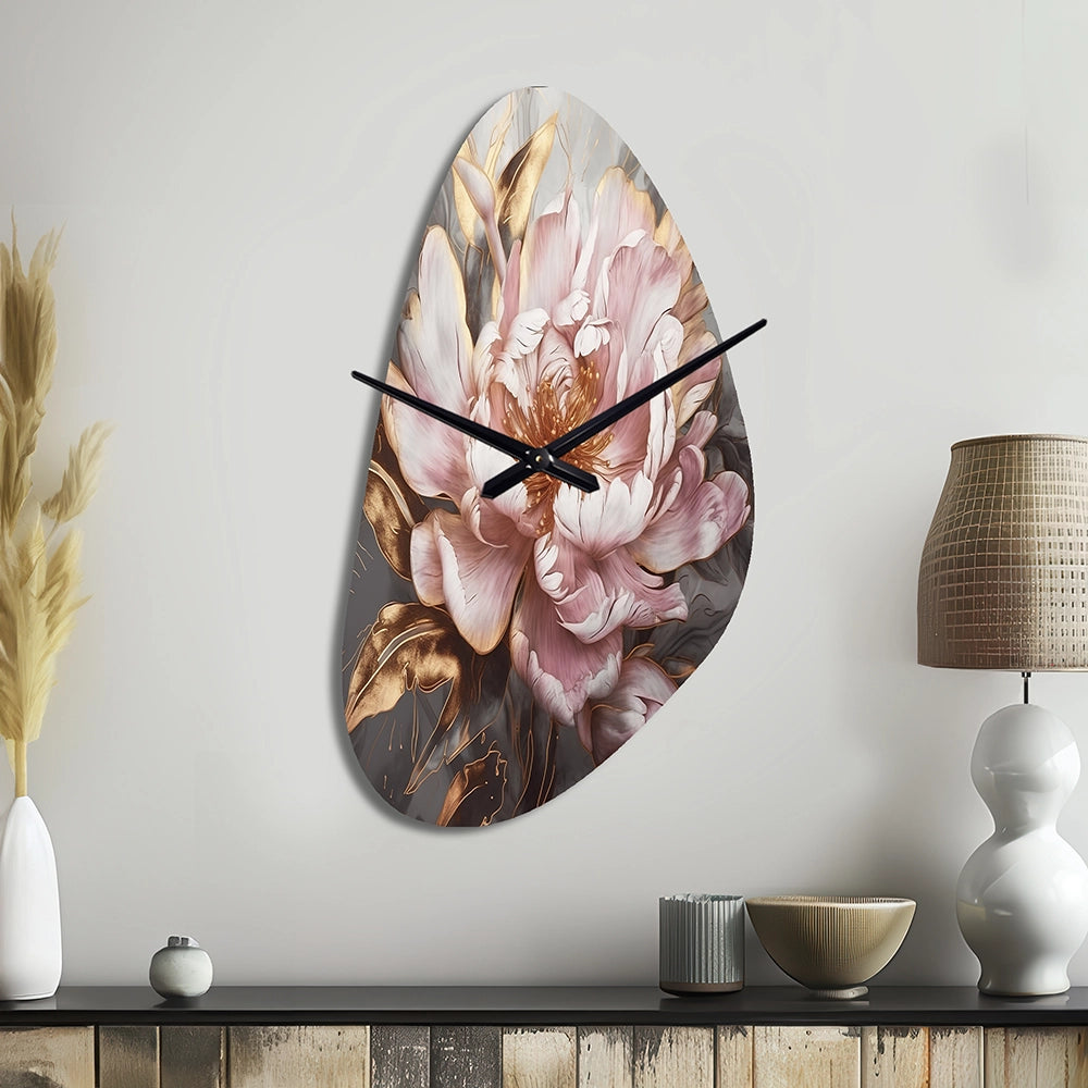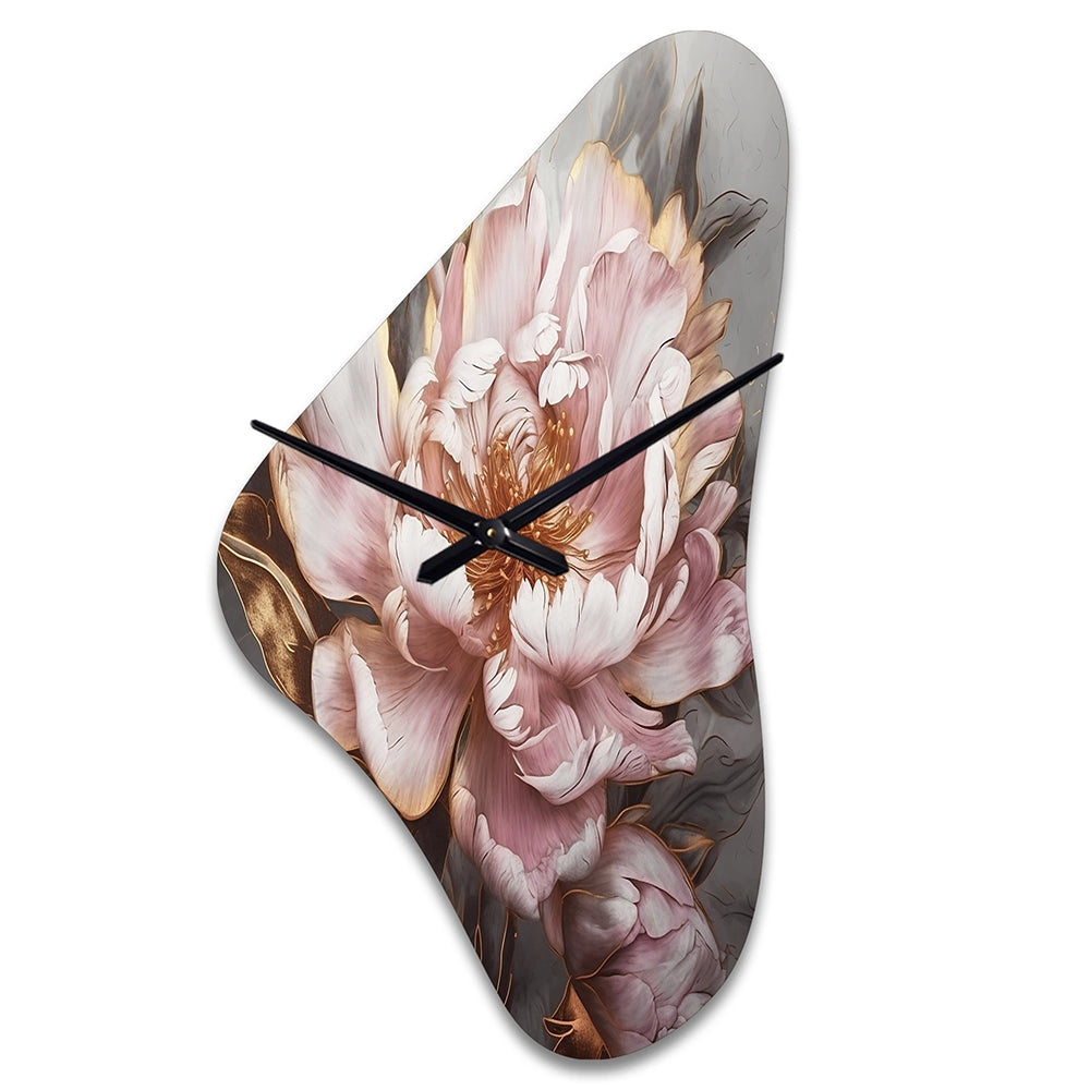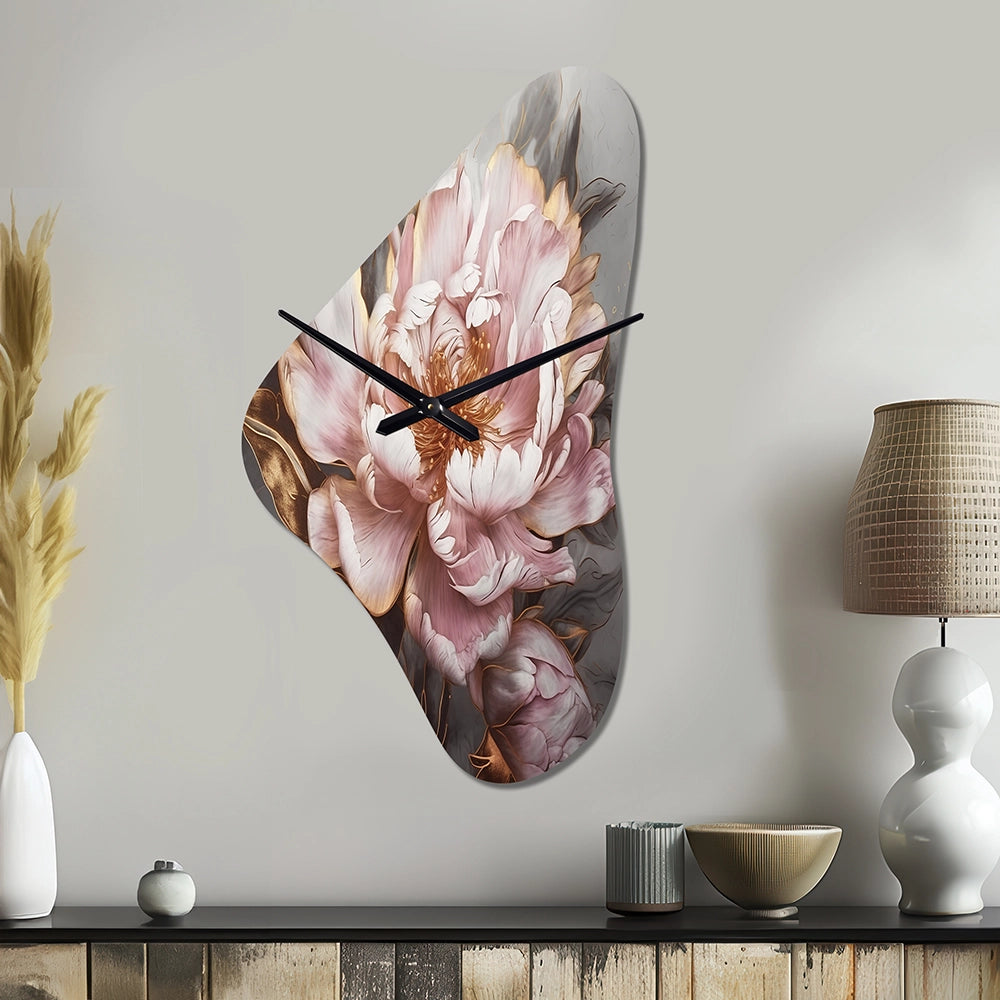 Pink Gold Peonies Petals - Asymmetric Metal Wall Clock