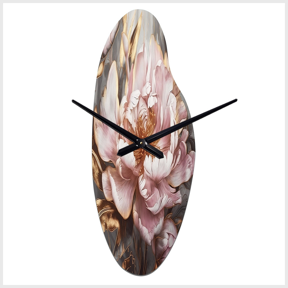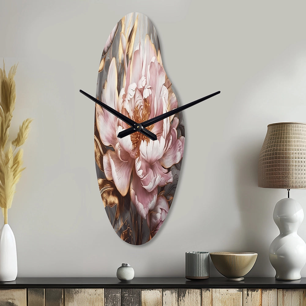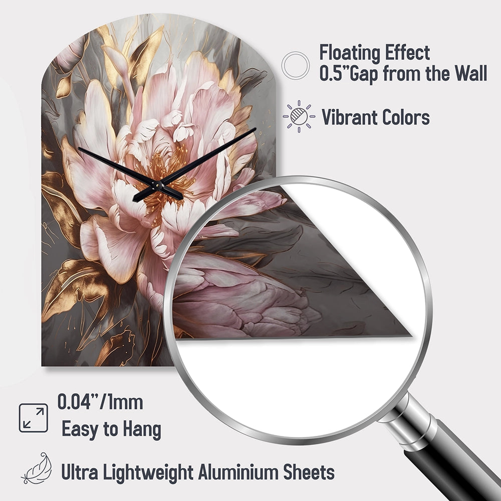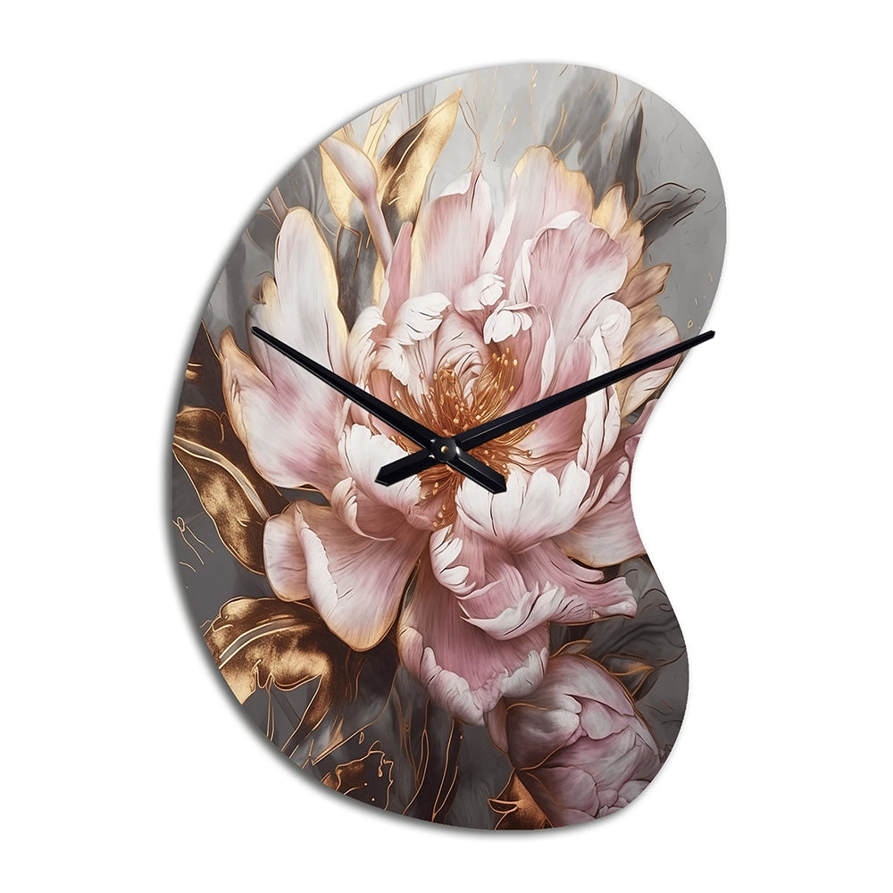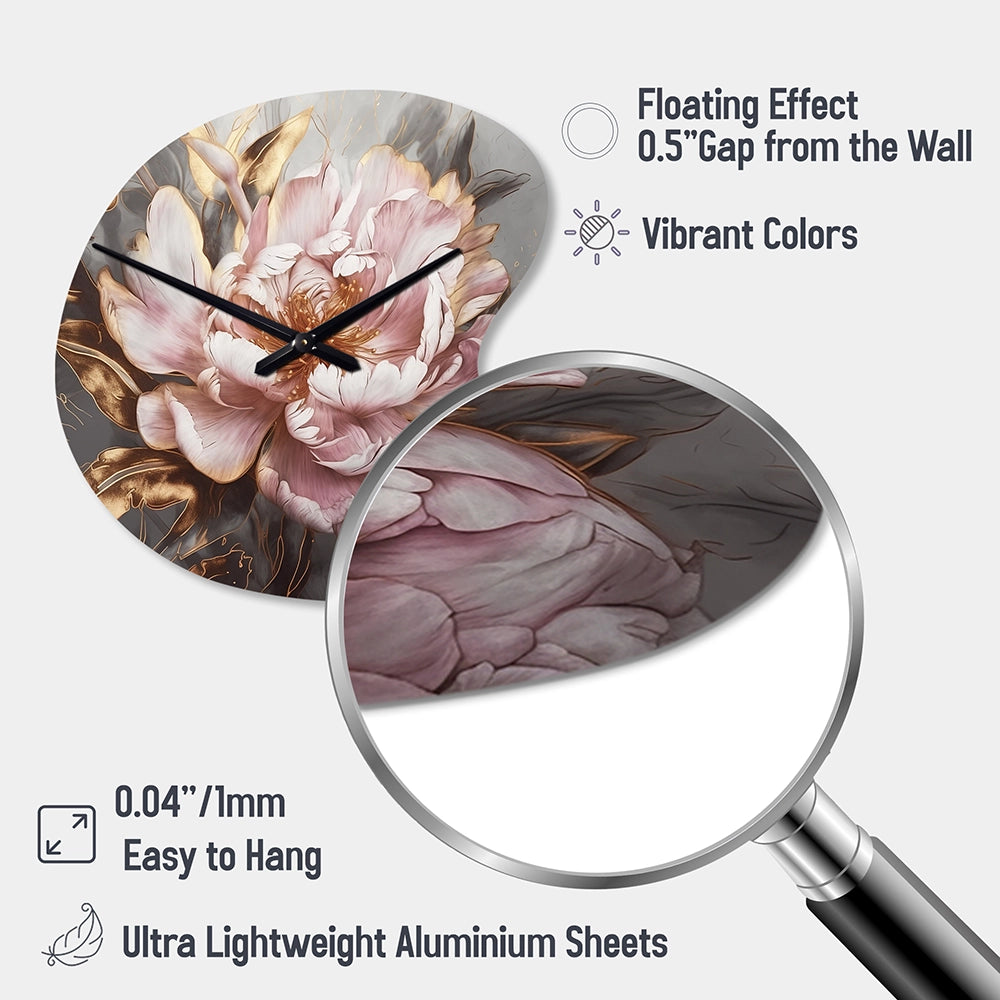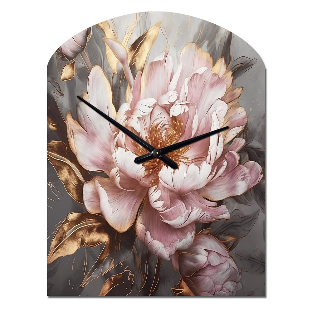 Pink Gold Peonies Petals - Asymmetric Metal Wall Clock