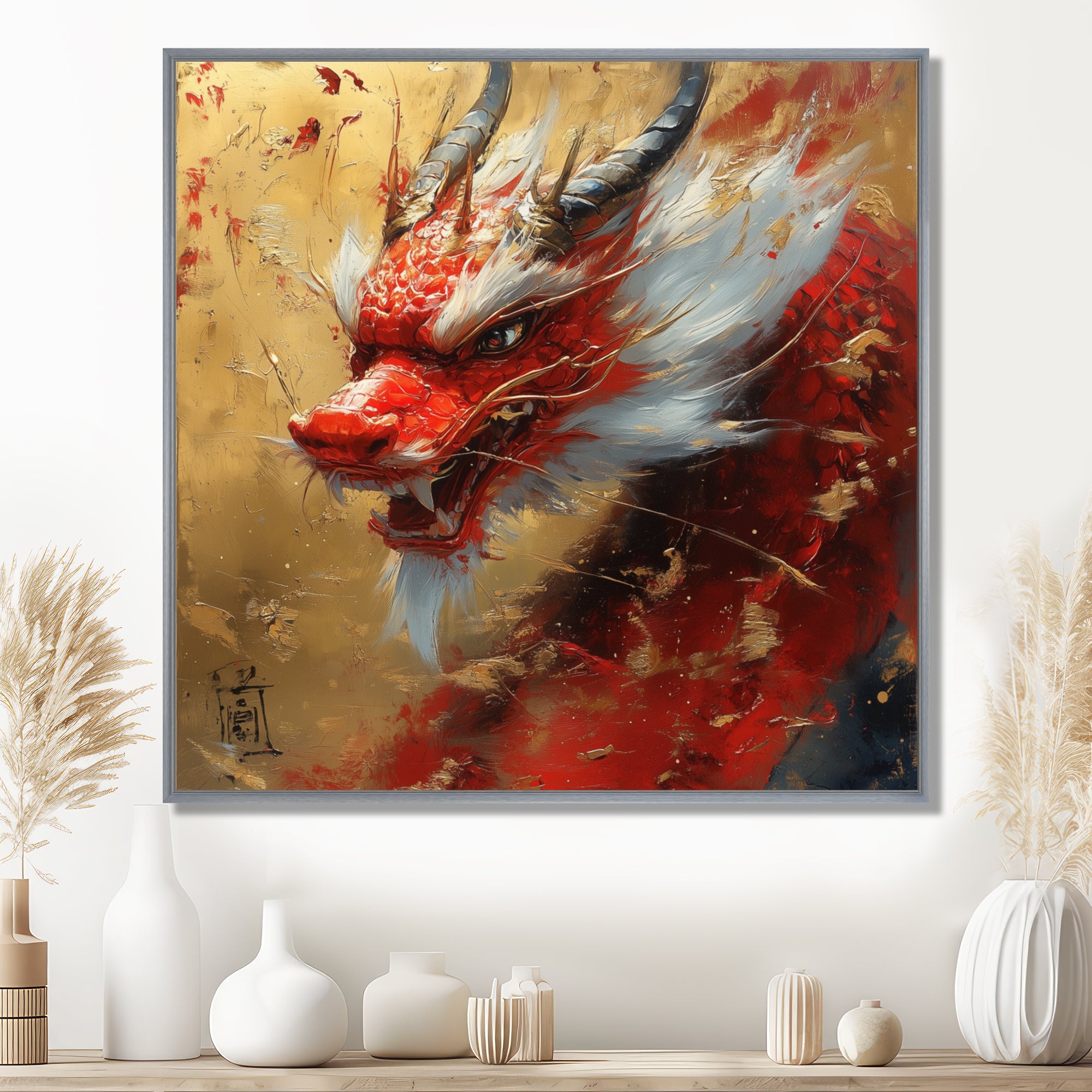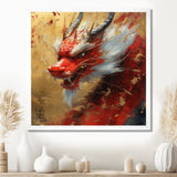China Red And Gold Dragons Power - Dragons Framed Canvas Art