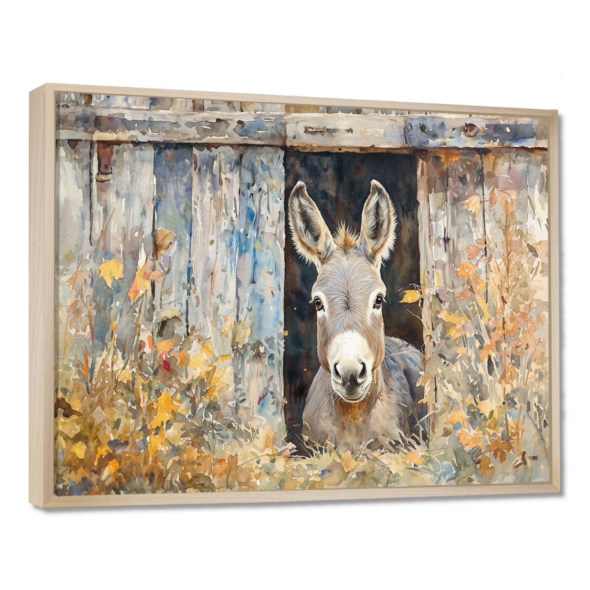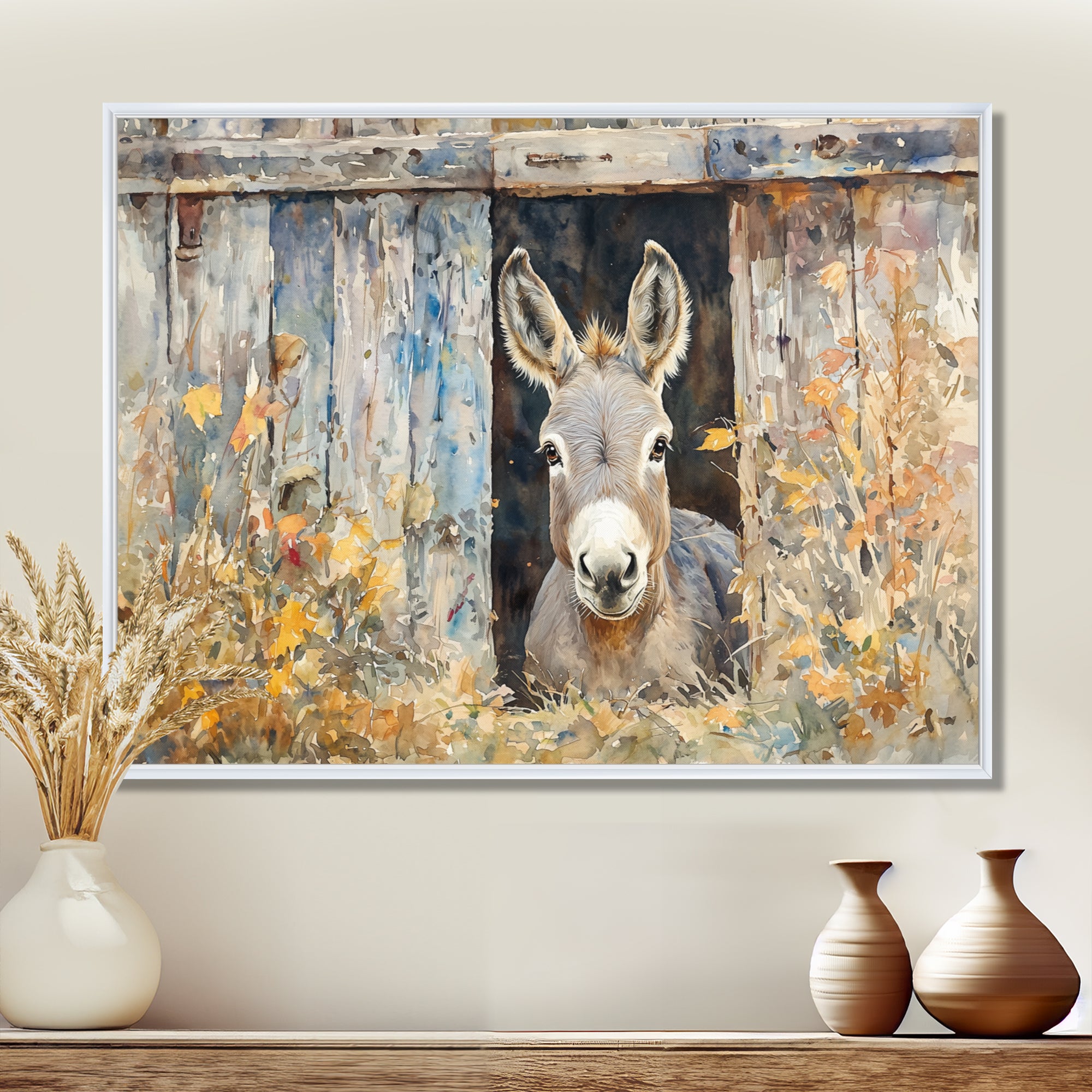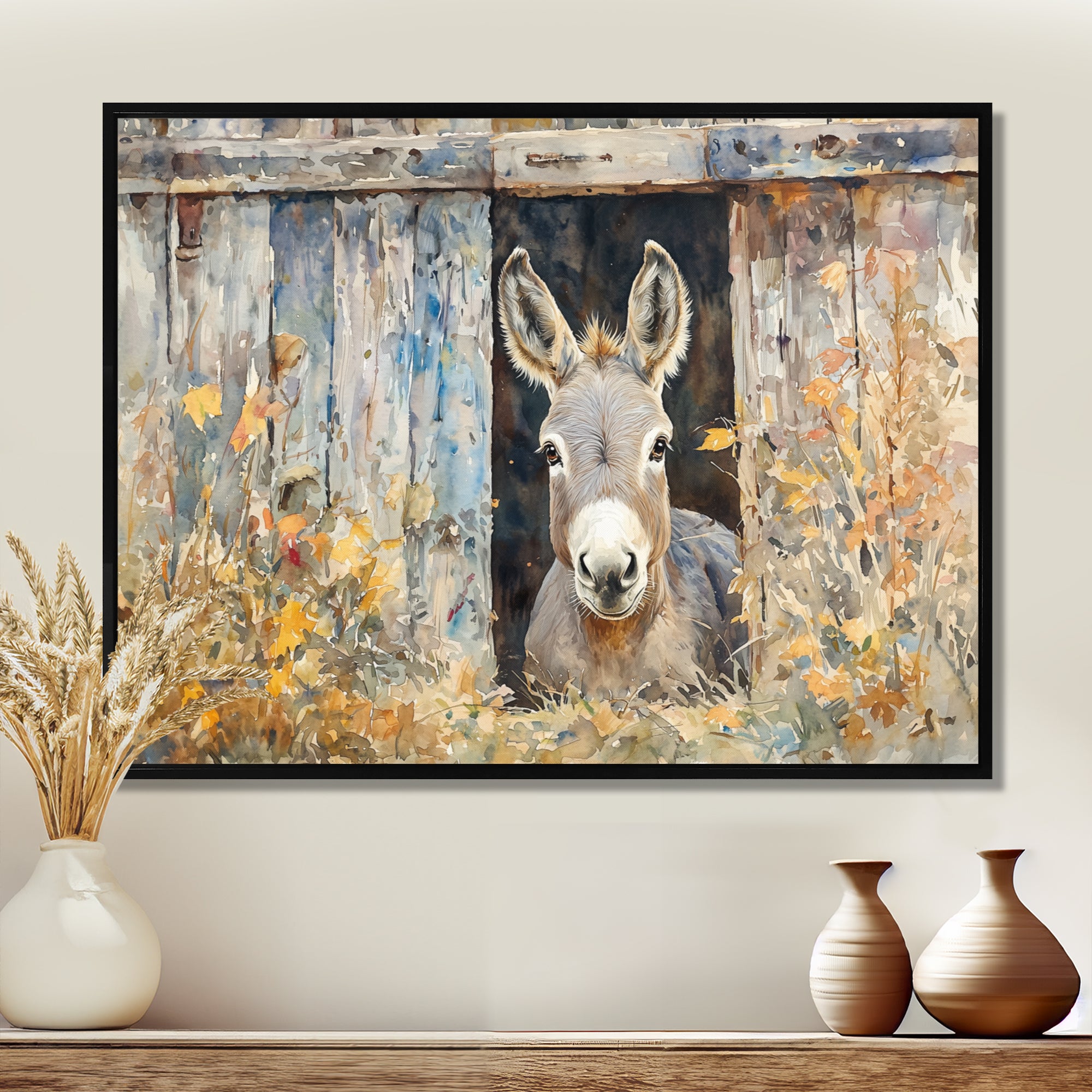 Donkey Floral Portrait At The Barn - Donkey Wall Art Prints