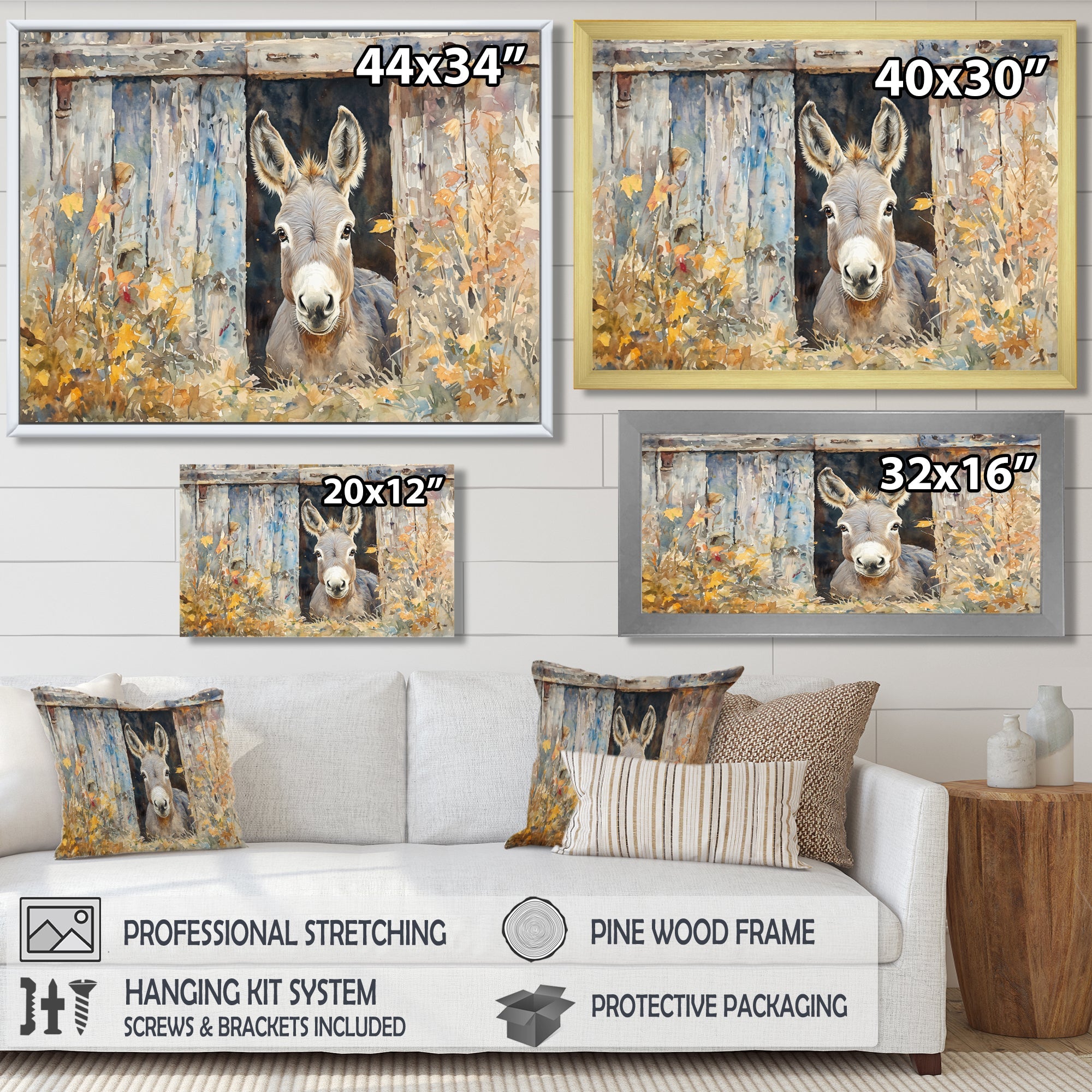 This beautiful Donkey Floral Portrait At The Barn Canvas Art is printed using the highest quality fade-resistant ink on canvas. Every one of our fine art giclee canvas prints is printed on premium quality cotton canvas, using the finest quality inks which will not fade over time. Each giclee print is stretched tightly over a 1-inch wood sub frame for small size prints or a 1.5-inch wood subframe for large size prints ensuring the canvas is taught and does not buckle. This canvas art print is gallery-wrapped (the design continues on the sides), giving it a real art gallery feel. All of our canvas prints are carefully packaged with plastic protection, fragile labeling, and sturdy boxes to ensure safe delivery. Every canvas print arrives ready to hang on the wall, with the hanging kits included.