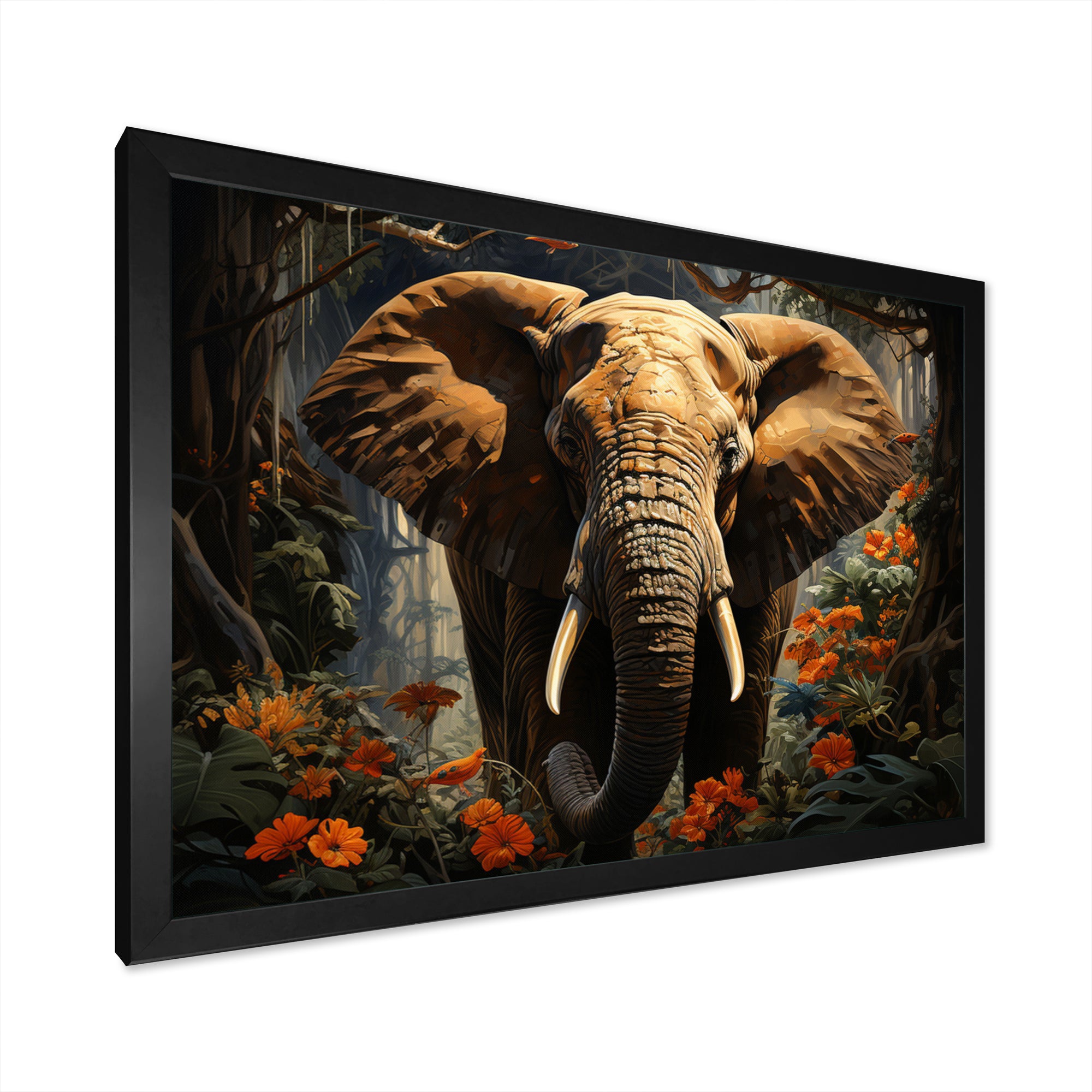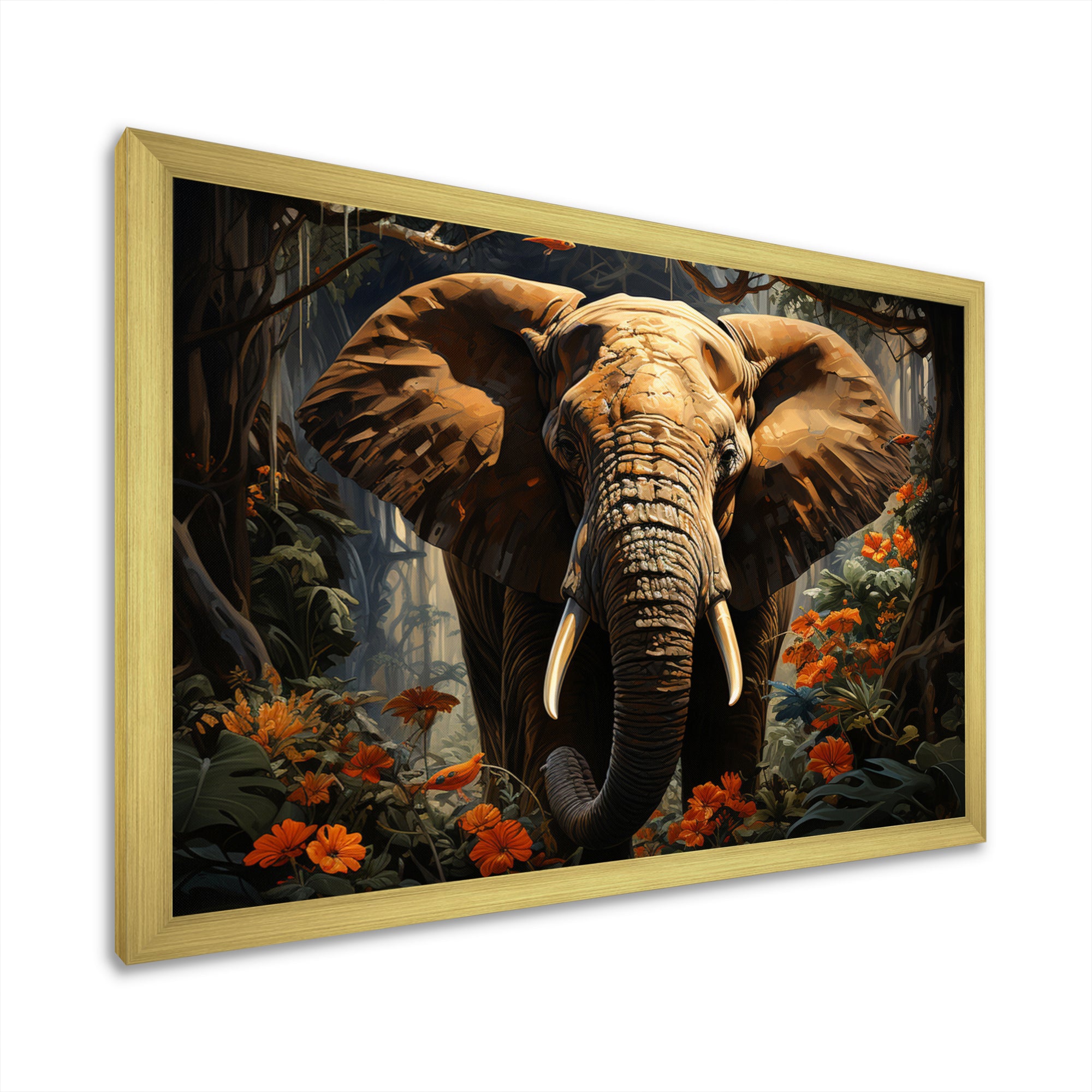 This beautiful Elephant Jungle Royalty Canvas Art is printed using the highest quality fade-resistant ink on canvas. Every one of our fine art giclee canvas prints is printed on premium quality cotton canvas, using the finest quality inks which will not fade over time. Each giclee print is stretched tightly over a 1-inch wood sub frame for small size prints or a 1.5-inch wood subframe for large size prints ensuring the canvas is taught and does not buckle. This canvas art print is gallery-wrapped (the design continues on the sides), giving it a real art gallery feel. All of our canvas prints are carefully packaged with plastic protection, fragile labeling, and sturdy boxes to ensure safe delivery. Every canvas print arrives ready to hang on the wall, with the hanging kits included.