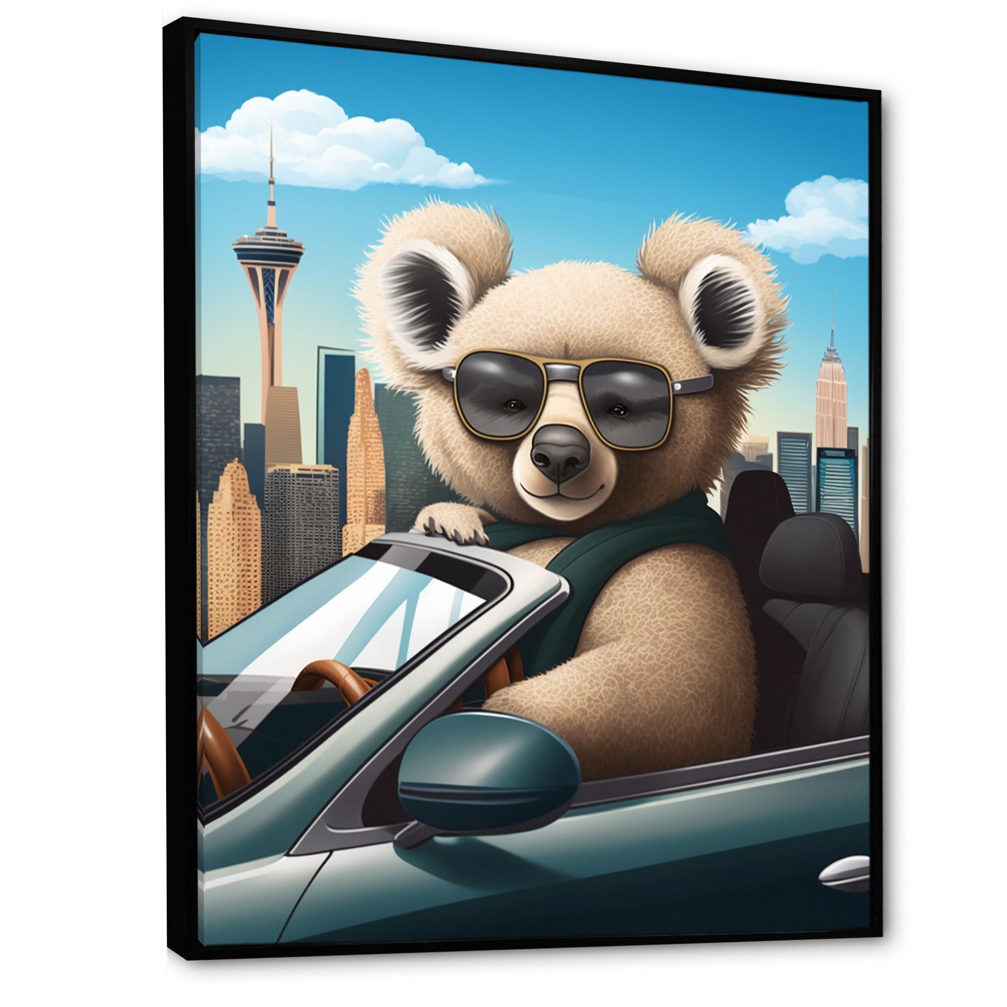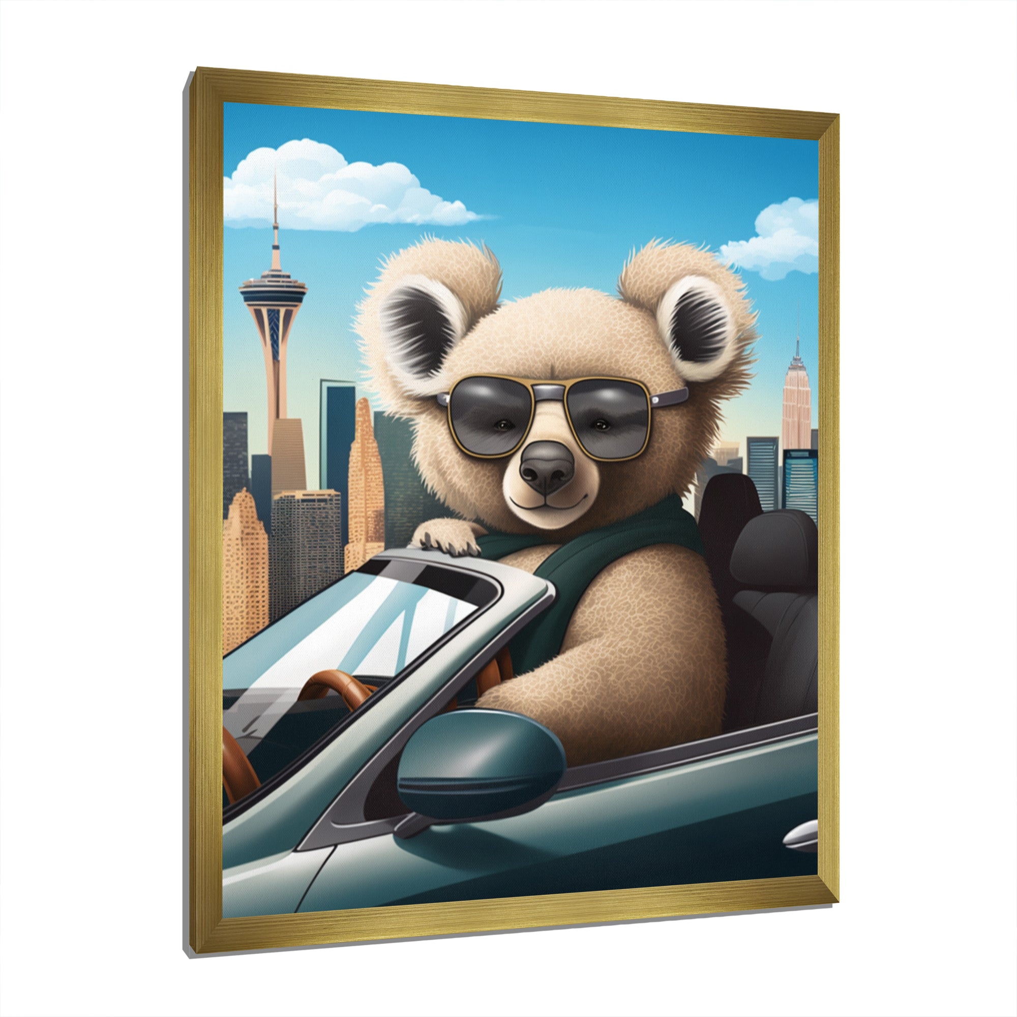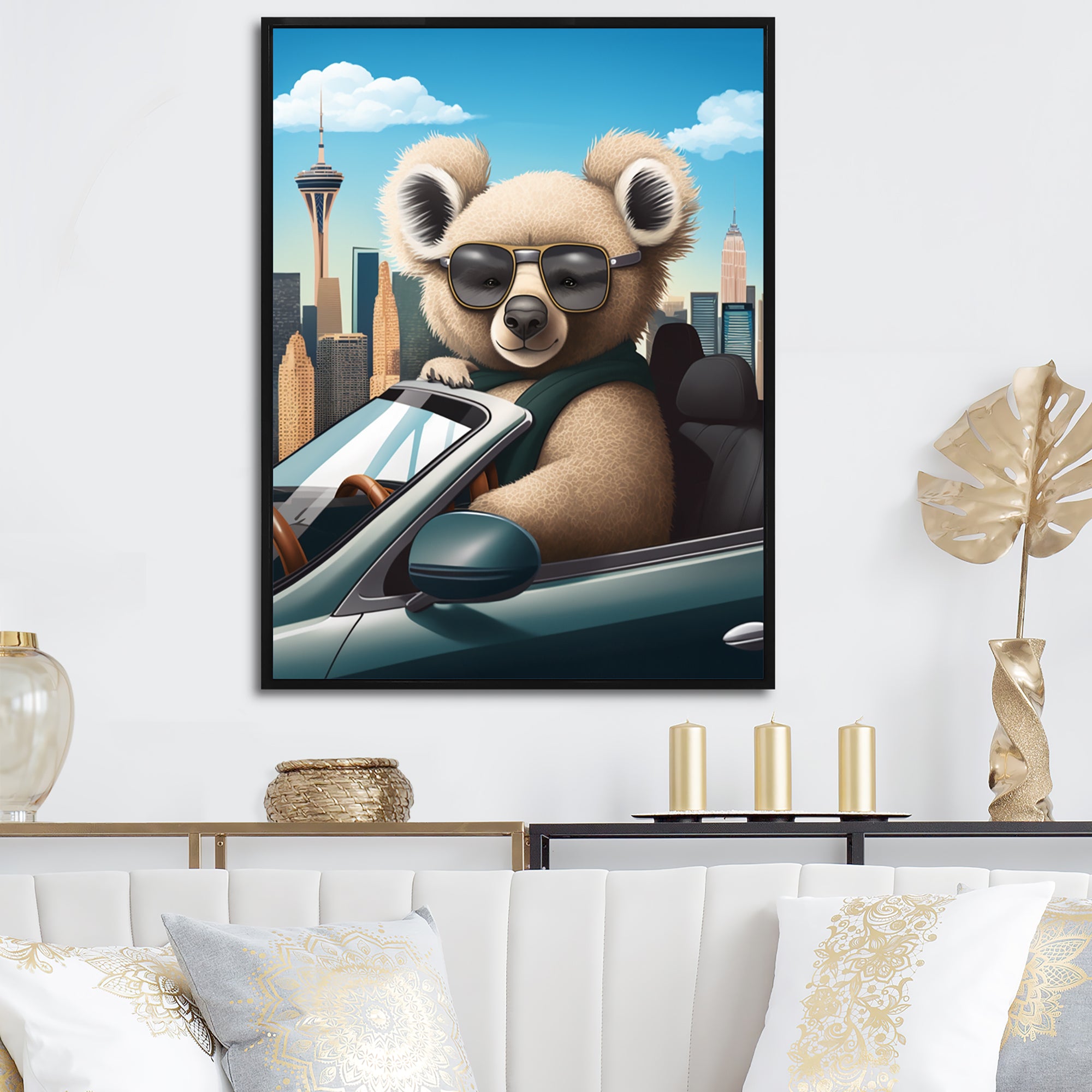 Grey Koala Wearing Sunglasses In Sportscar - Gray Koala Wall Art