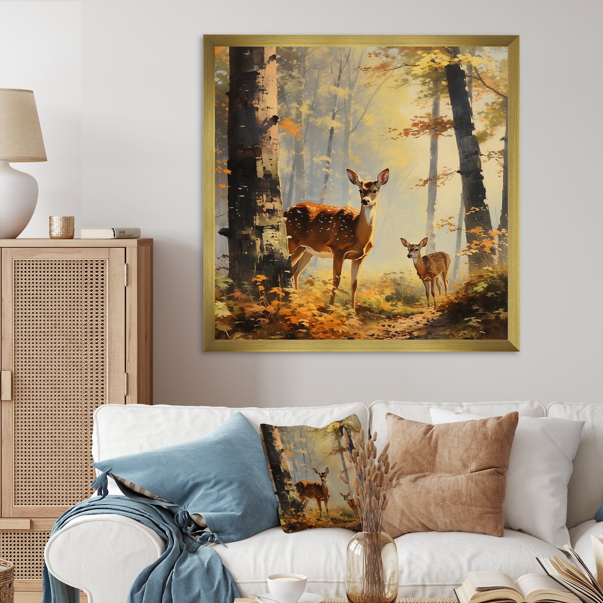 Retro Woods Deer Artistry - Deer Framed Canvas Art