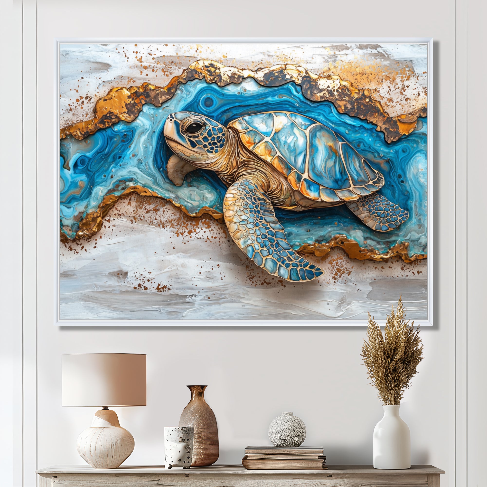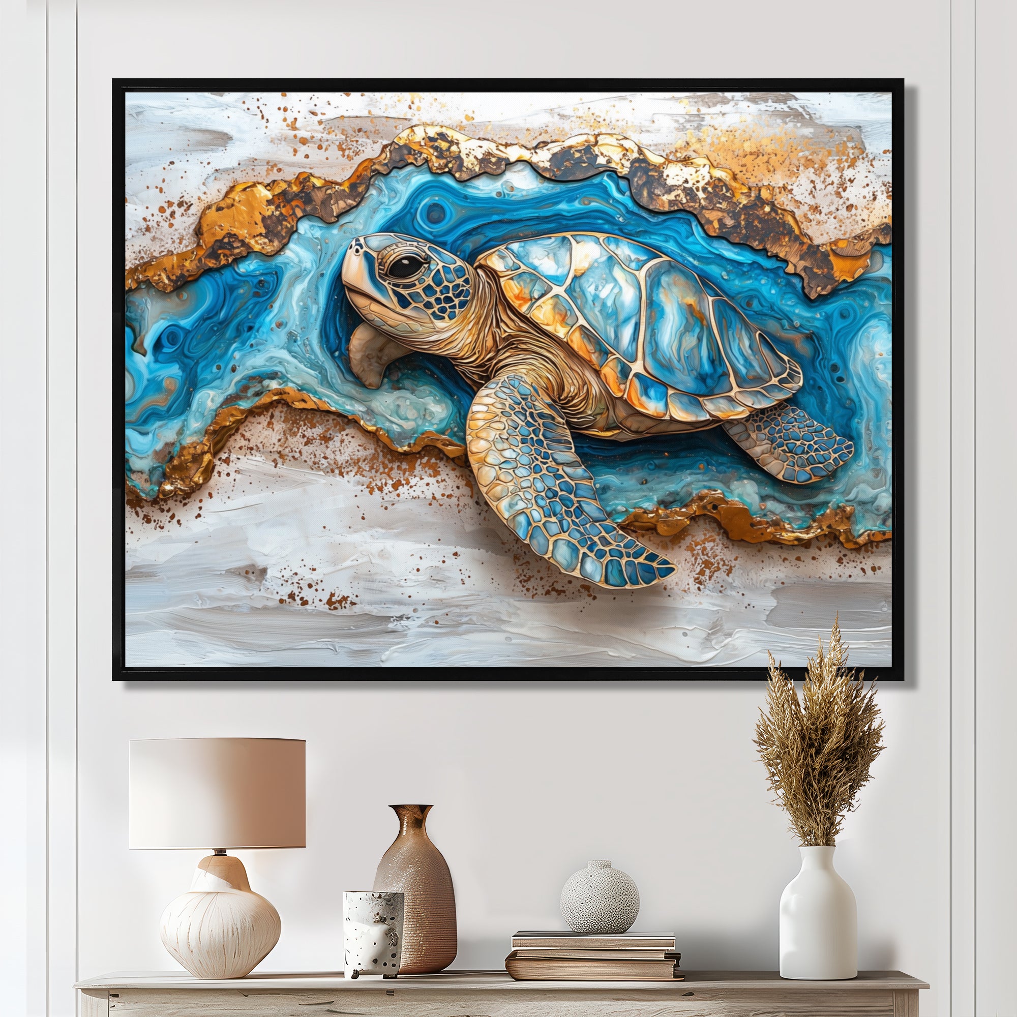 Turtle On Beach Landscape Collage - Turtle Wall Decor