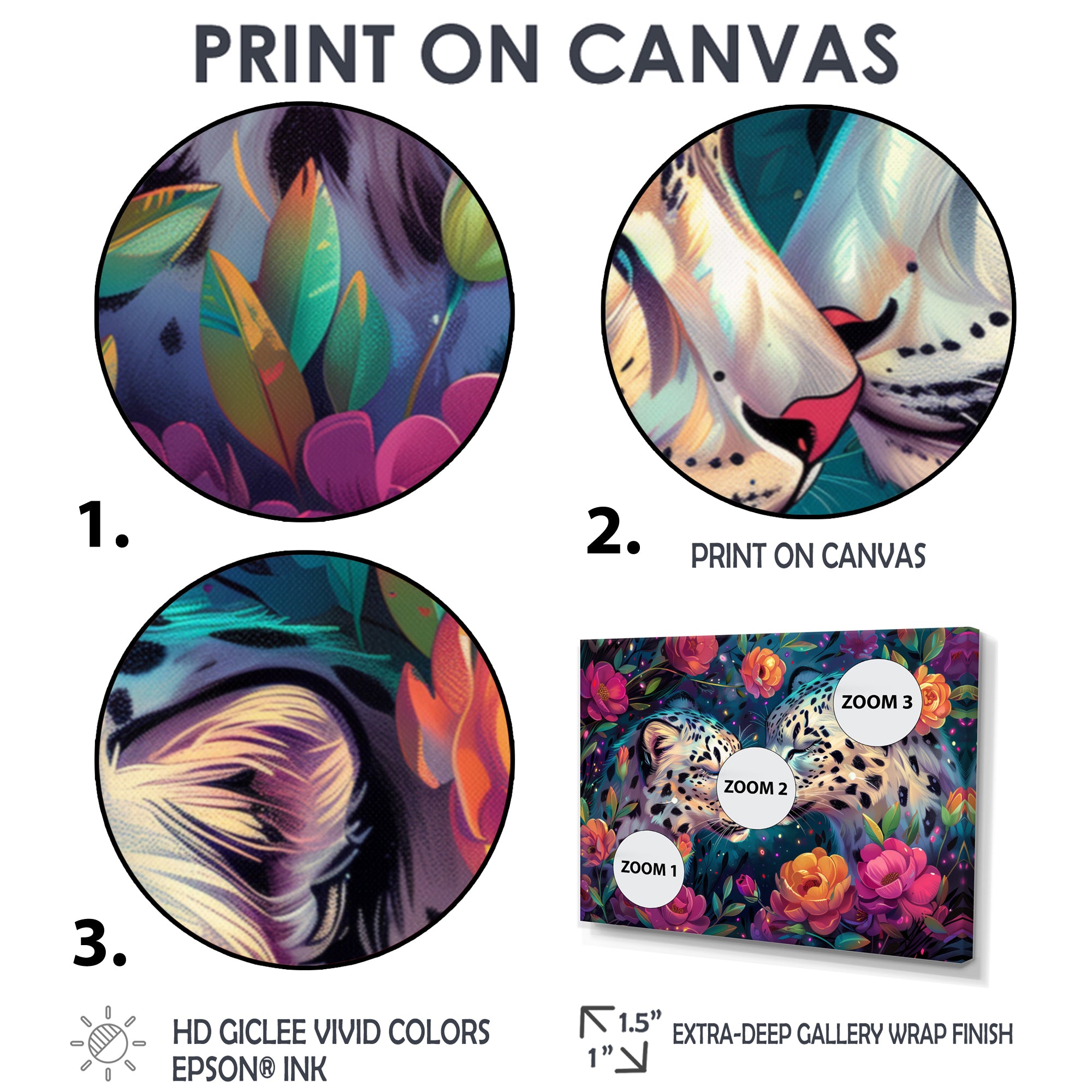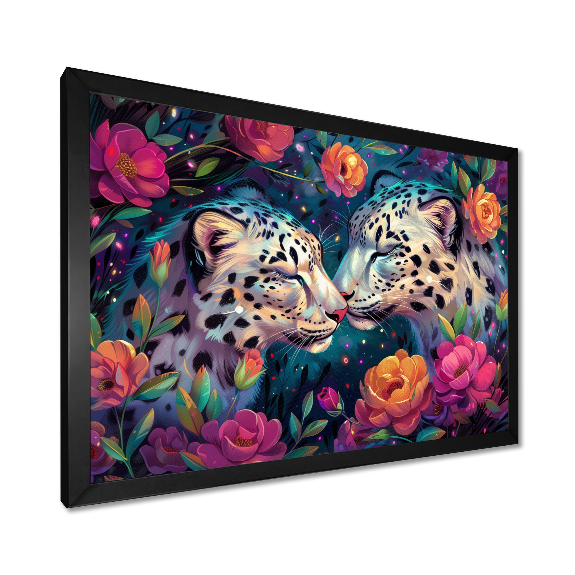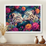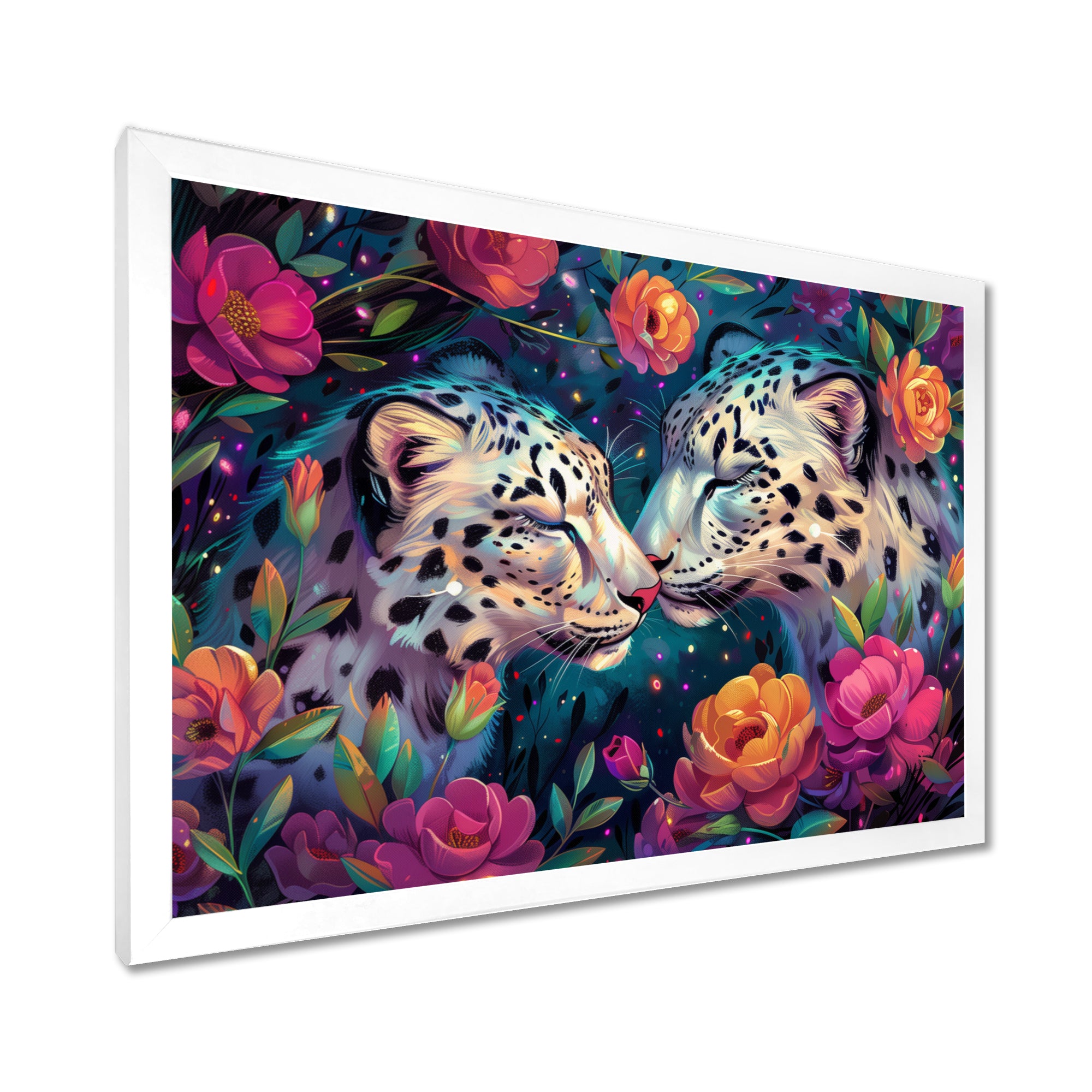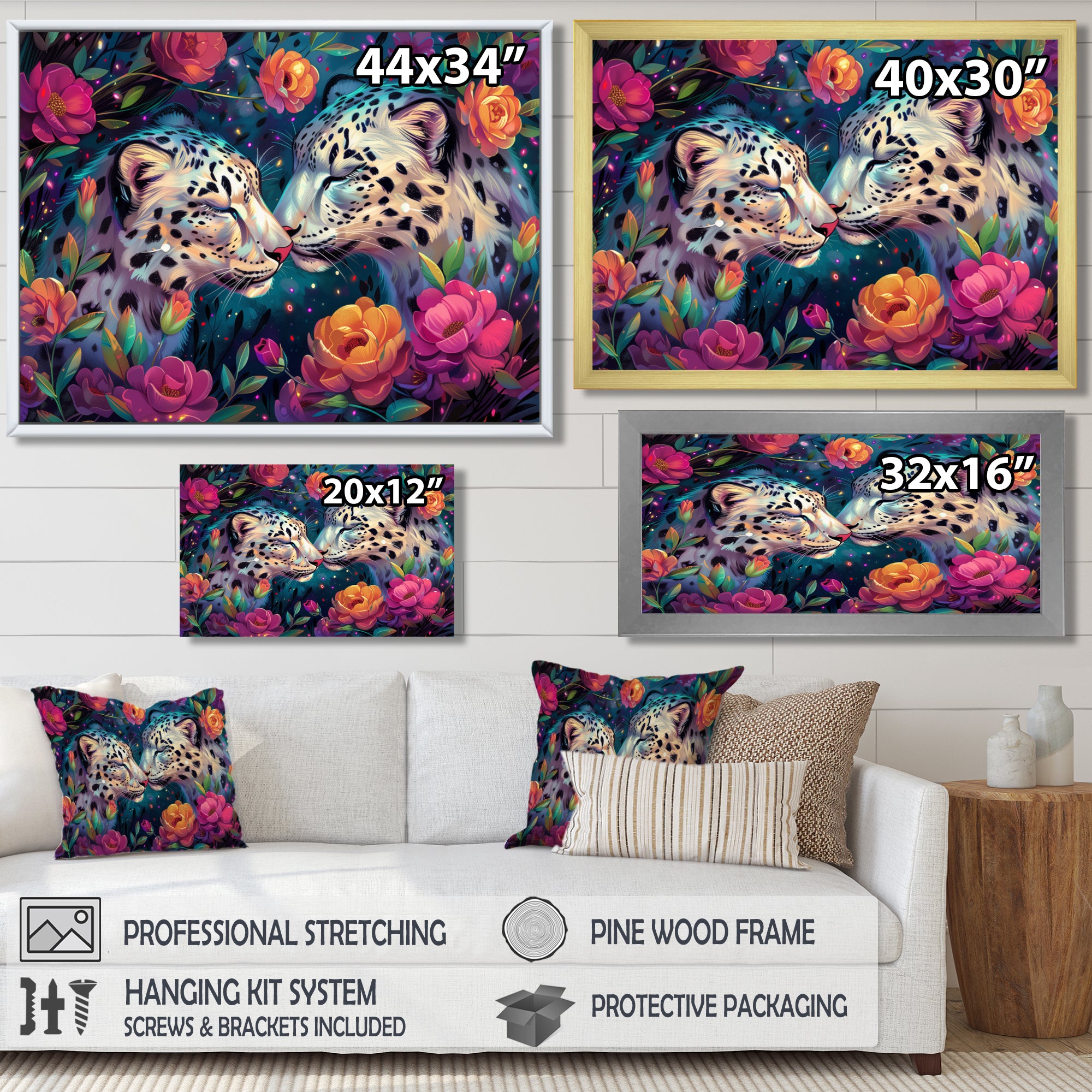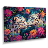 White leopard love flower blooms - Leopard Living Room Wall Art