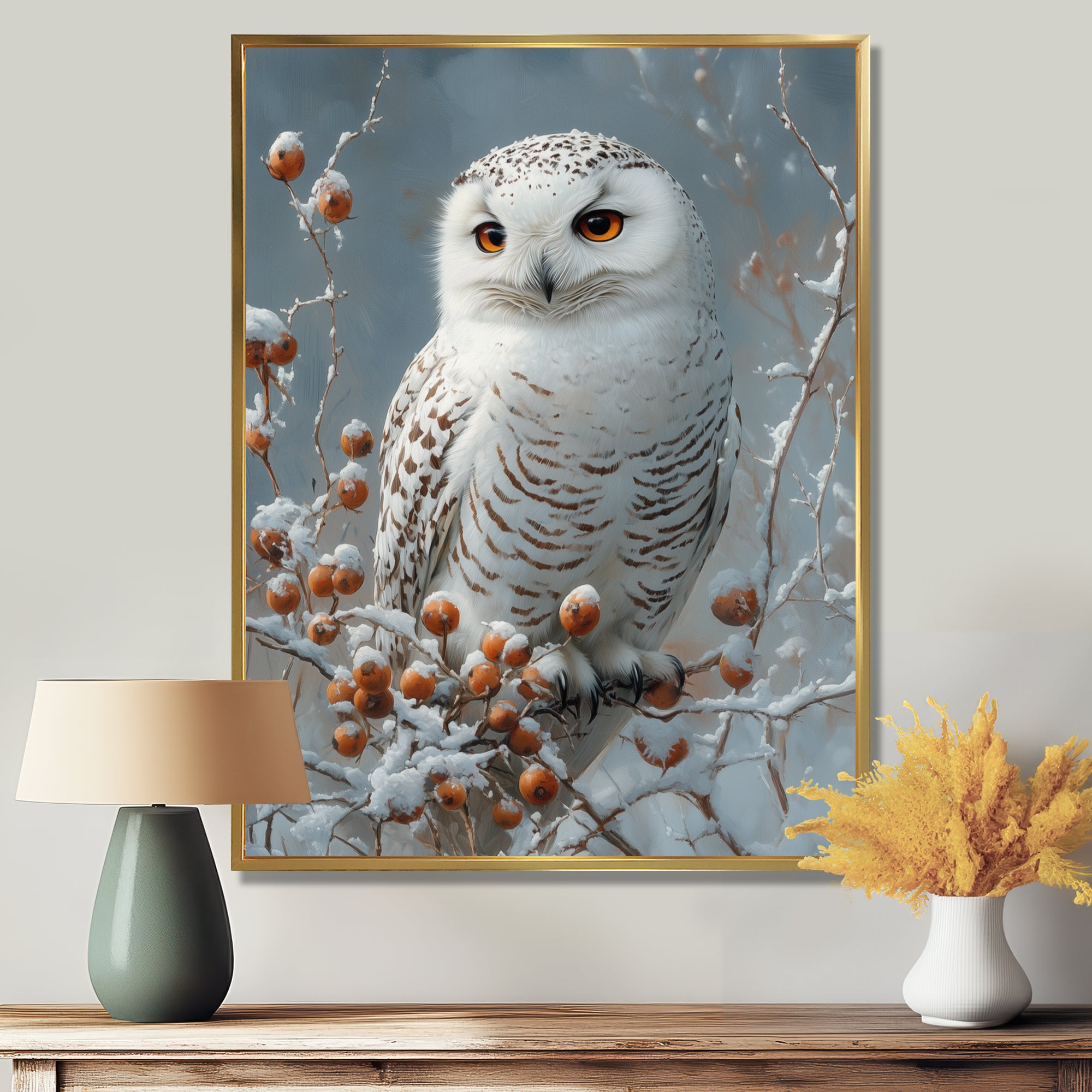 White Snowy Owl Accented With Red - Owl Wall Art Prints