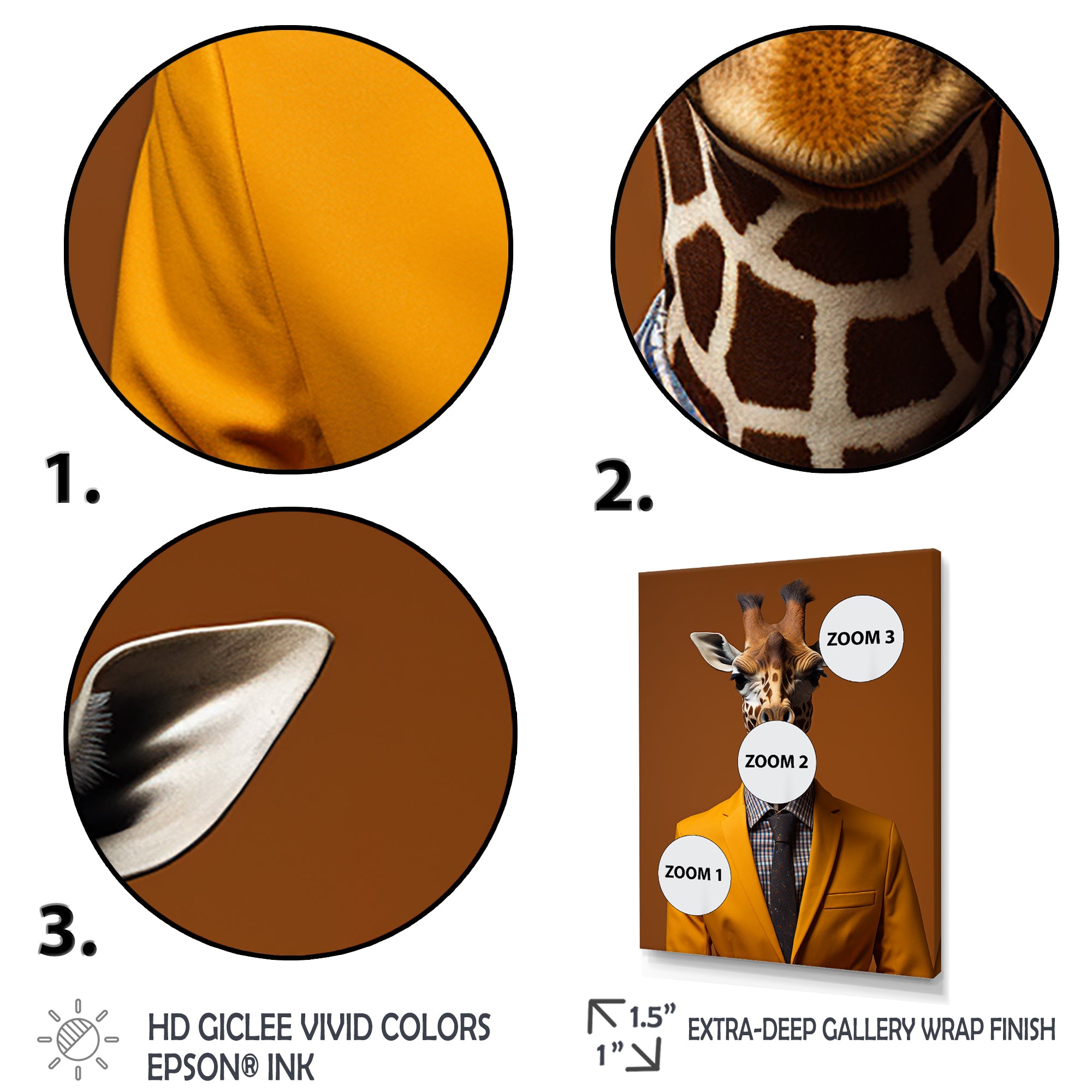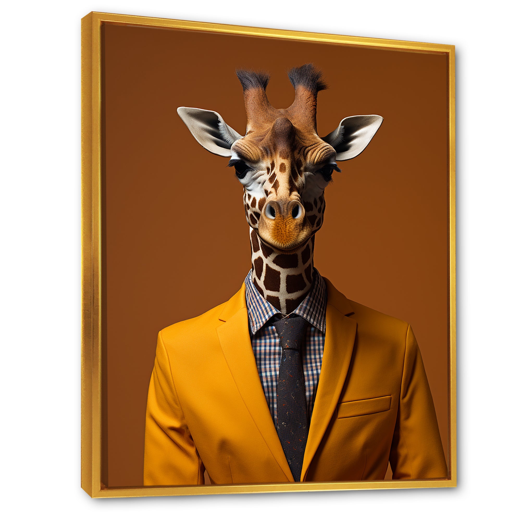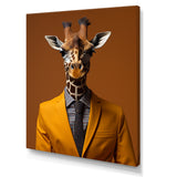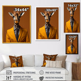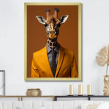 Yellow and brown suited up giraffe - Giraffe Fashion Living Room Wall Art