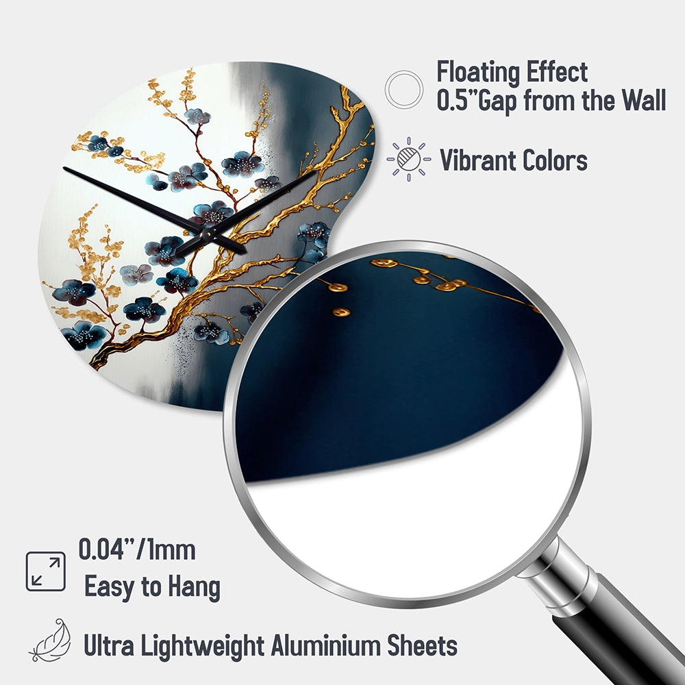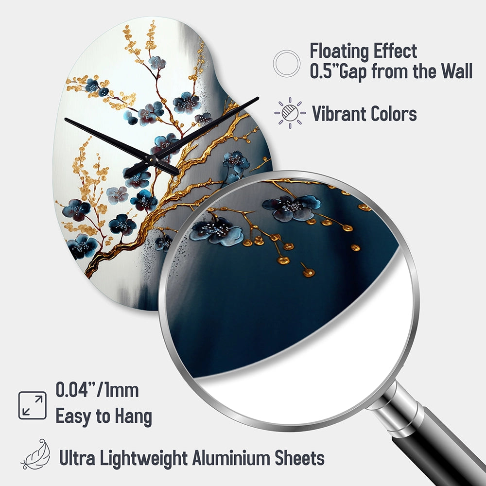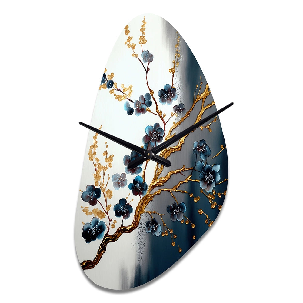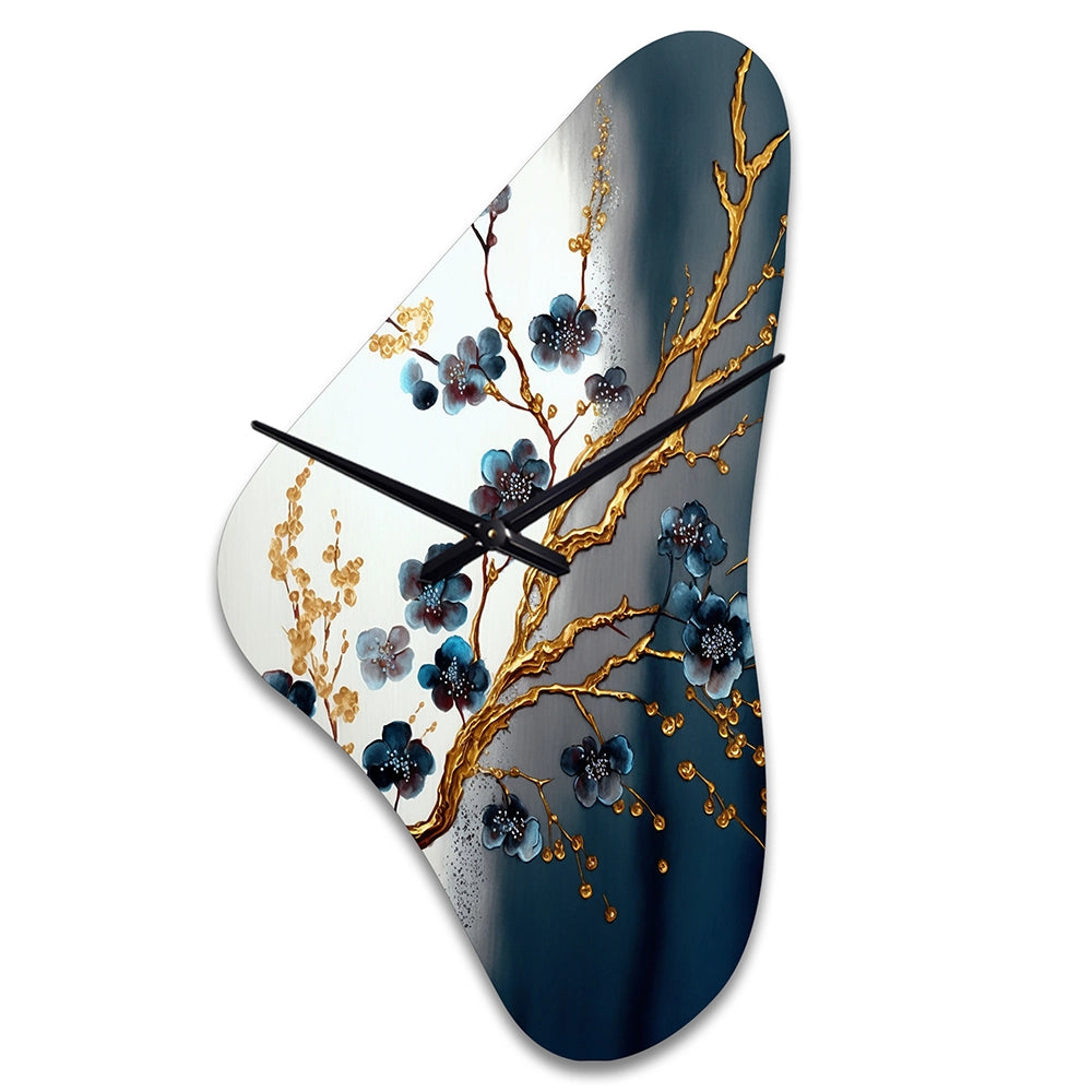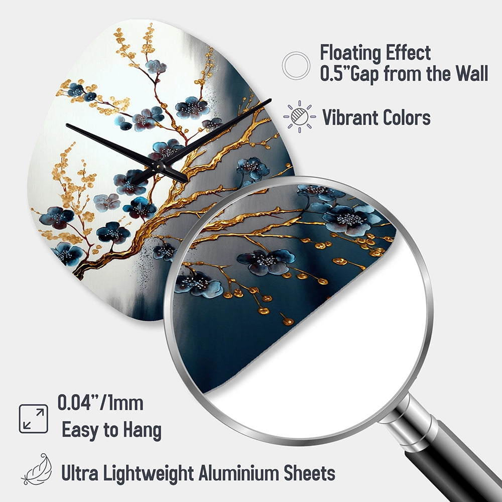 Blue Cherry Blossom Branch V - Asymmetric Metal Wall Clock