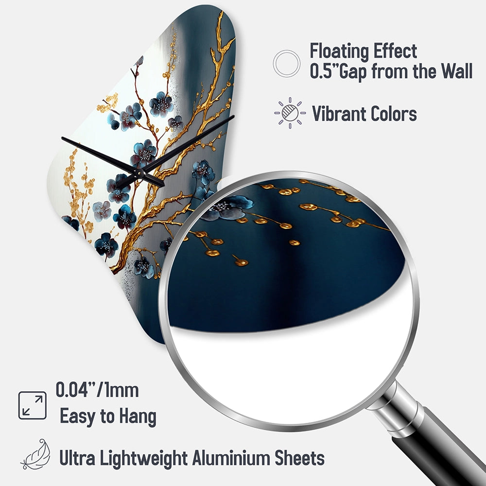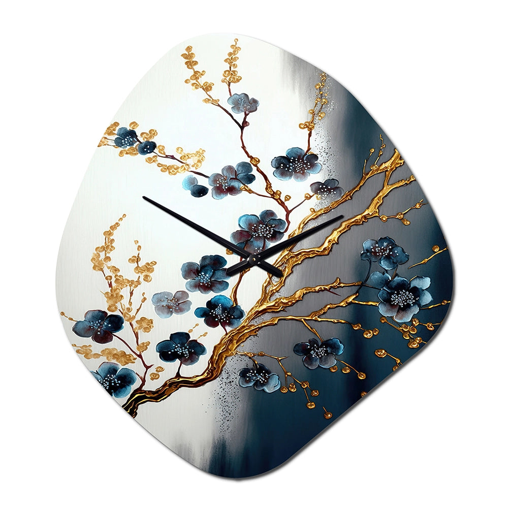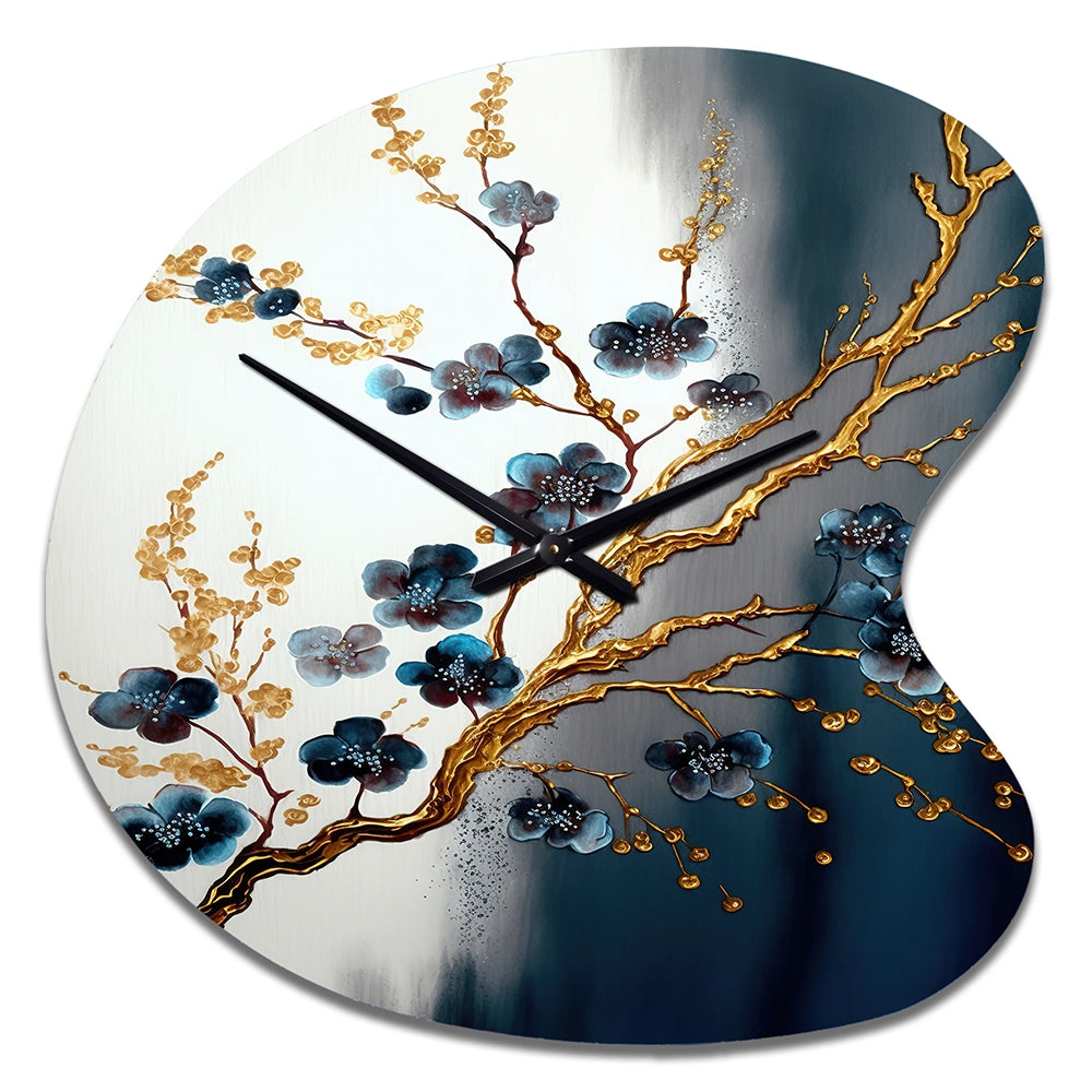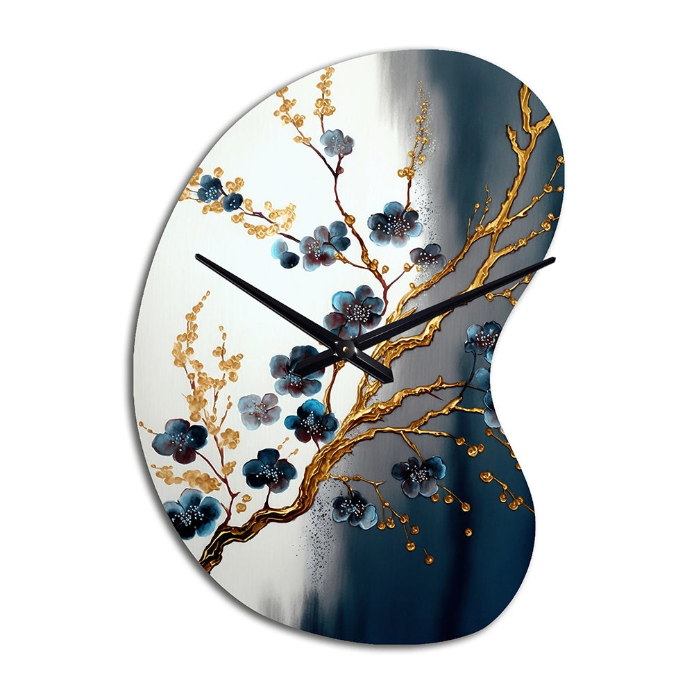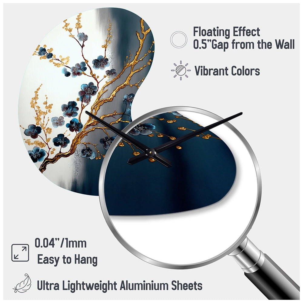 Blue Cherry Blossom Branch V - Asymmetric Metal Wall Clock