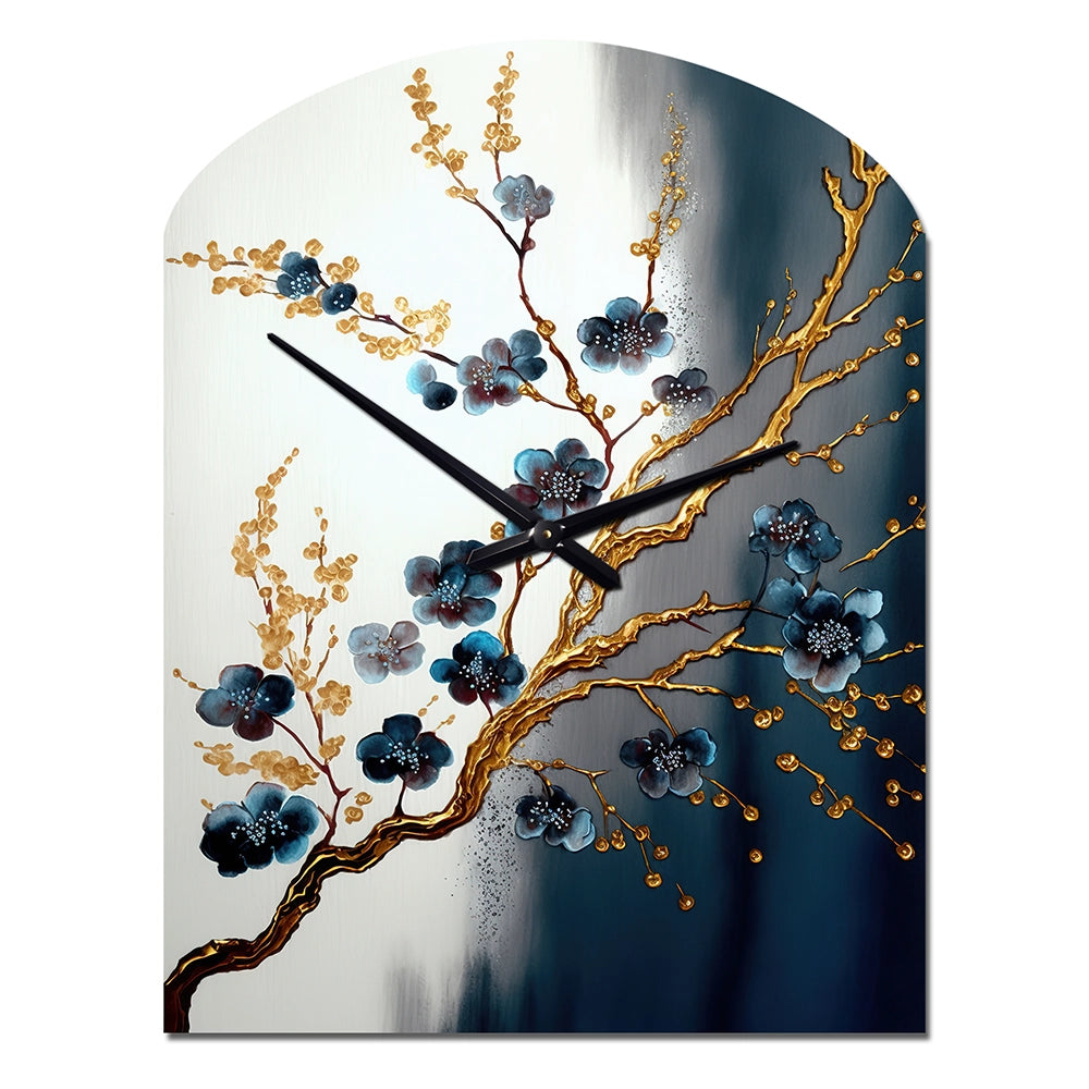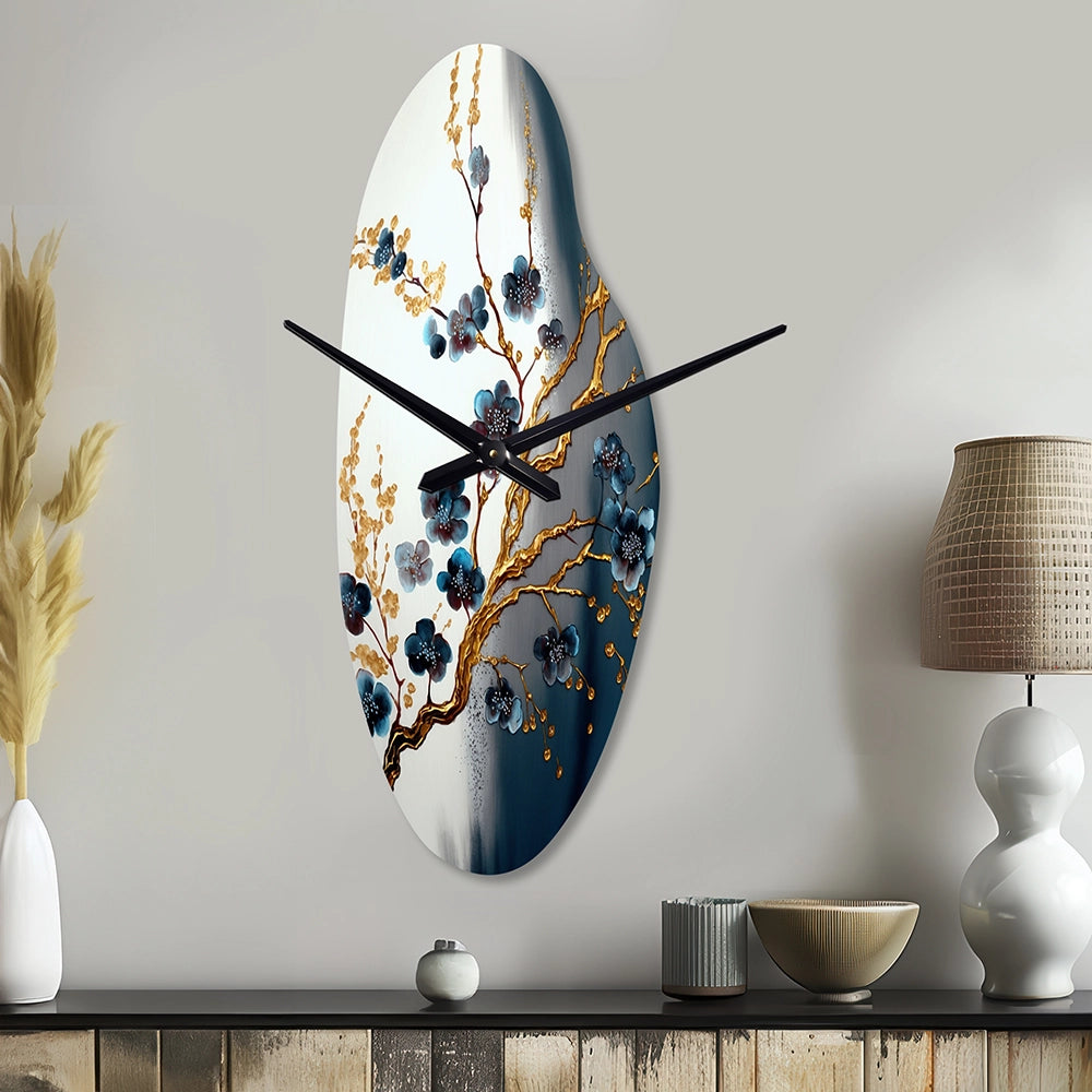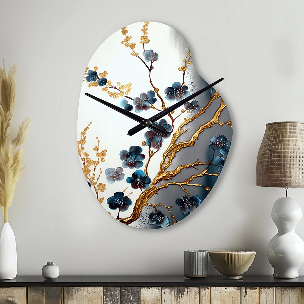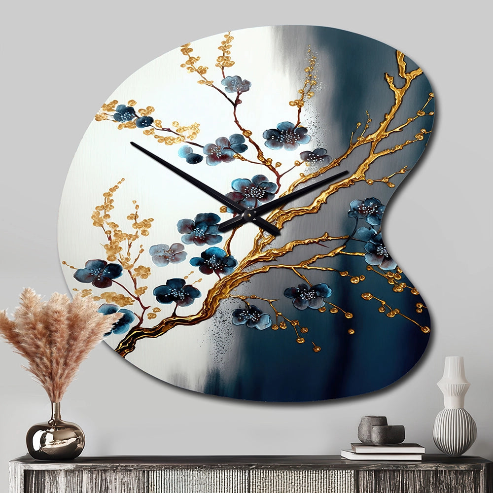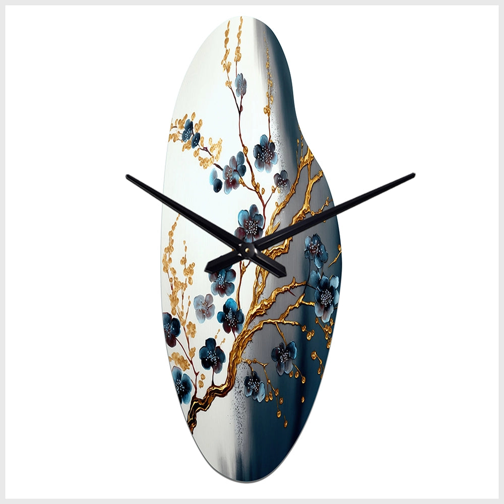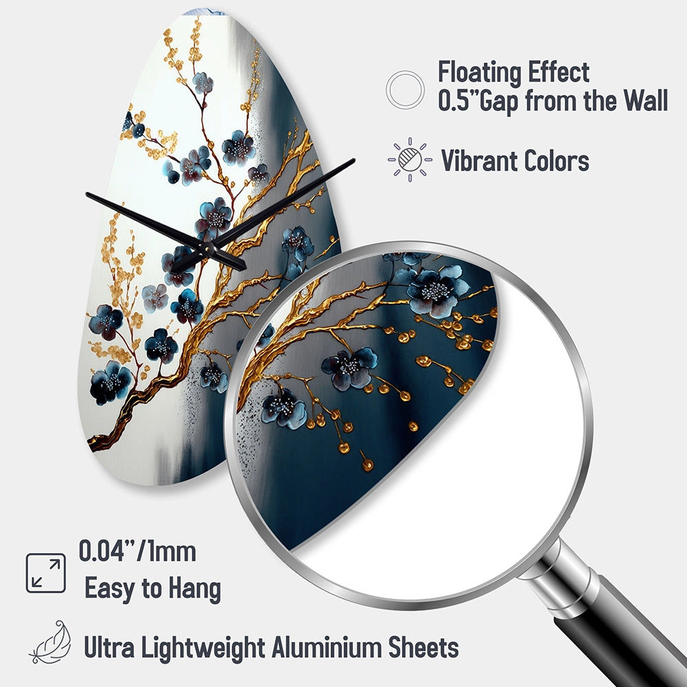 Blue Cherry Blossom Branch V - Asymmetric Metal Wall Clock