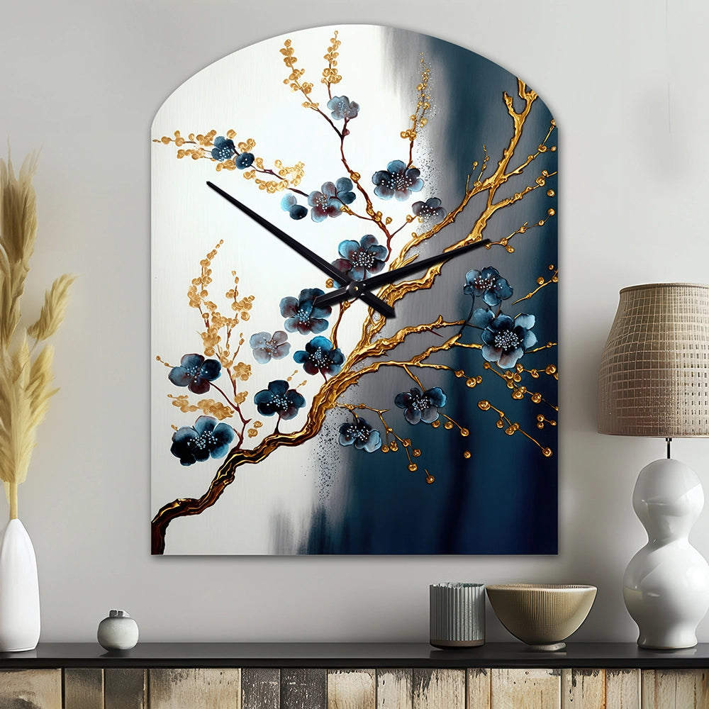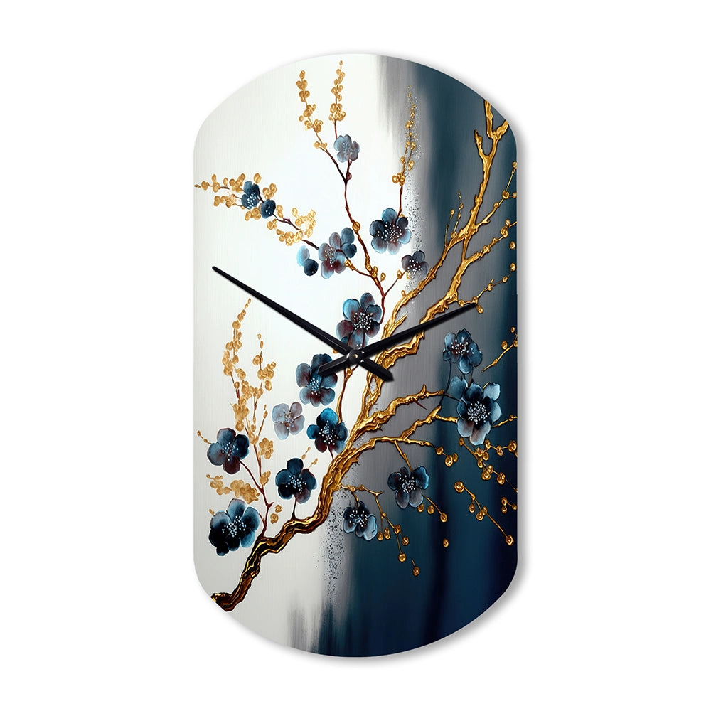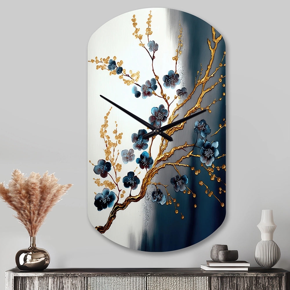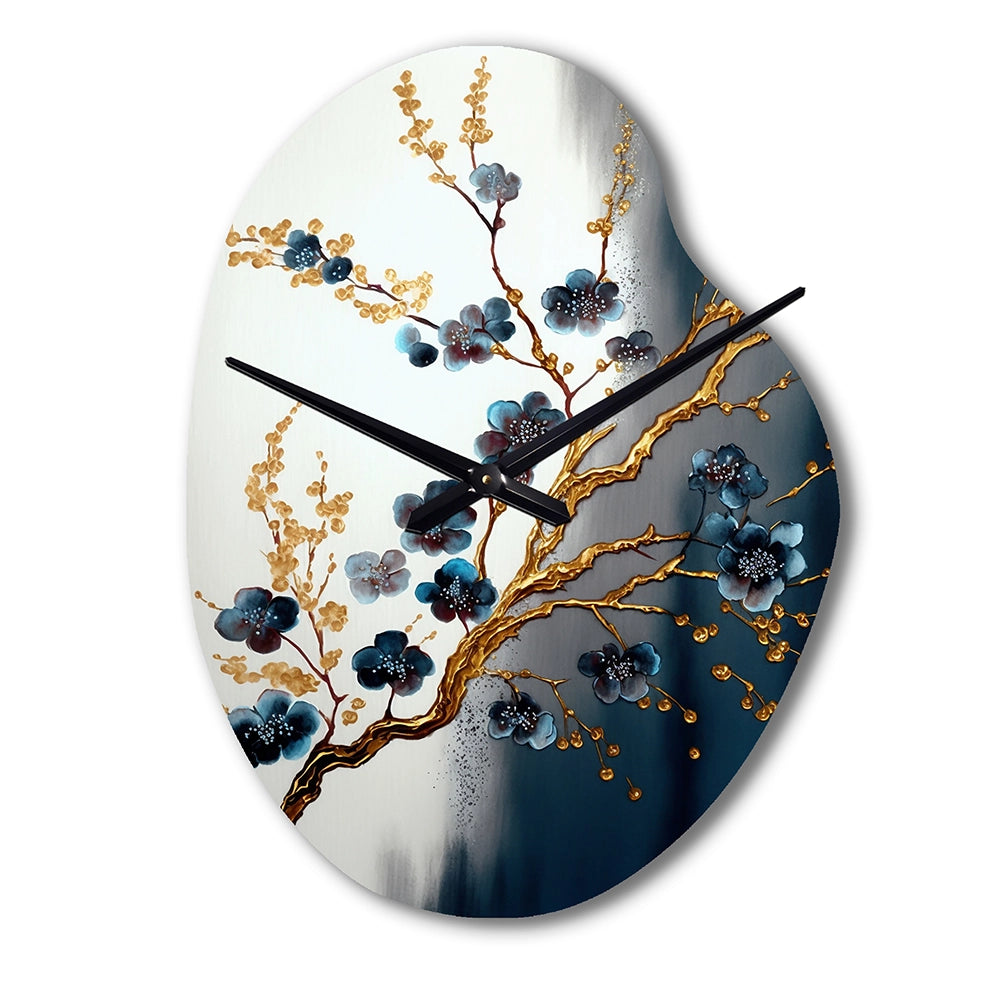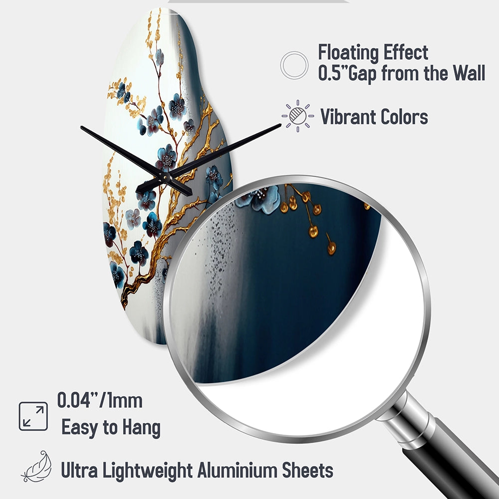 Blue Cherry Blossom Branch V - Asymmetric Metal Wall Clock