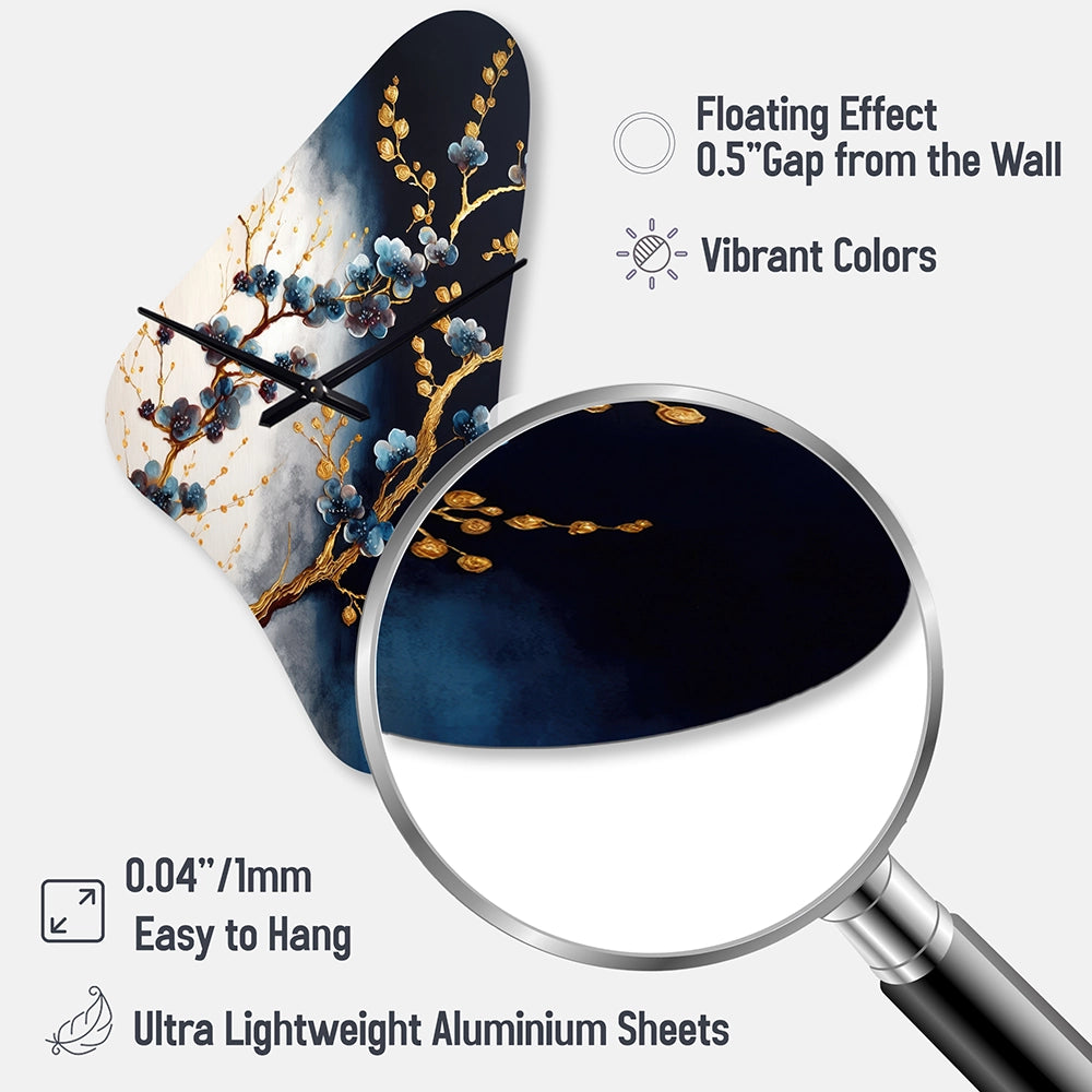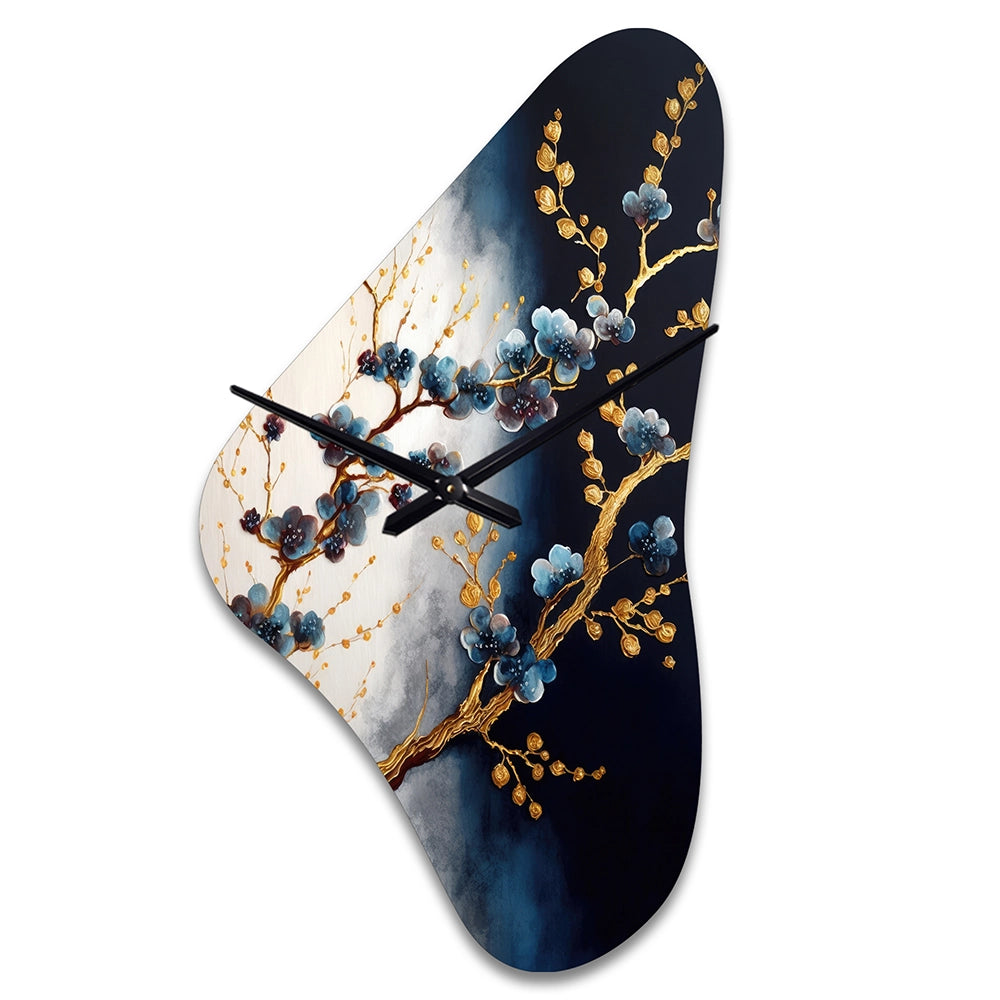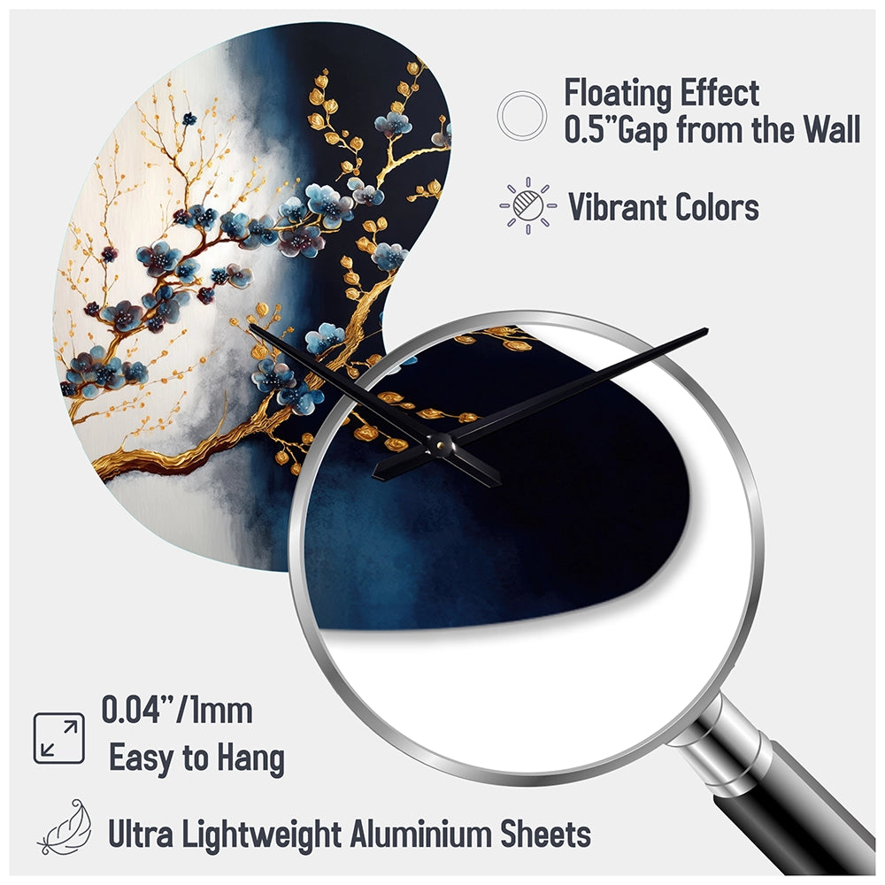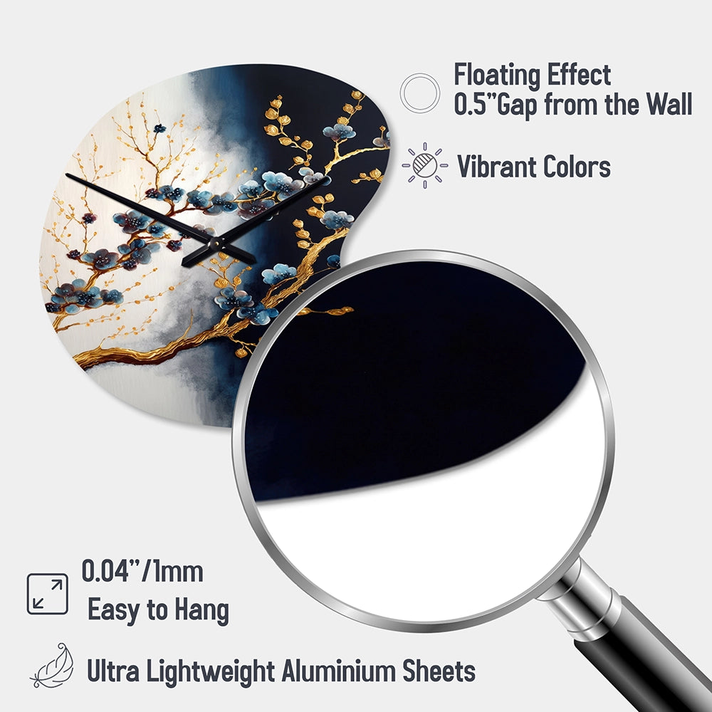 Blue Cherry Blossom Branch VI - Asymmetric Metal Wall Clock