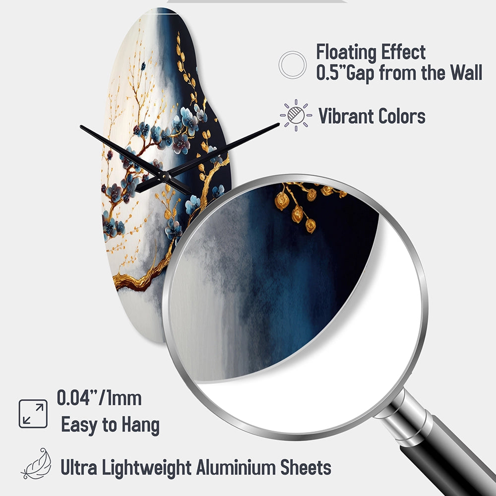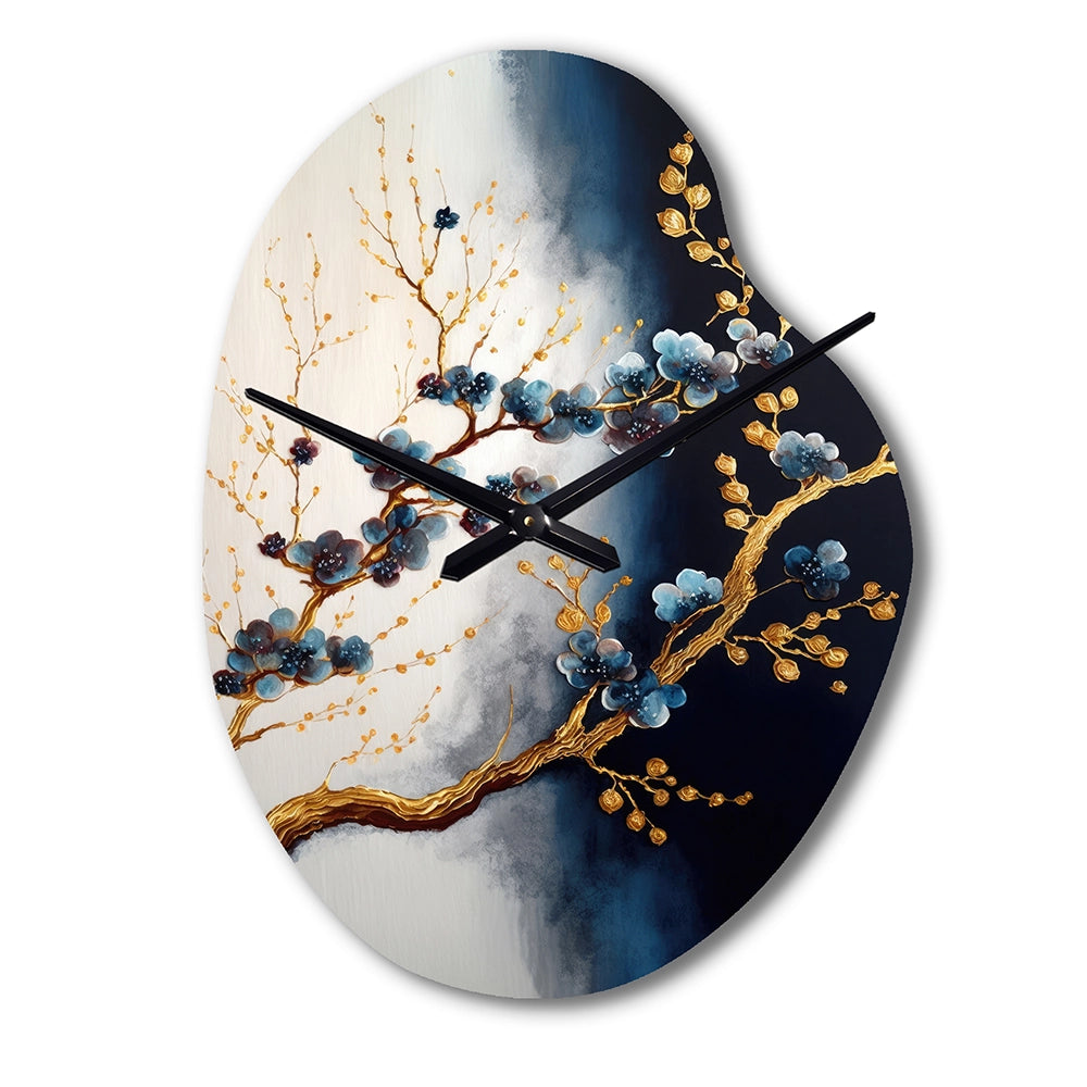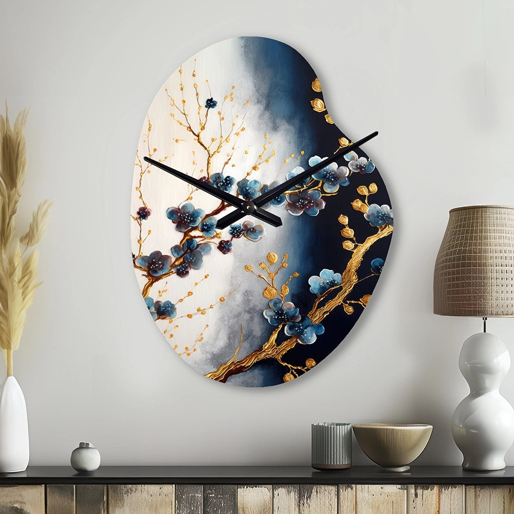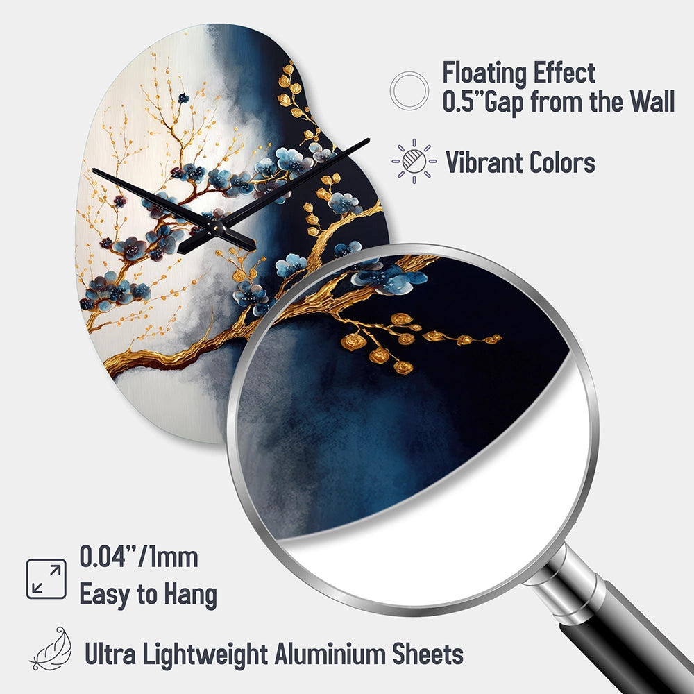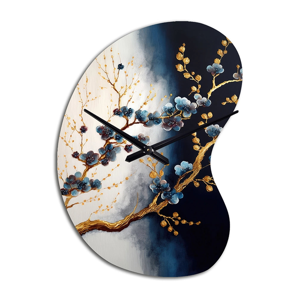 Blue Cherry Blossom Branch VI - Asymmetric Metal Wall Clock
