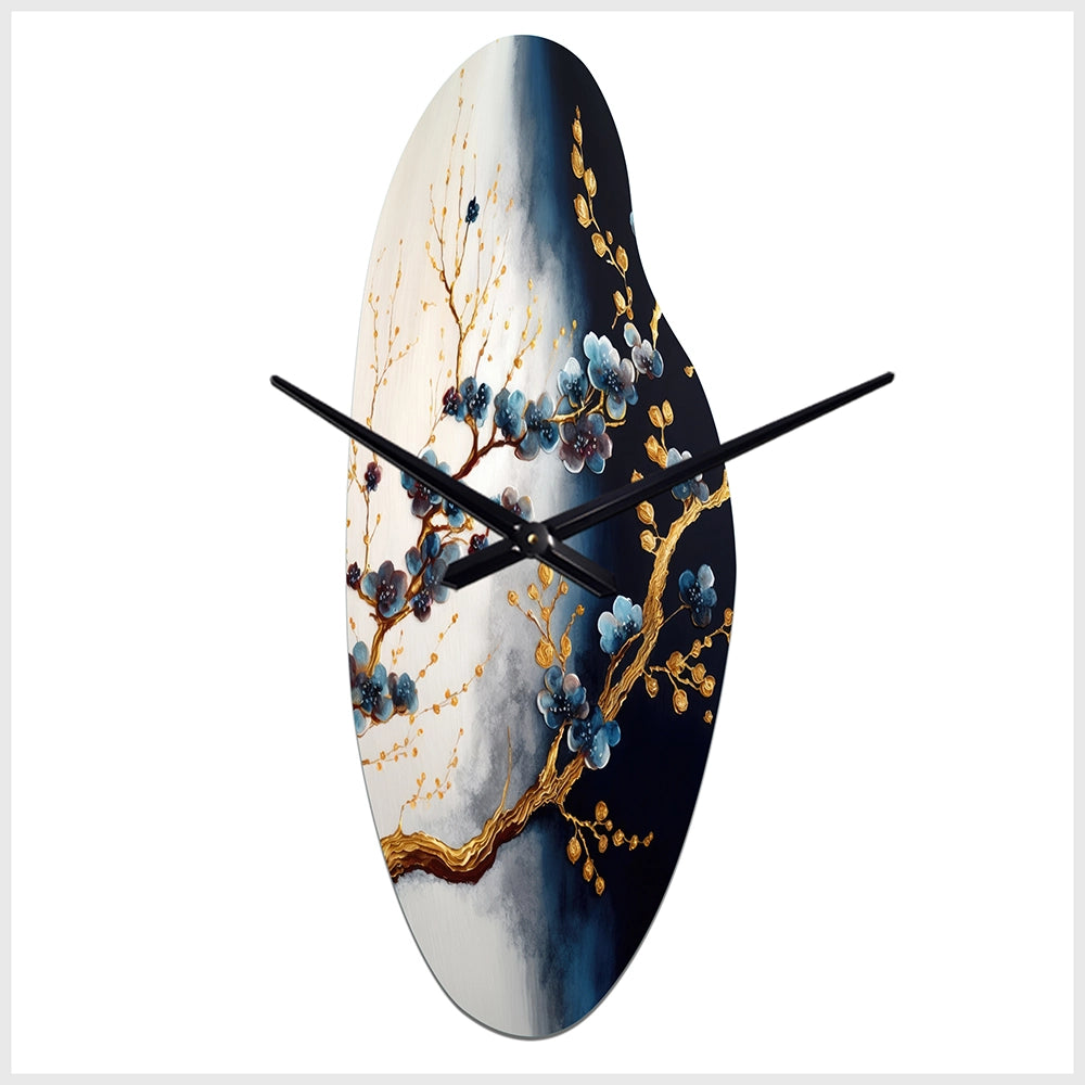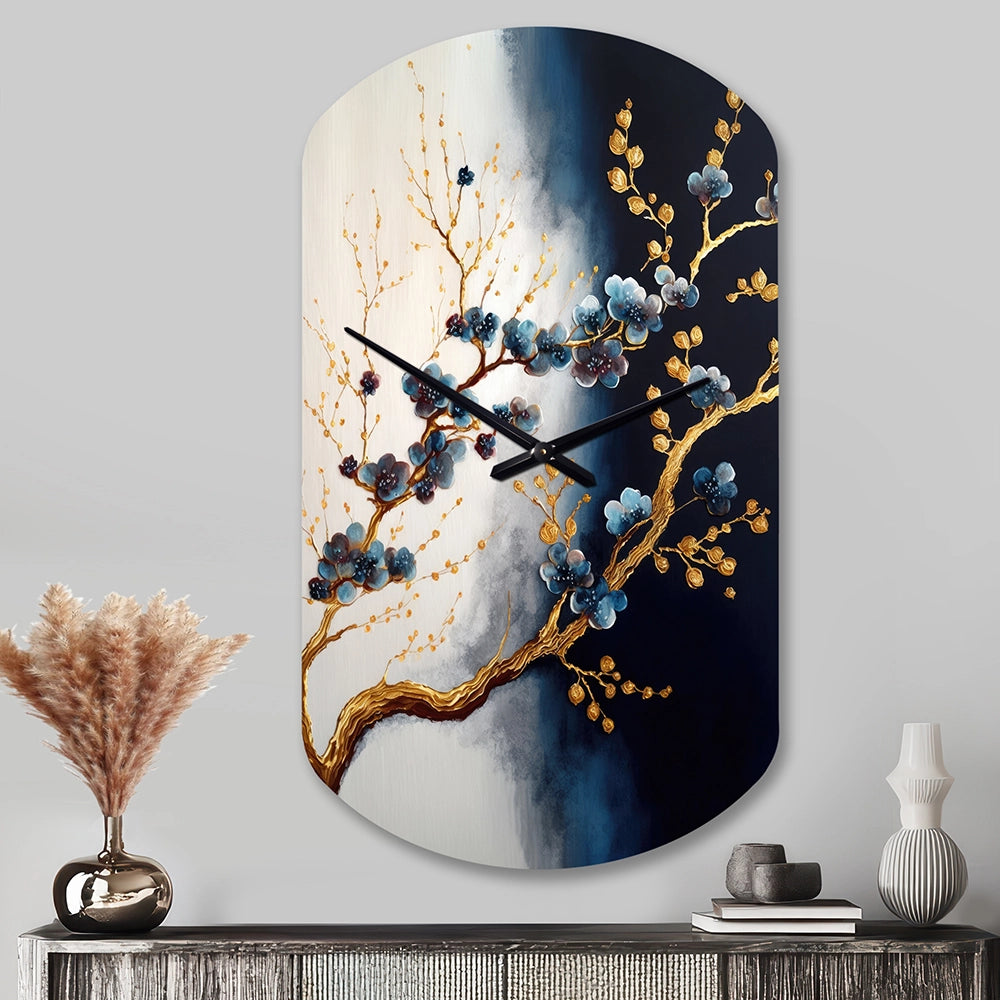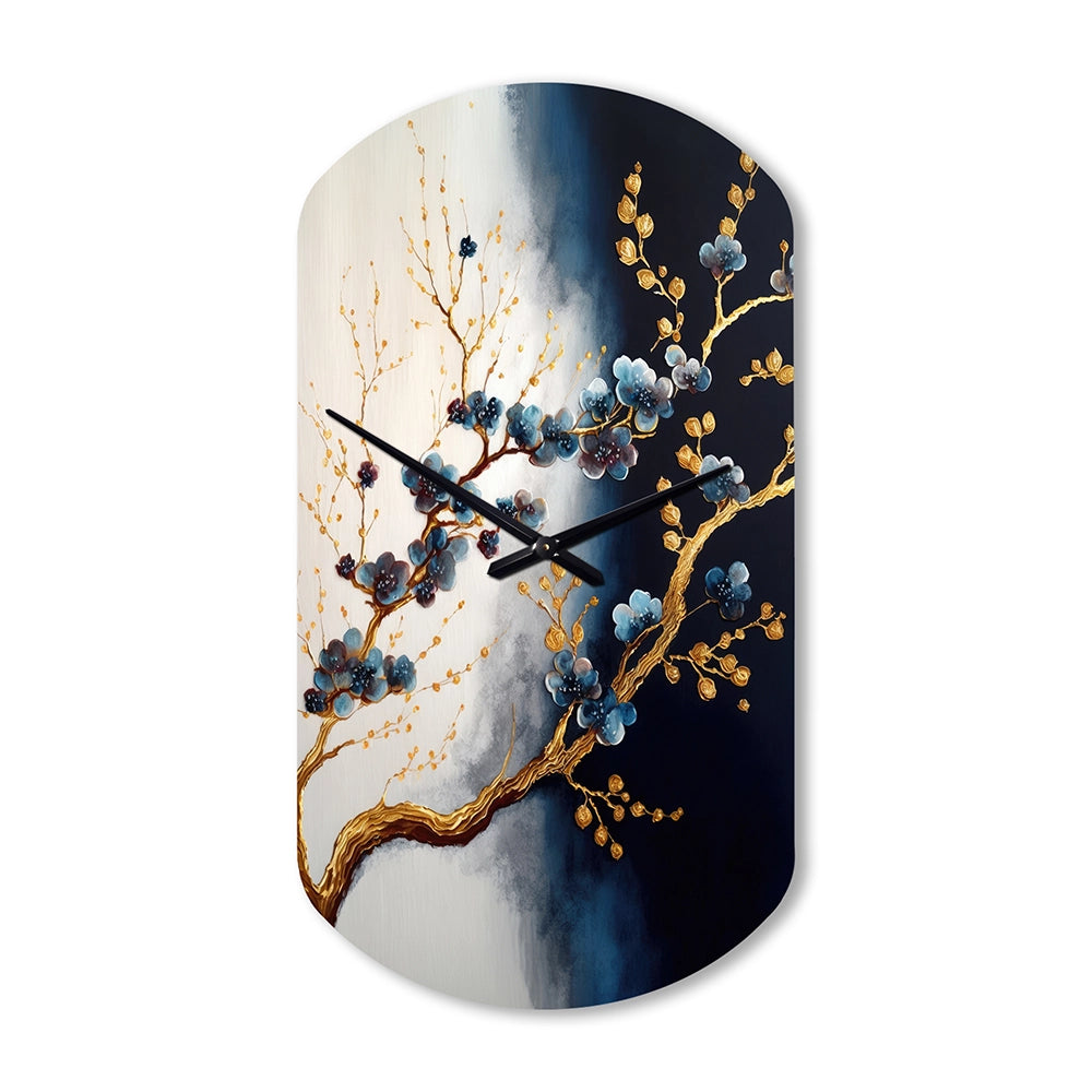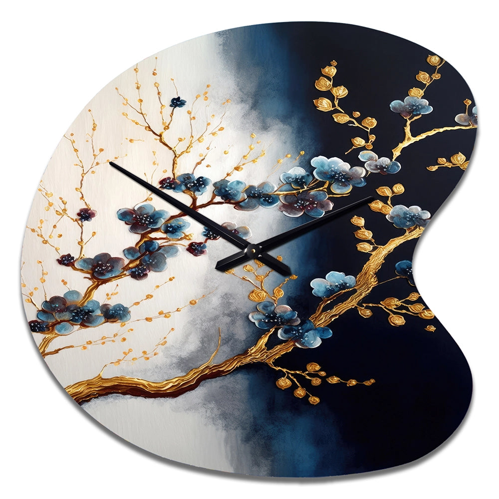 Blue Cherry Blossom Branch VI - Asymmetric Metal Wall Clock